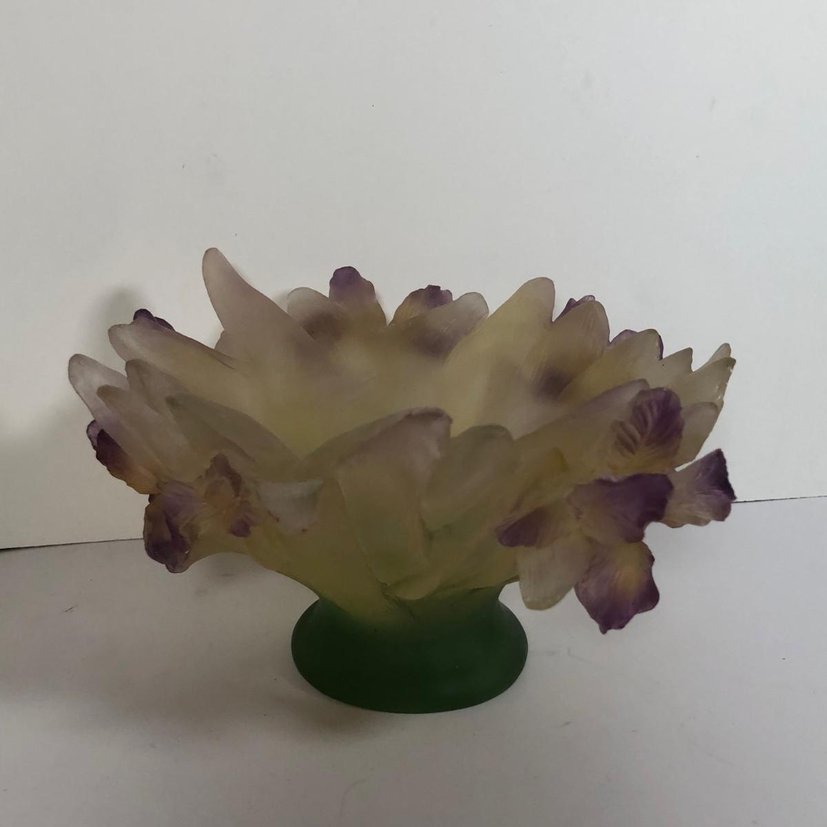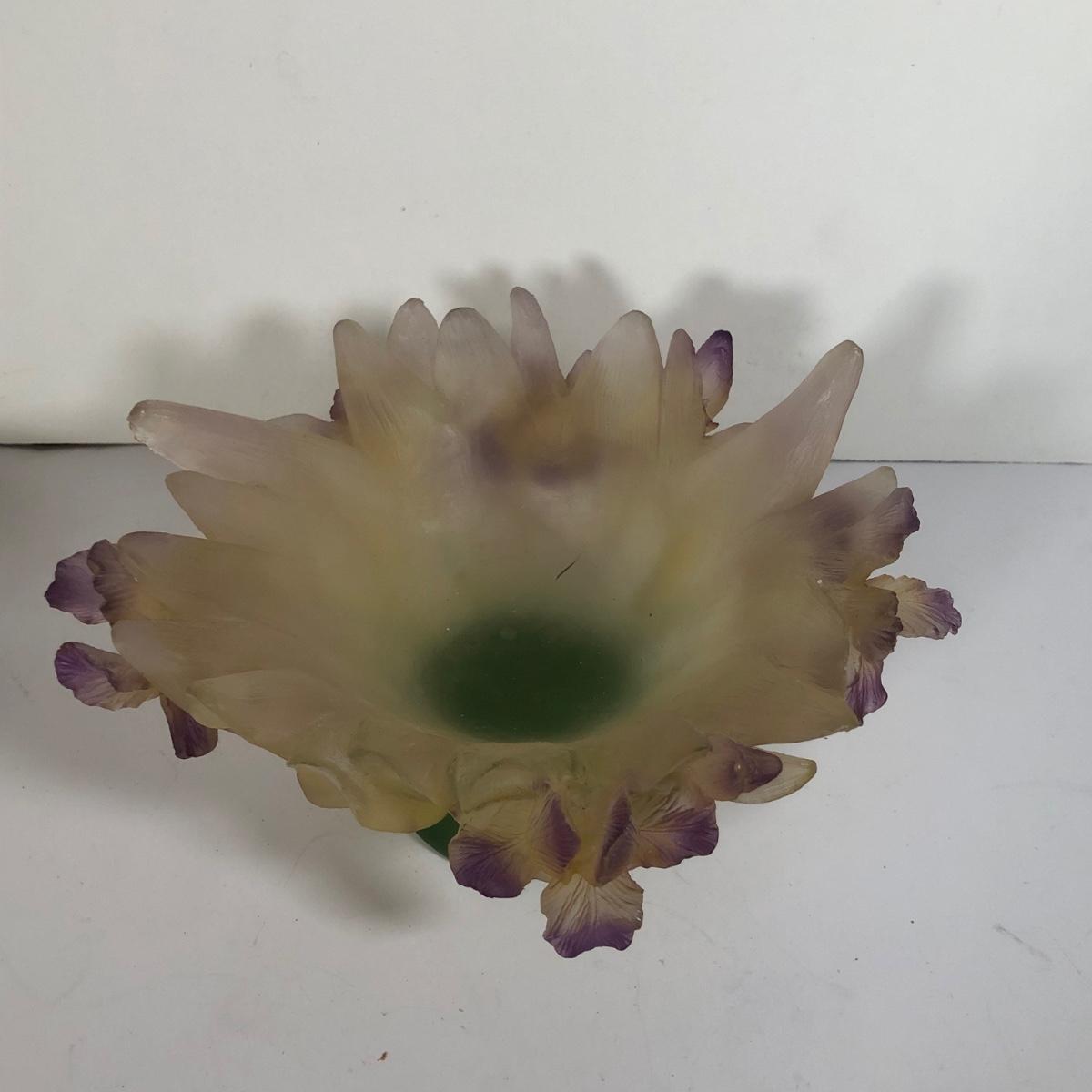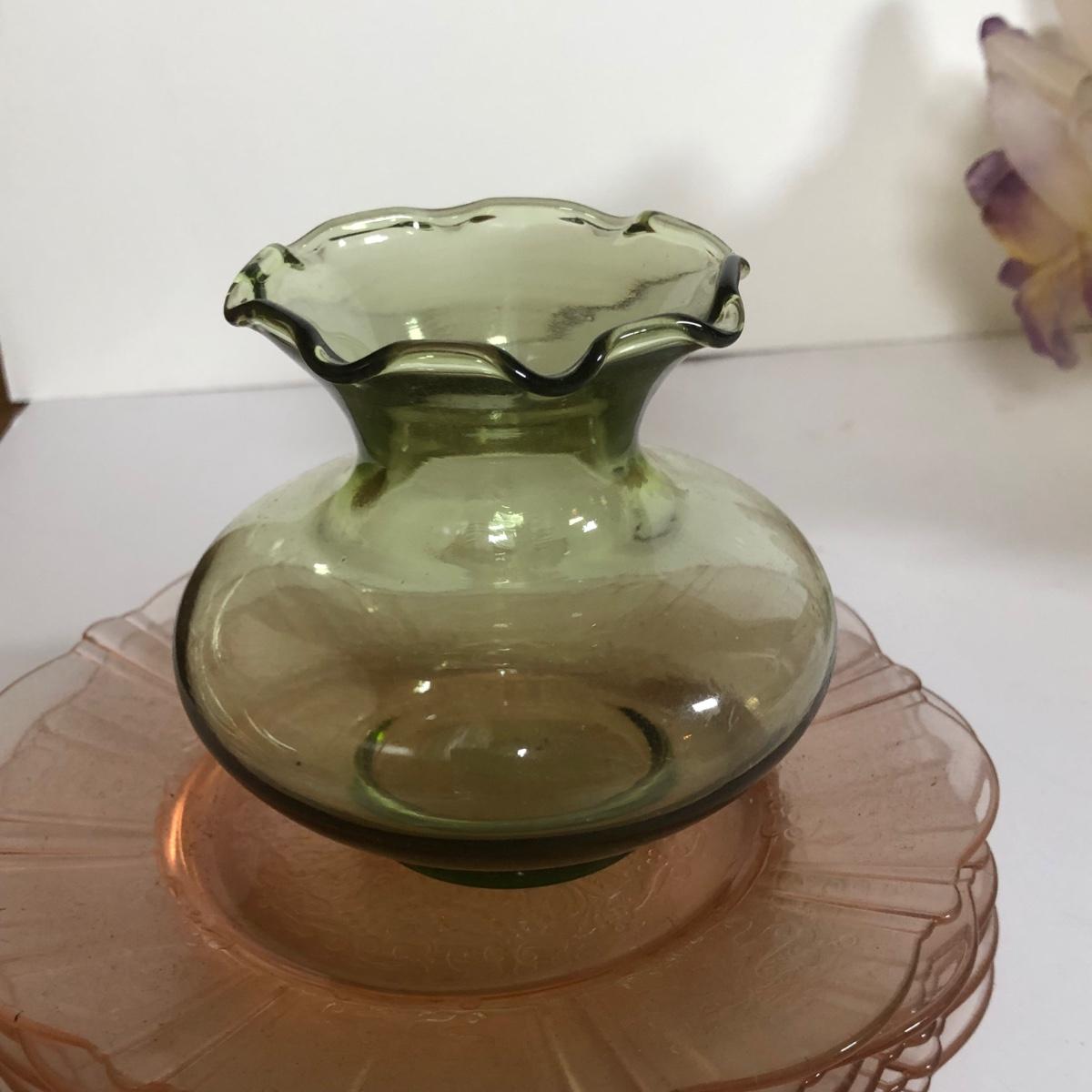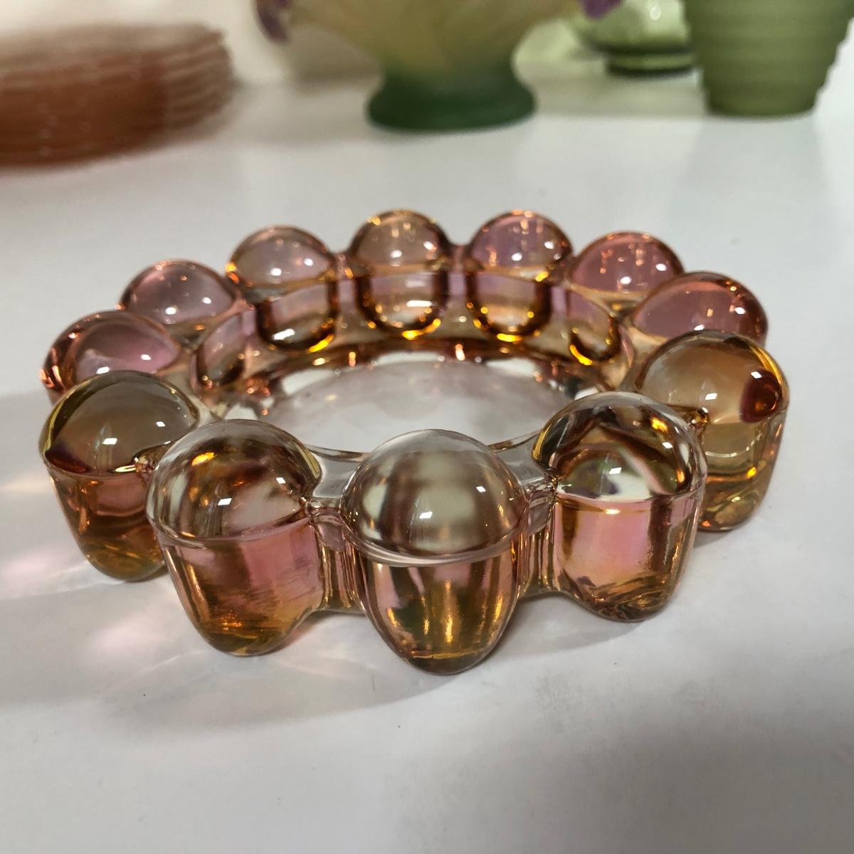 LOT 33D: Floral Resin Sculpted Pedestal Dish, Pink Depression Glass Plates, Bubble Edge Dishes & More