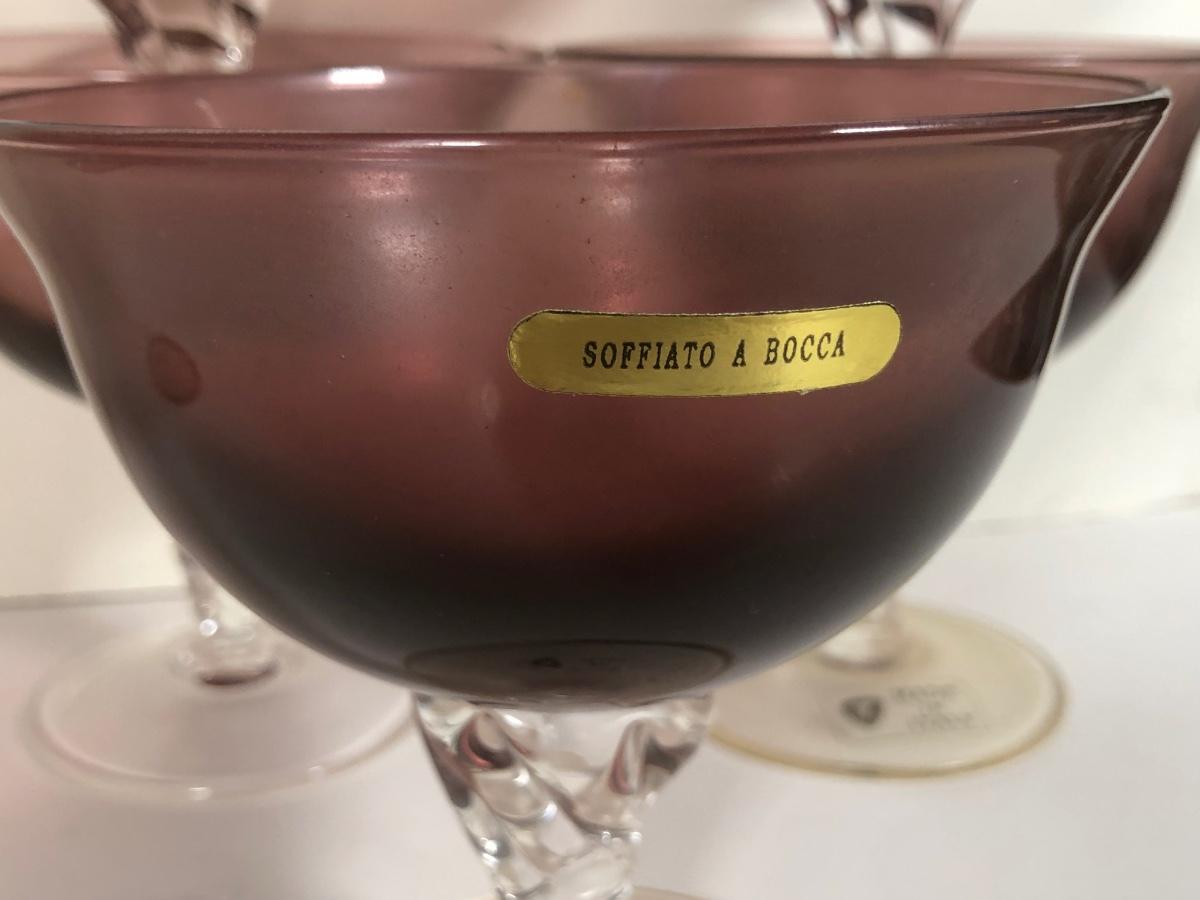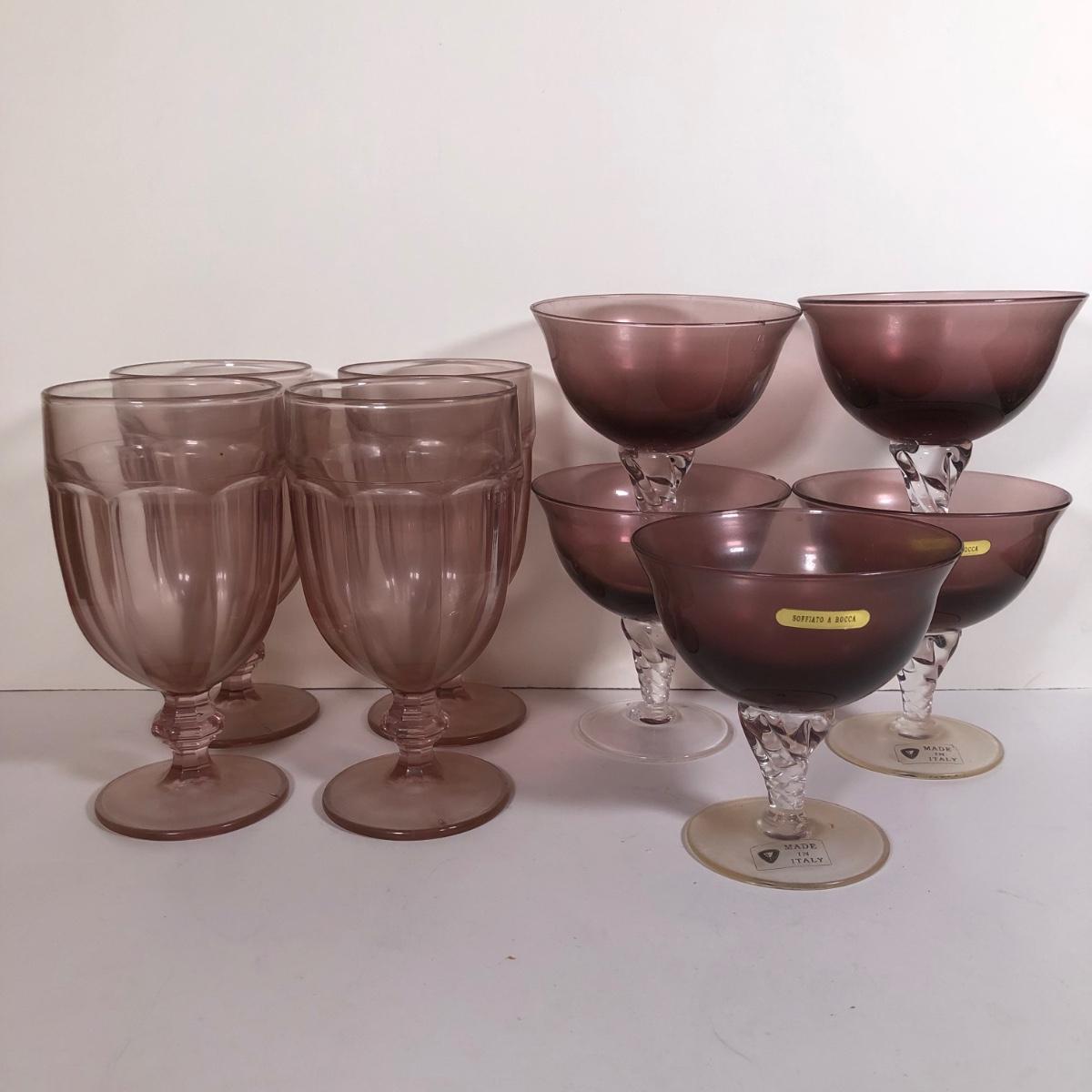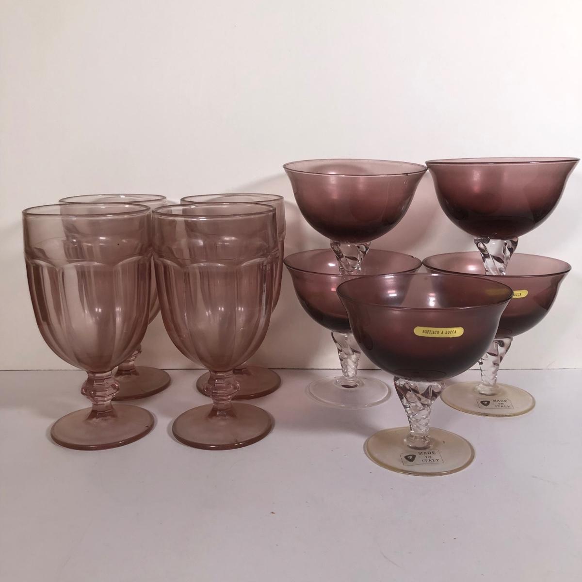 LOT 34D: Soffiato A Bocca Italian Purple Stemmed Glasses & Pink Glass Goblets