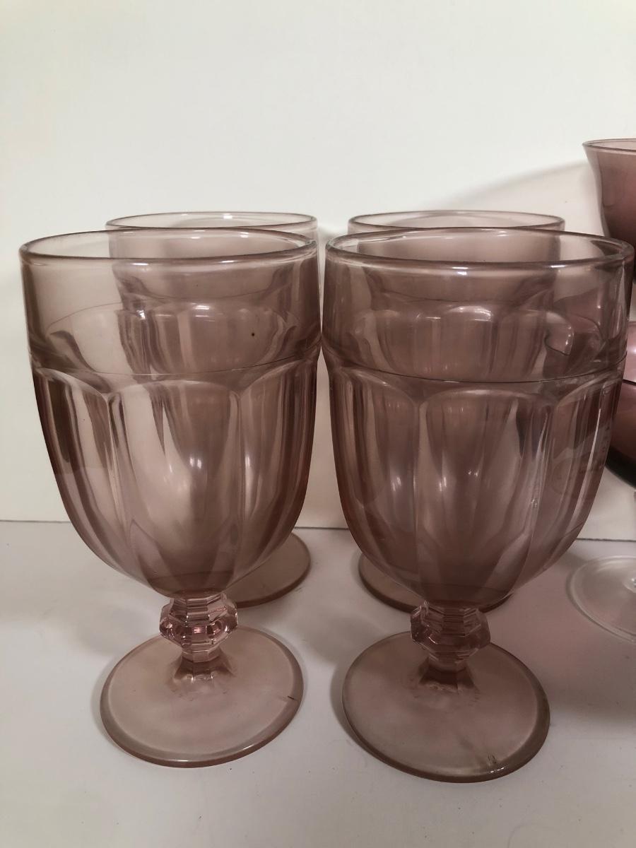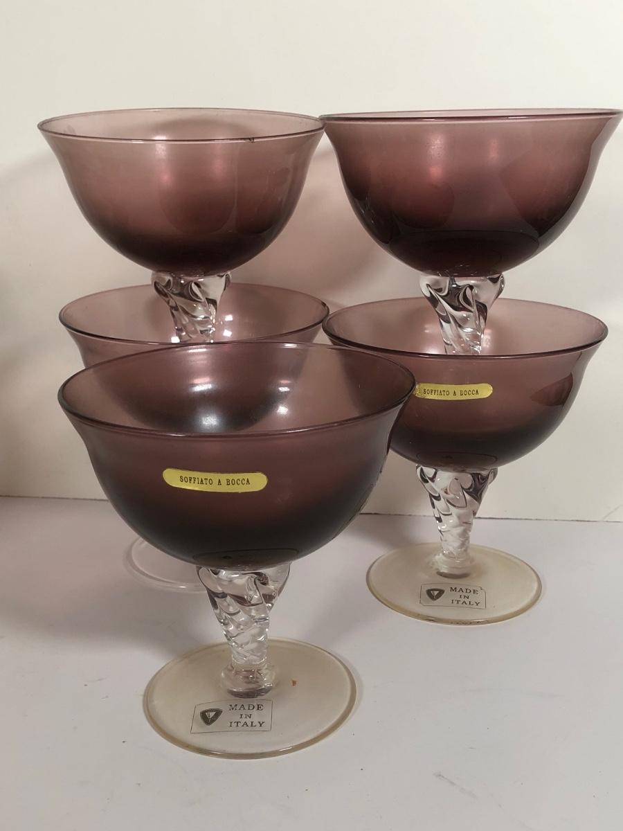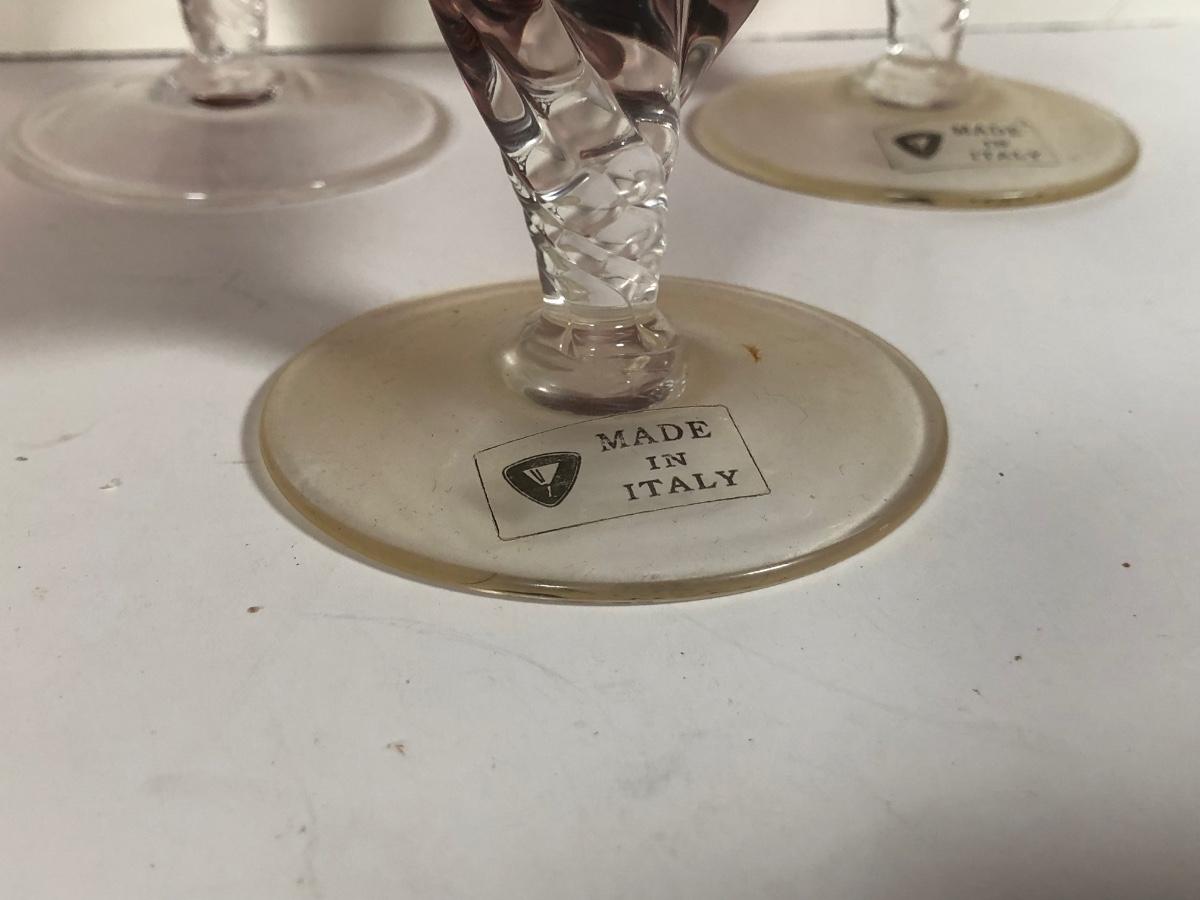 LOT 34D: Soffiato A Bocca Italian Purple Stemmed Glasses & Pink Glass Goblets