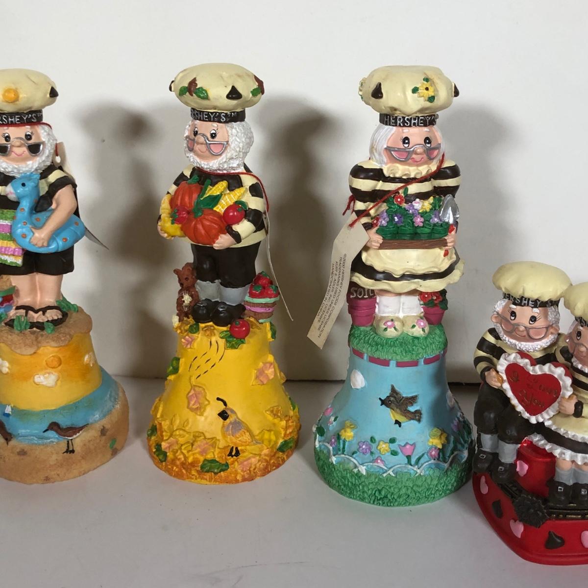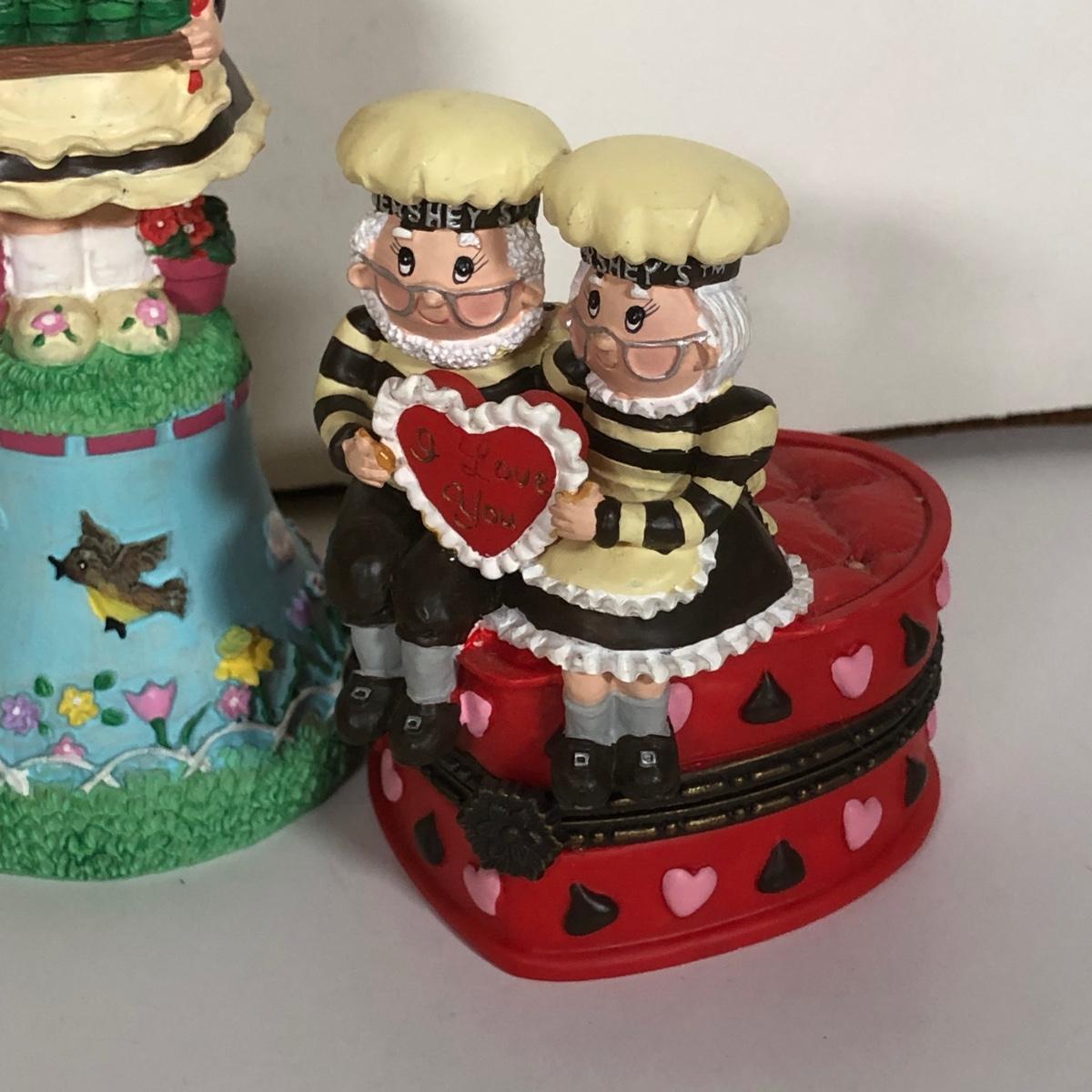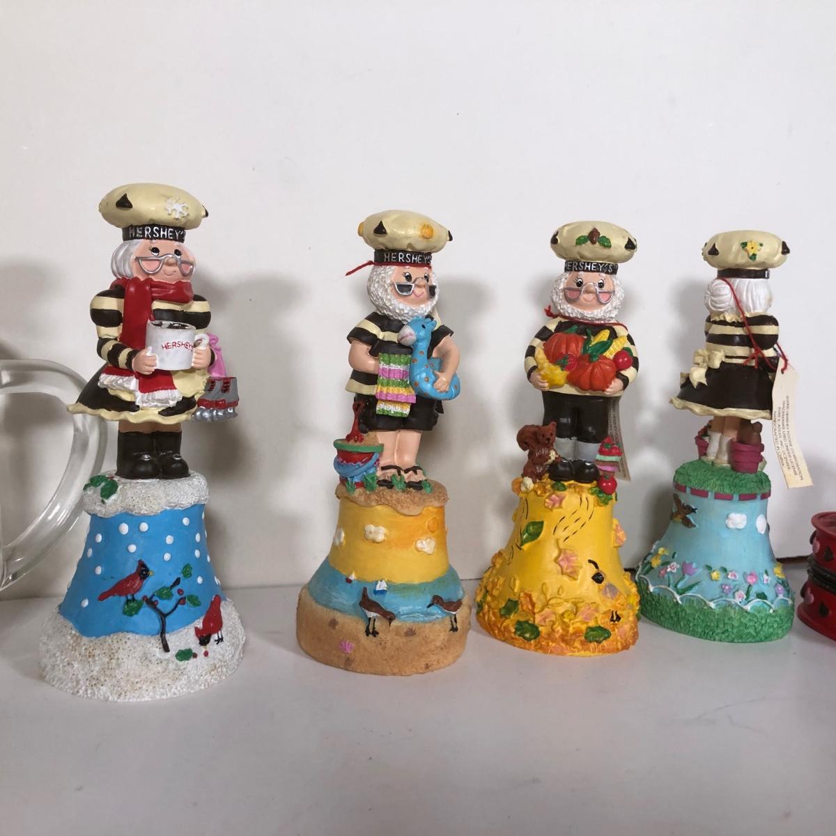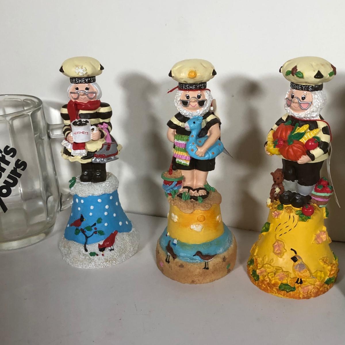 LOT 38D: 1980s California Raisin Toys, Herr's Glass Mug & 2000s Hershey's Collectible Trinket Box & Bells