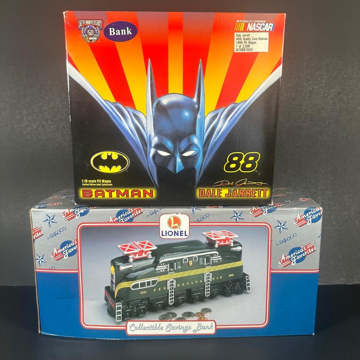 LOT 43X: Batman/Dale Jarrett NASCAR Scale Pit Wagon & Lionel/Enesco Collectable Savings Bank
