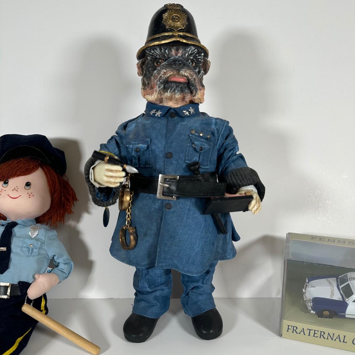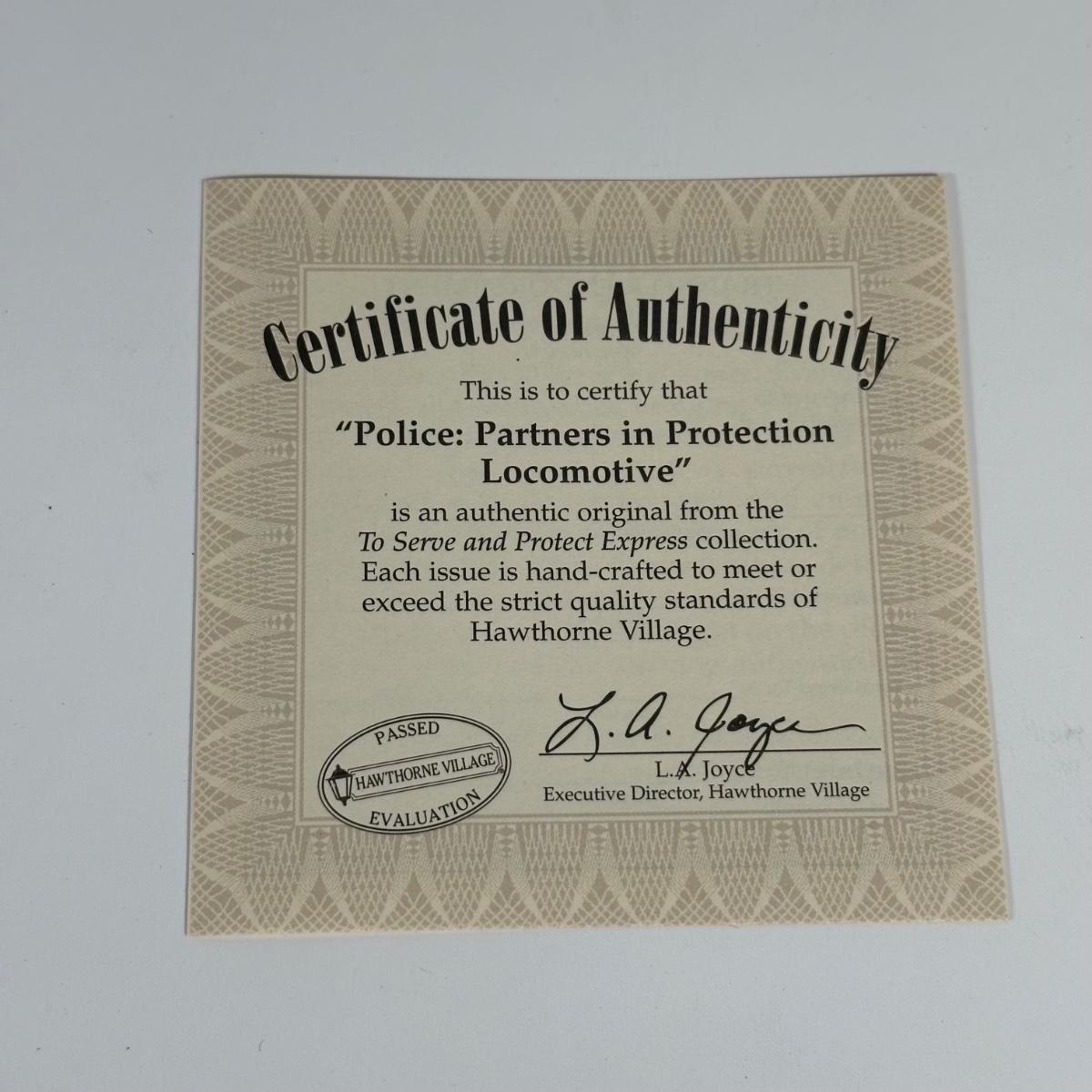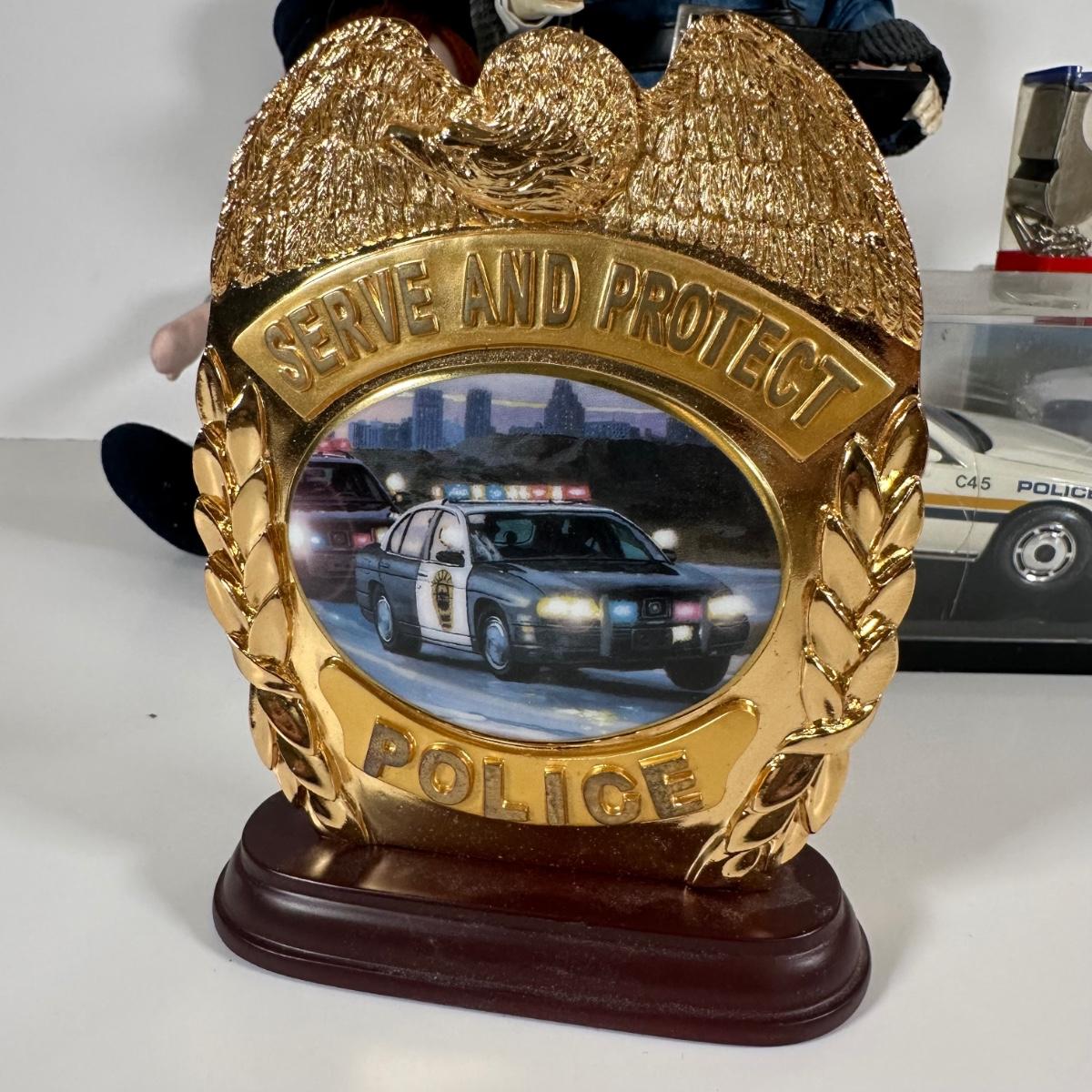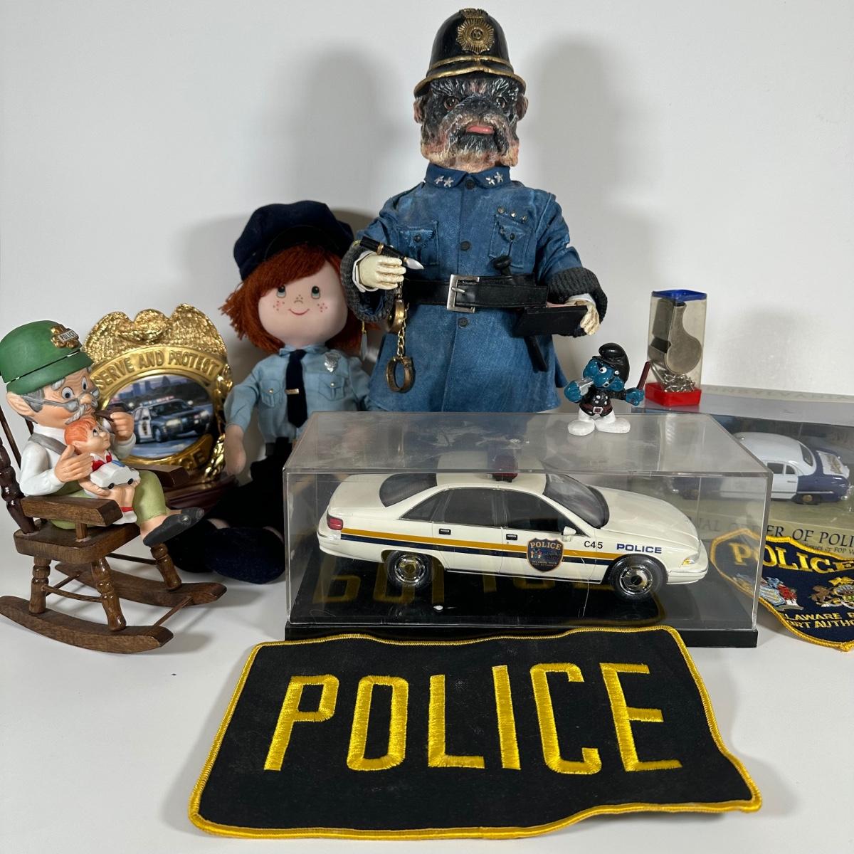 LOT 56X: Police Themed Toys, Decor, Mugs, Hawthorne Village Police Partners In Protection Locomotive & More