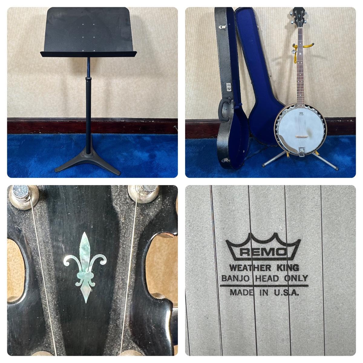 LOT 57X: 5 String Banjo w/ Carrying Case, Stand, Music Stand & More