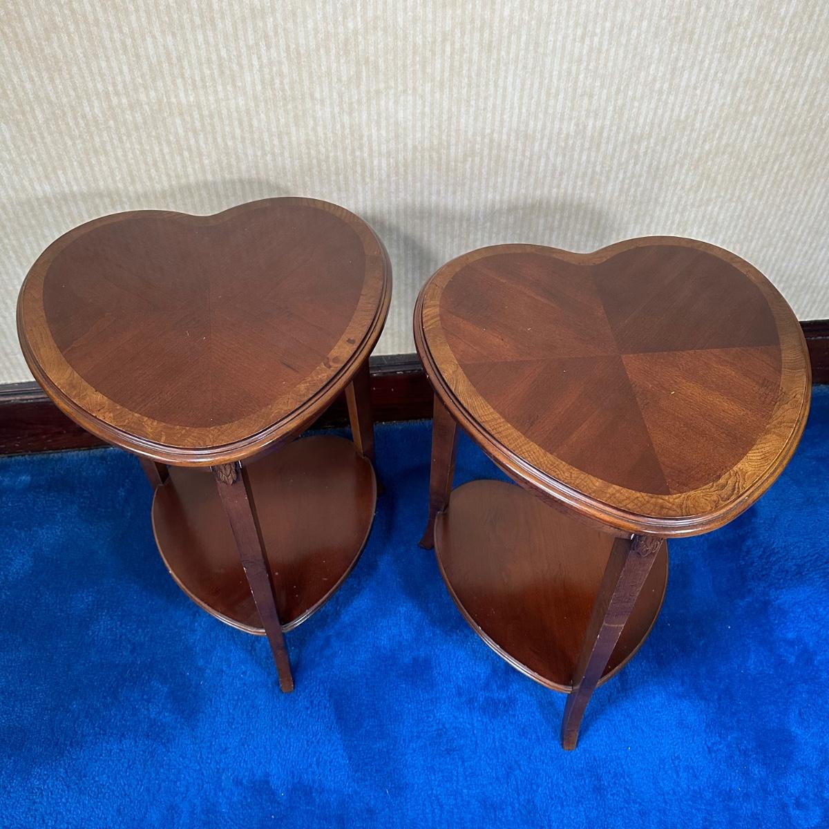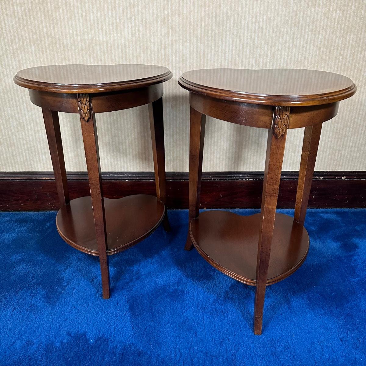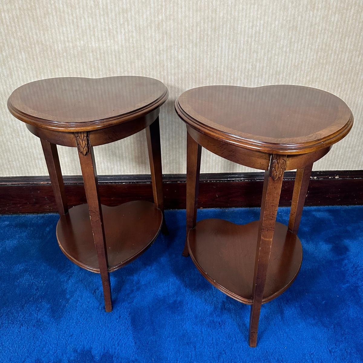 LOT 58X: 2 Vintage Lane Furniture Two Tier Heart Shaped Oak Side Tables