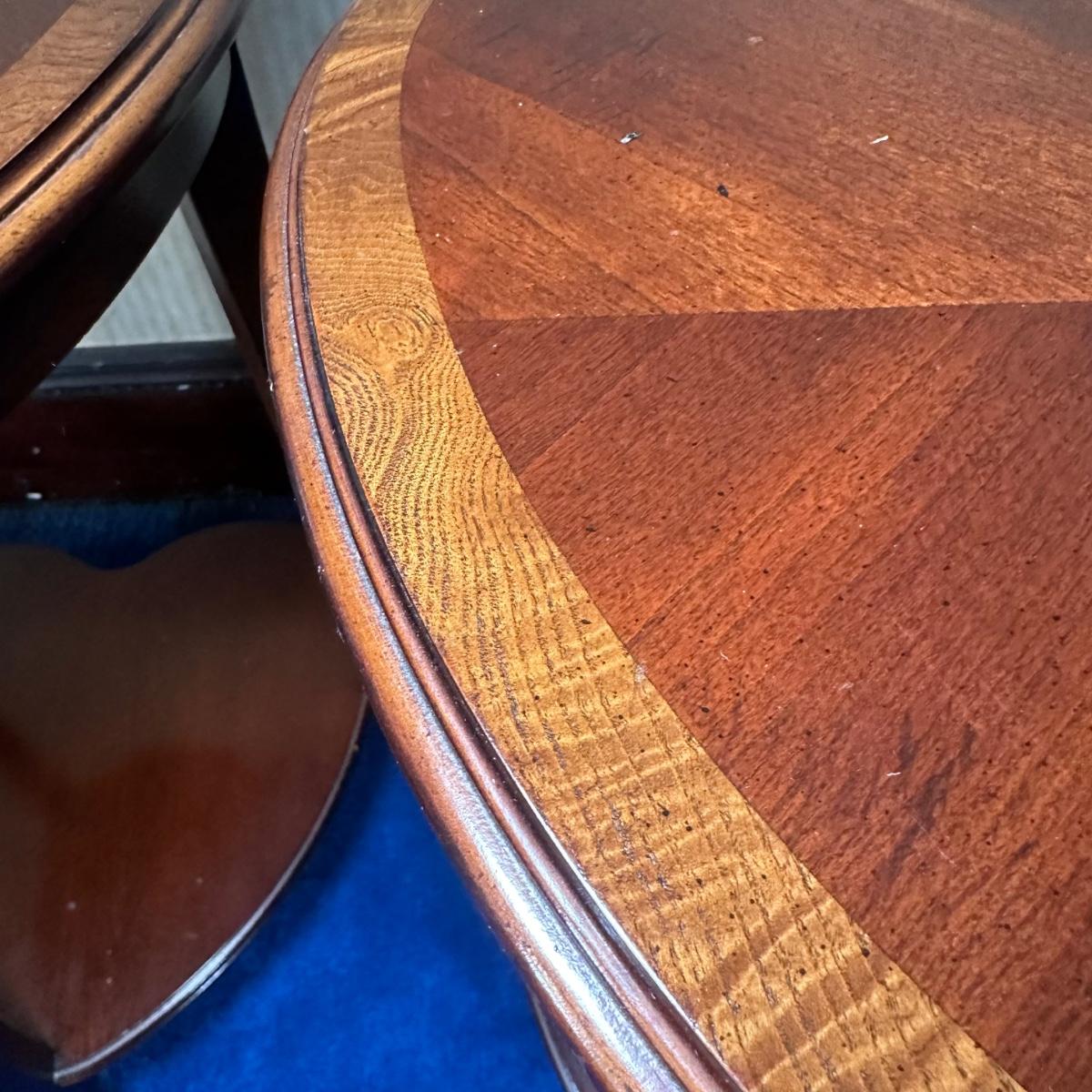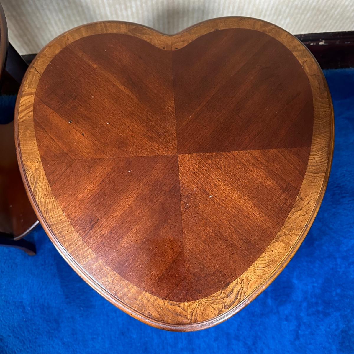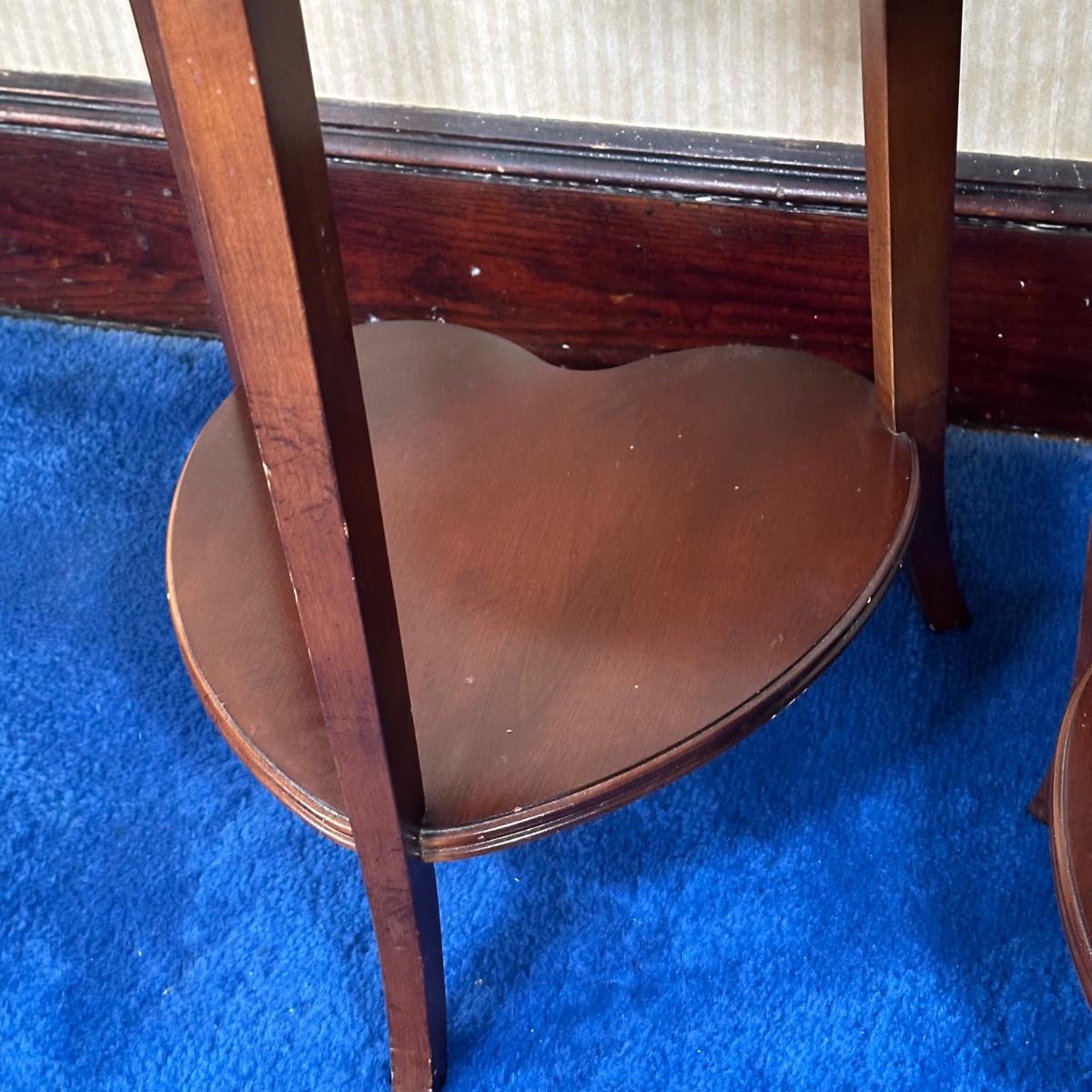LOT 58X: 2 Vintage Lane Furniture Two Tier Heart Shaped Oak Side Tables