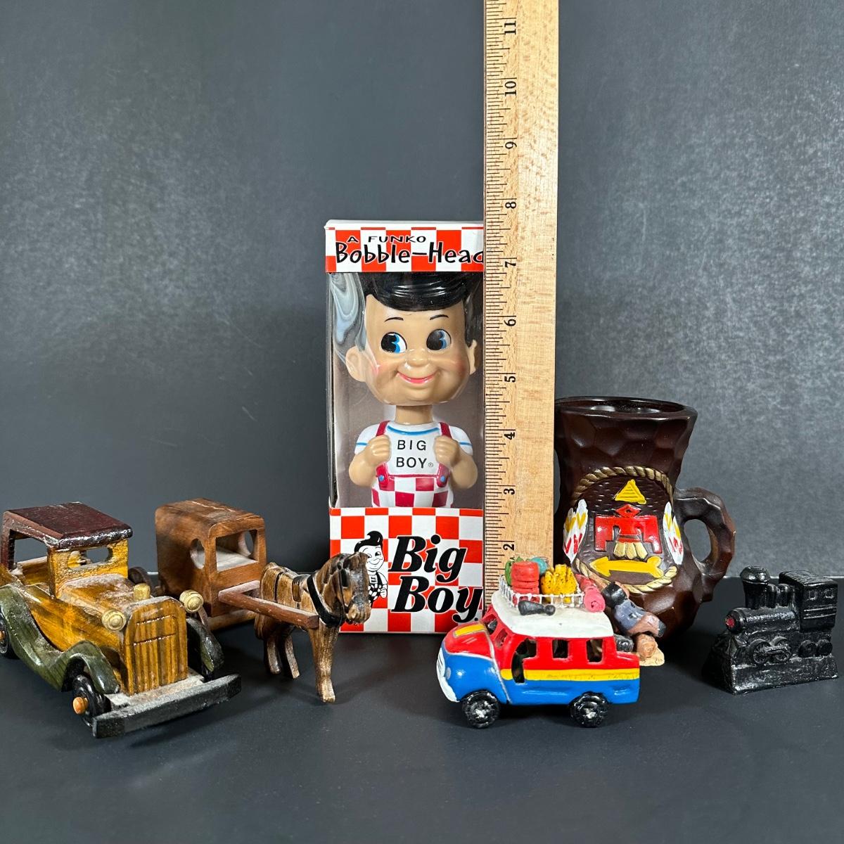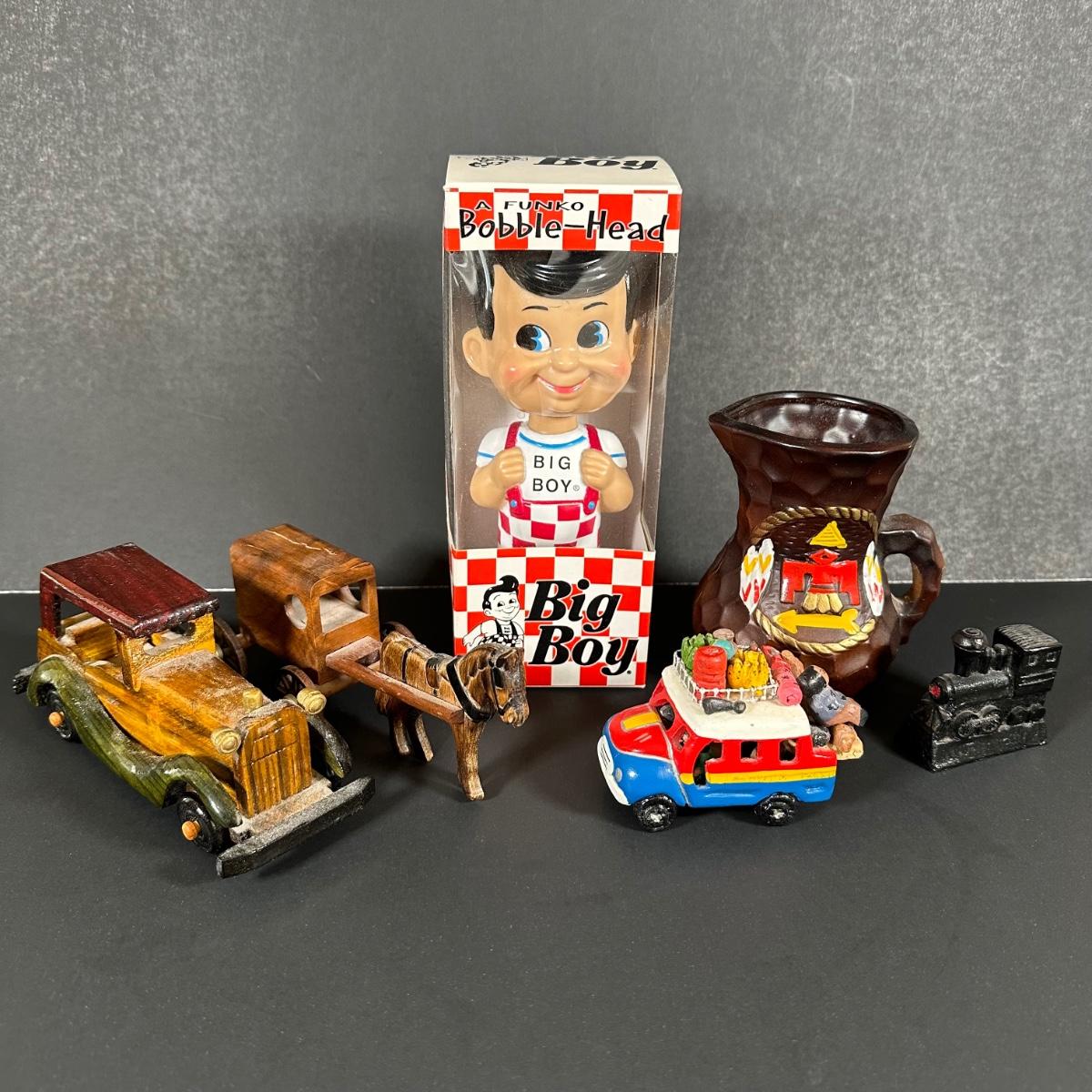 LOT 64X: Miscellaneous Collection! Big Boy Funko Bobble Head, Carved Coal Train & More