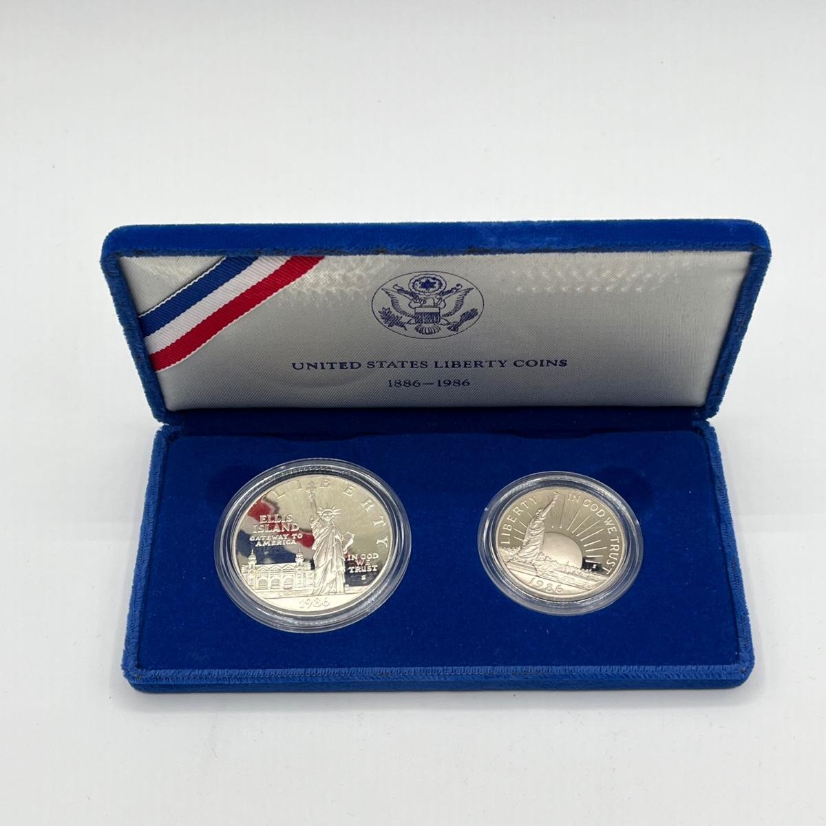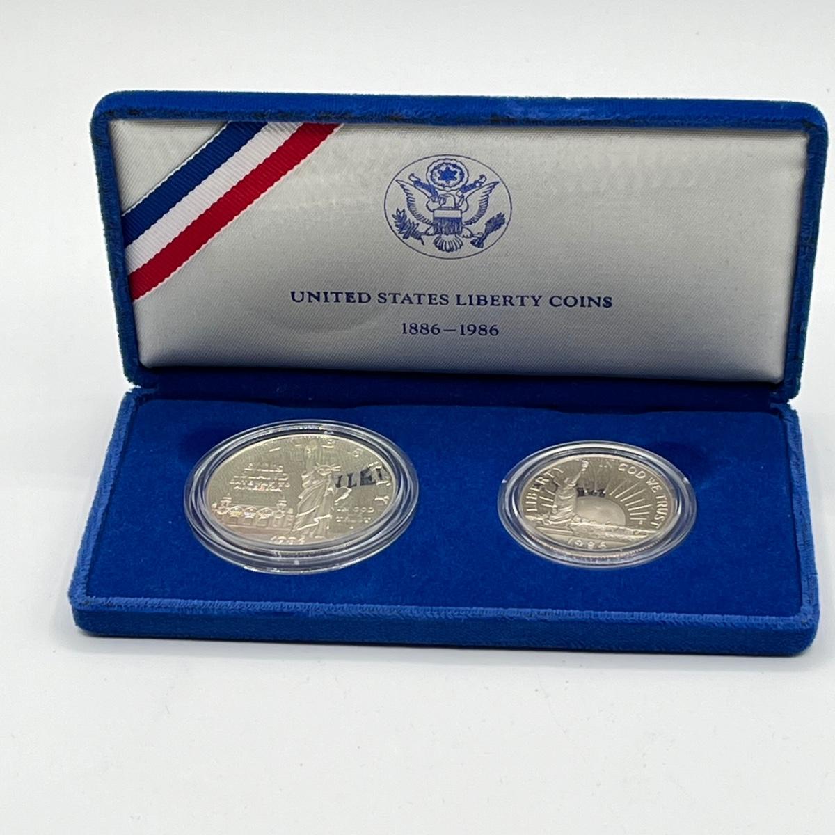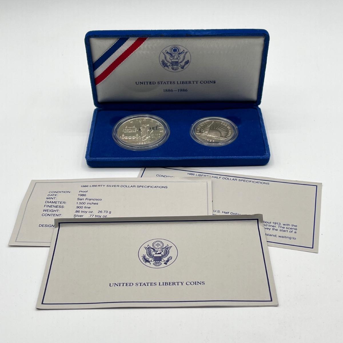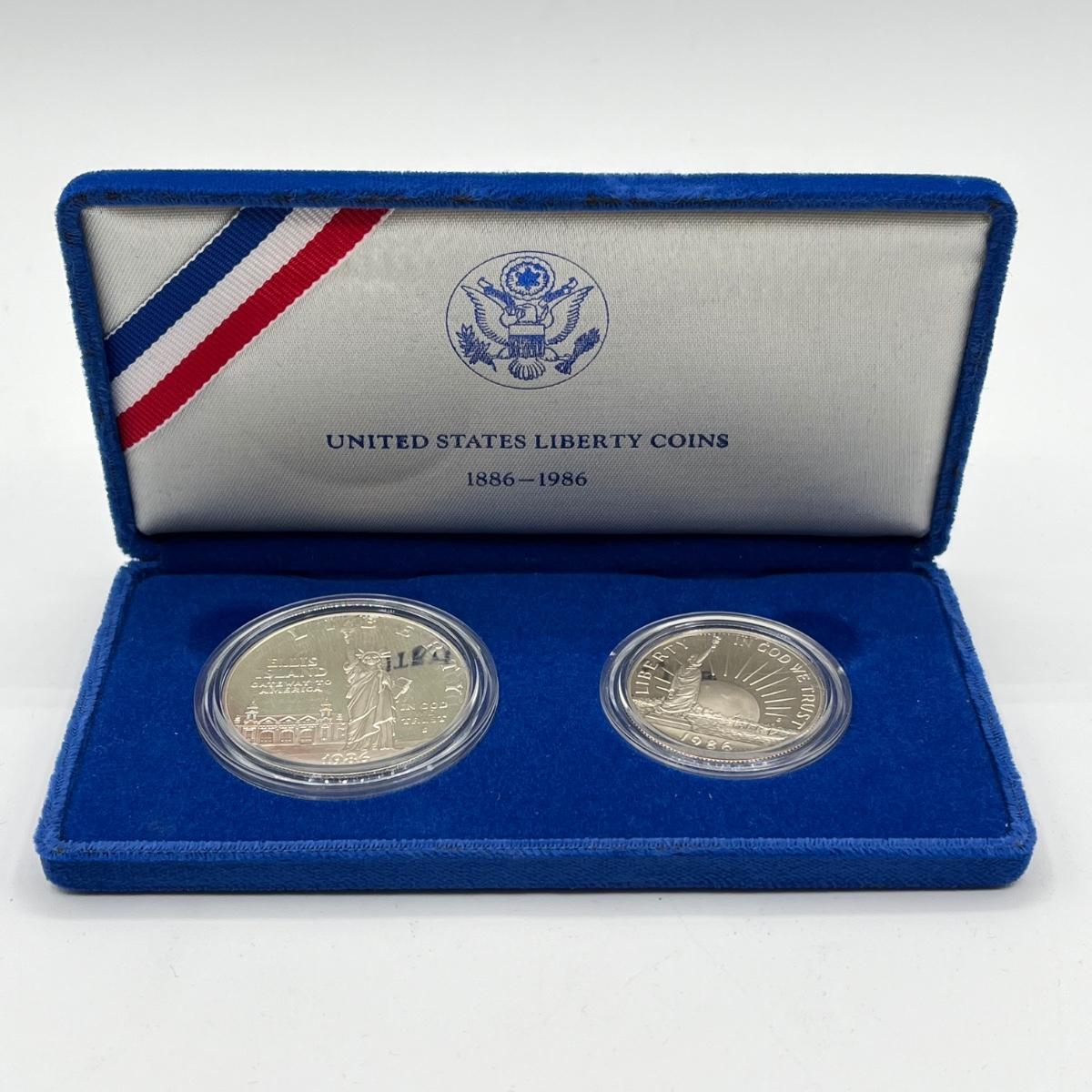 LOT 71J: US Liberty Coins Set 1886-1986 Commemorative 90% Silver Dollar and Half Dollar