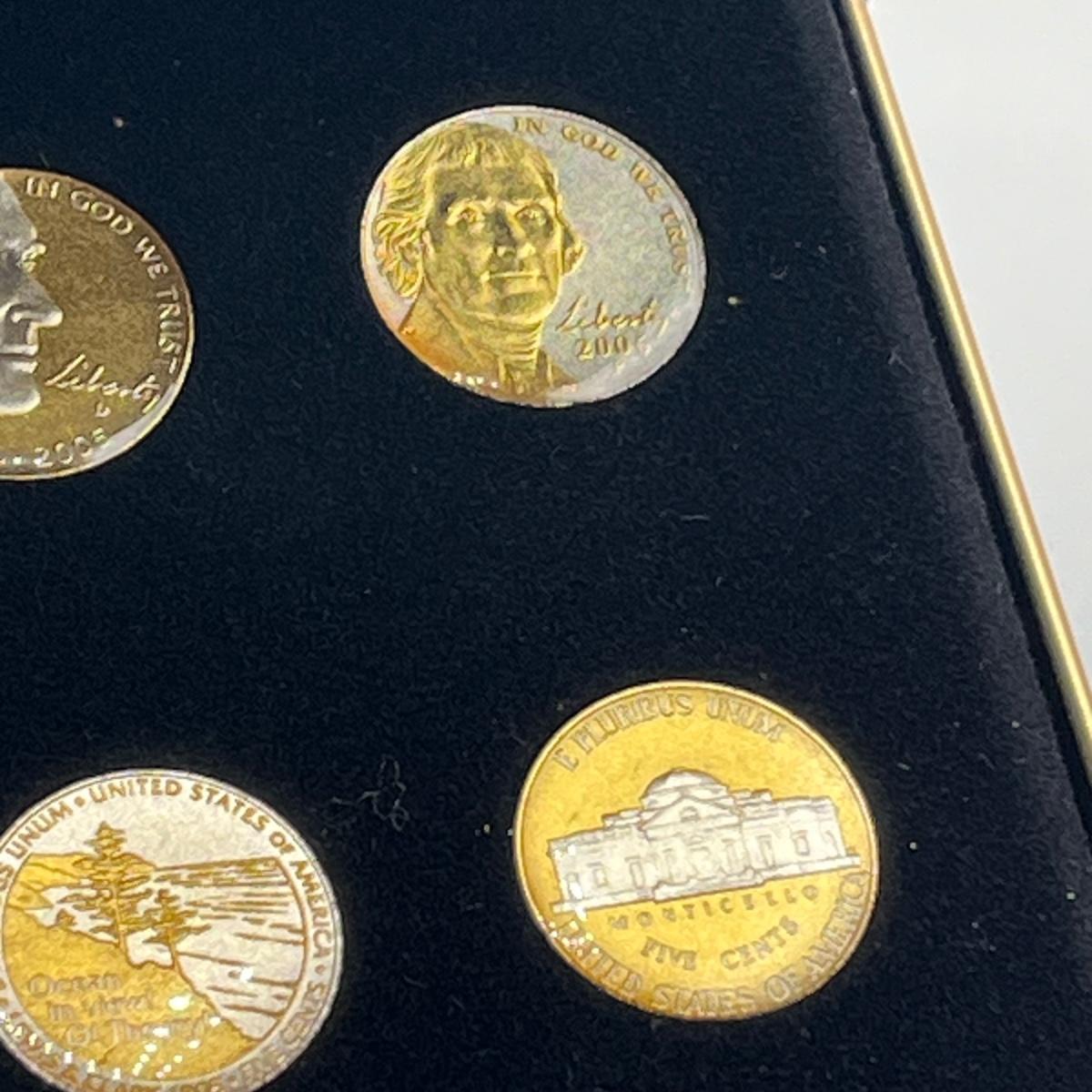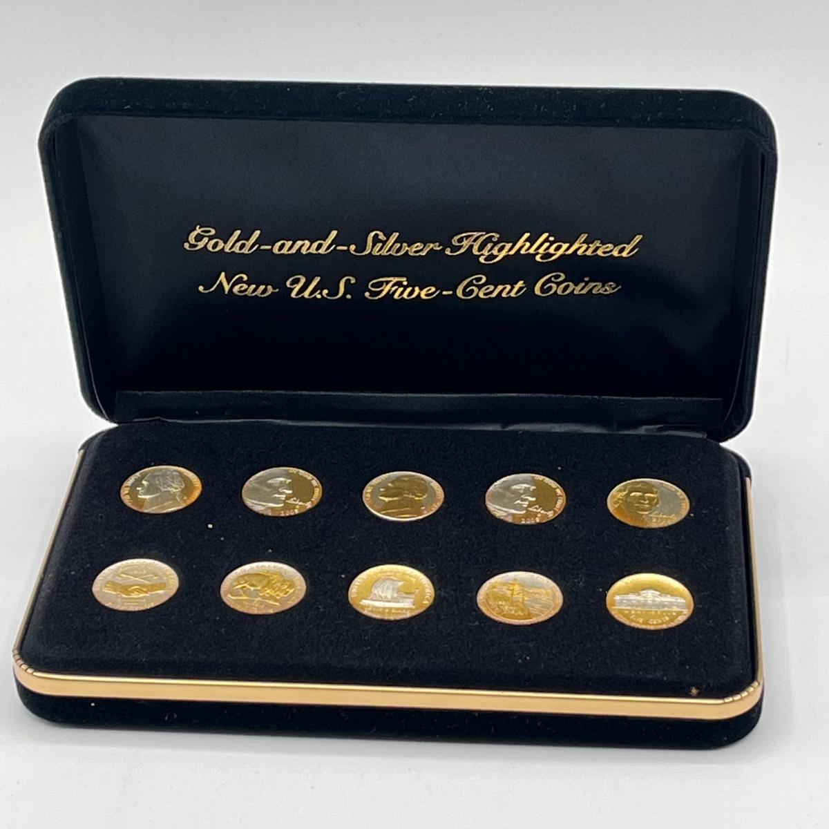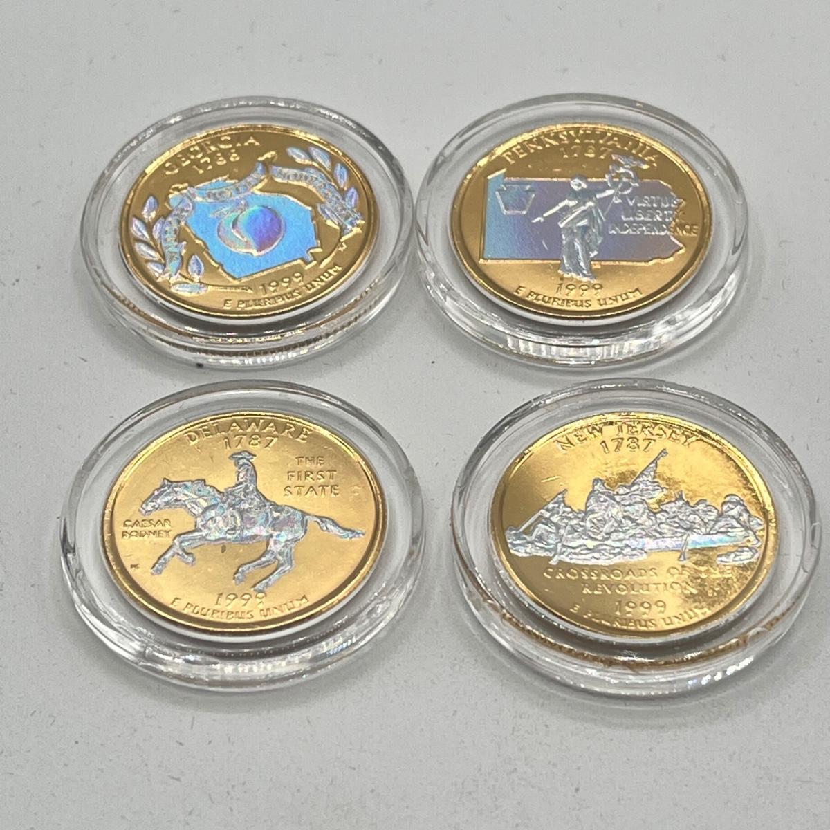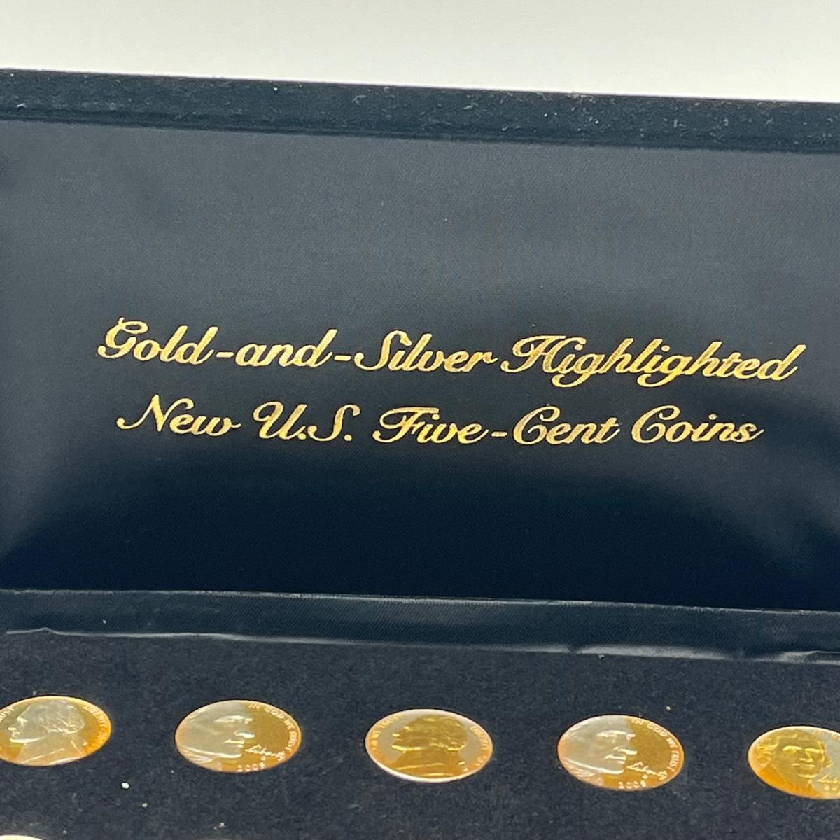 LOT 73J: Gold and Hologram 1999 State Quarters and Gold and Silver Highlighted US Five Cent Coins Set