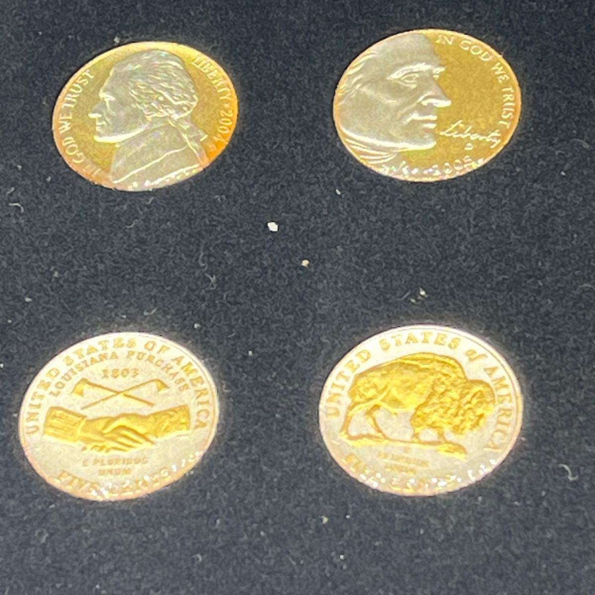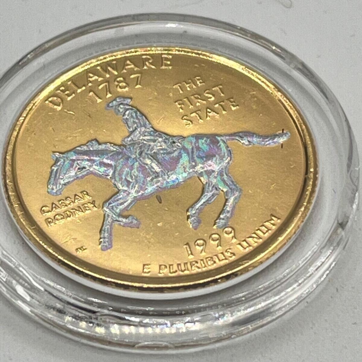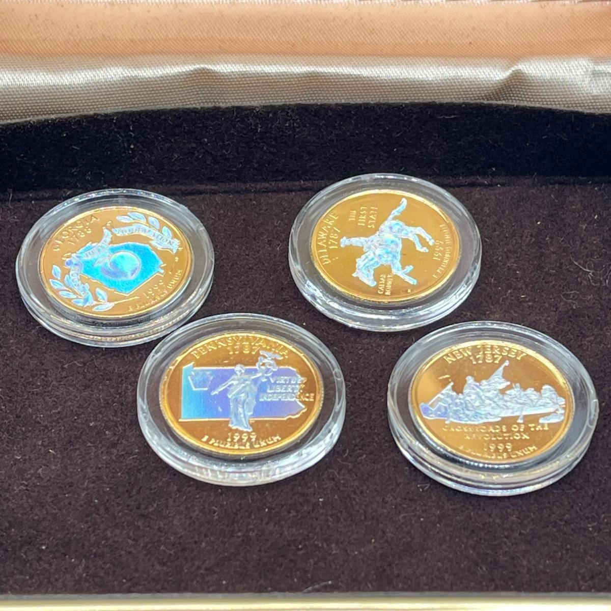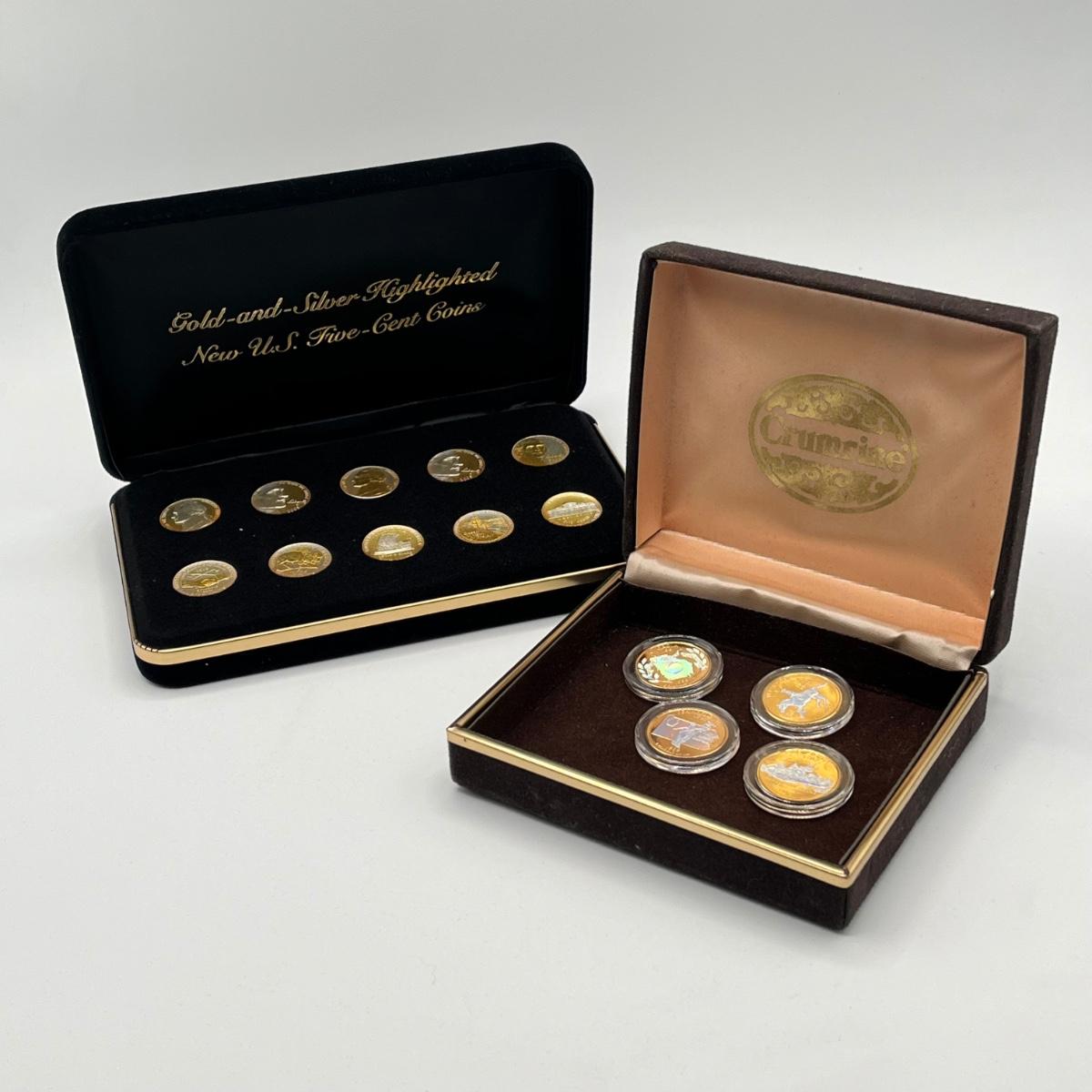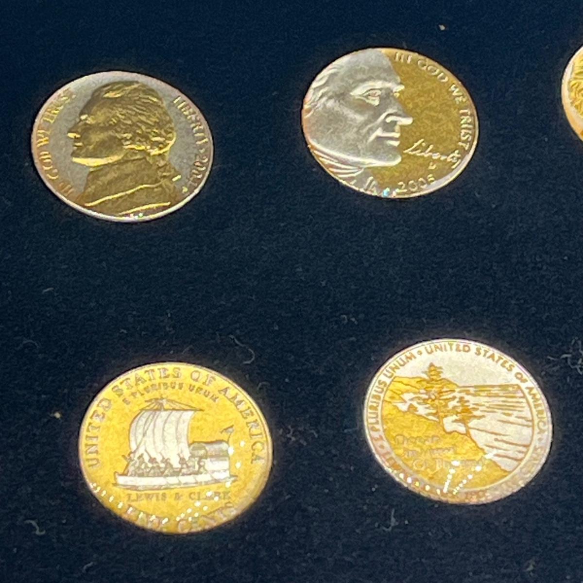 LOT 73J: Gold and Hologram 1999 State Quarters and Gold and Silver Highlighted US Five Cent Coins Set