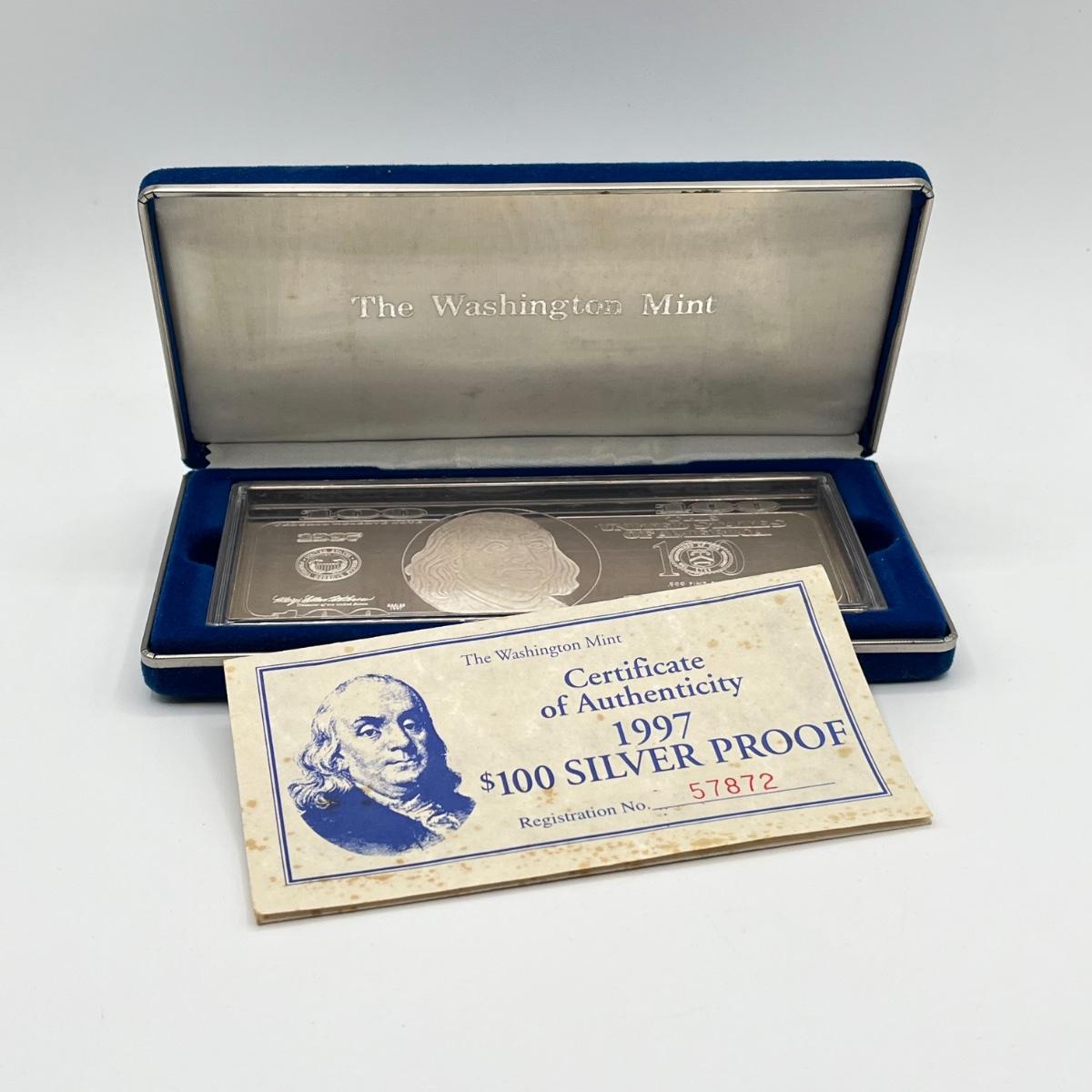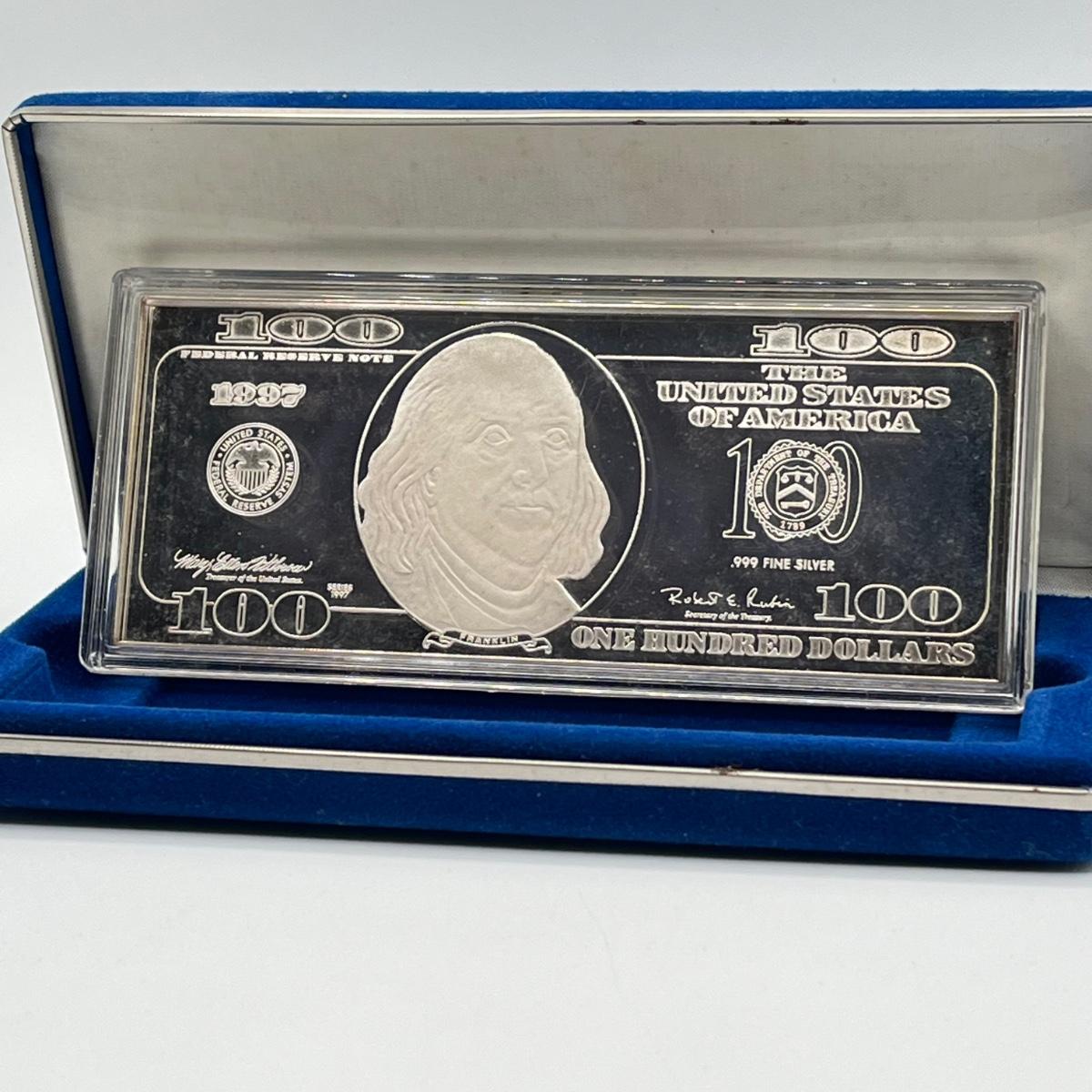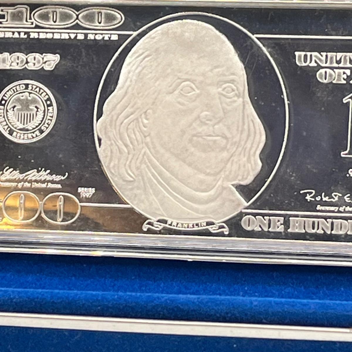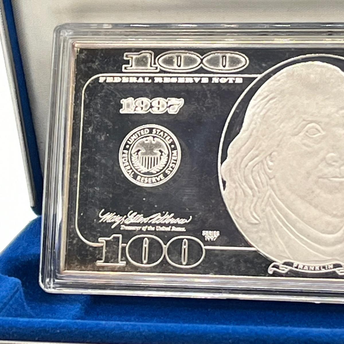 LOT 78J: 1997 Silver Proof $100 Bill - Quarter Pound of .999 Silver Bar