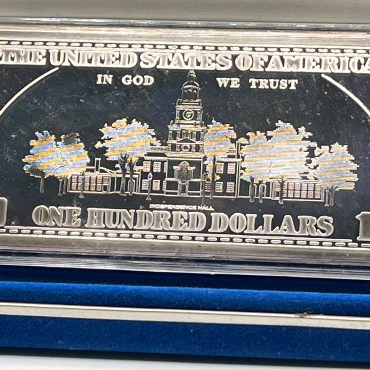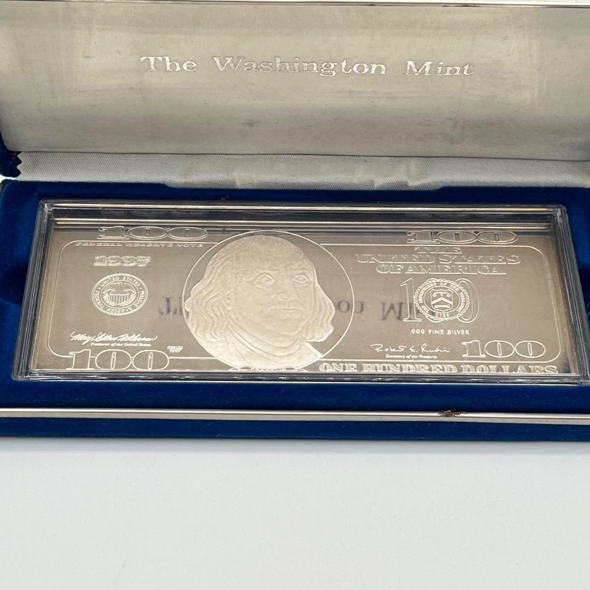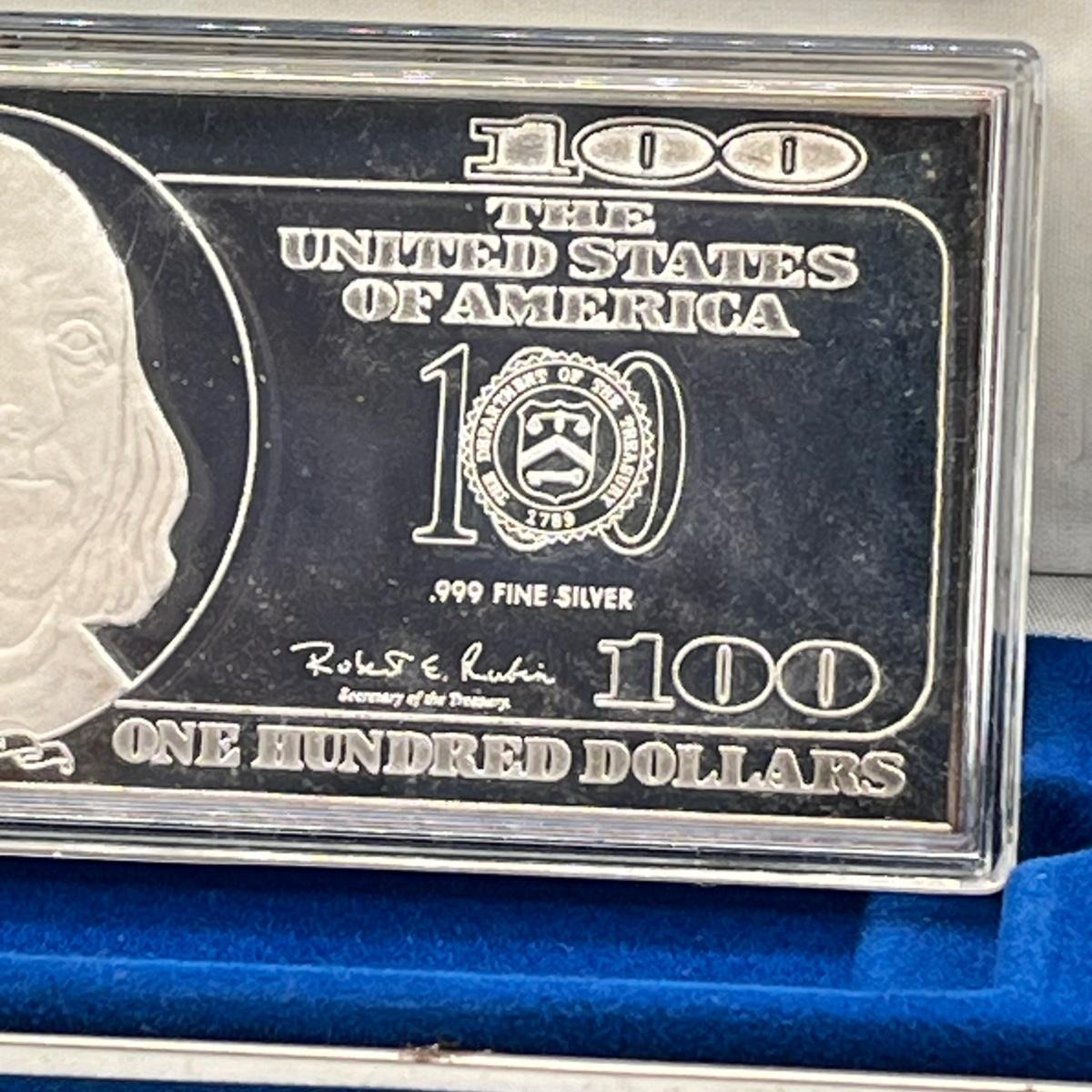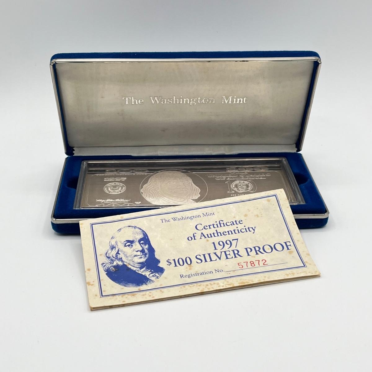 LOT 78J: 1997 Silver Proof $100 Bill - Quarter Pound of .999 Silver Bar