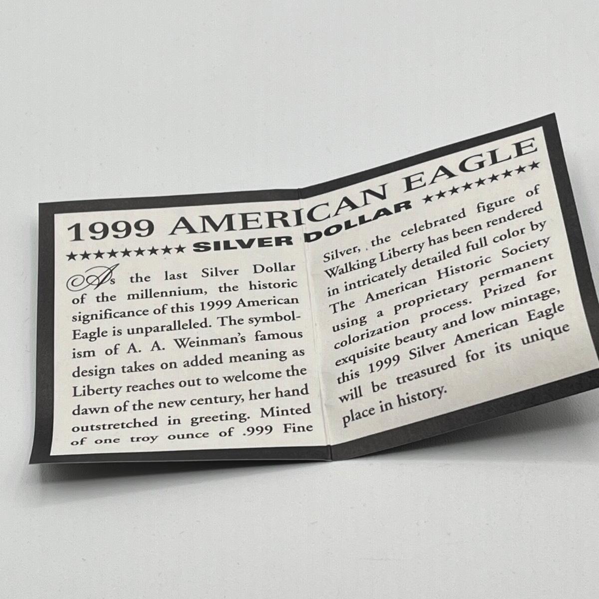 LOT 79J: 1999 Colorized One Ounce .999 Silver American Eagle Silver Dollar
