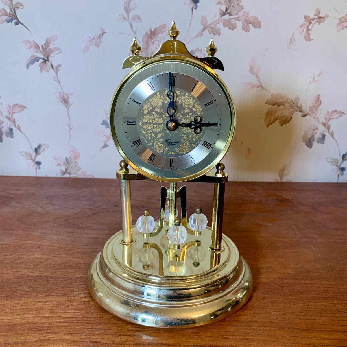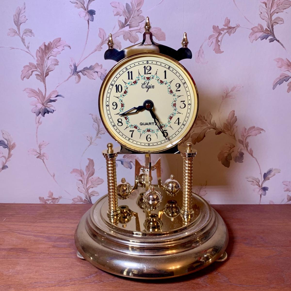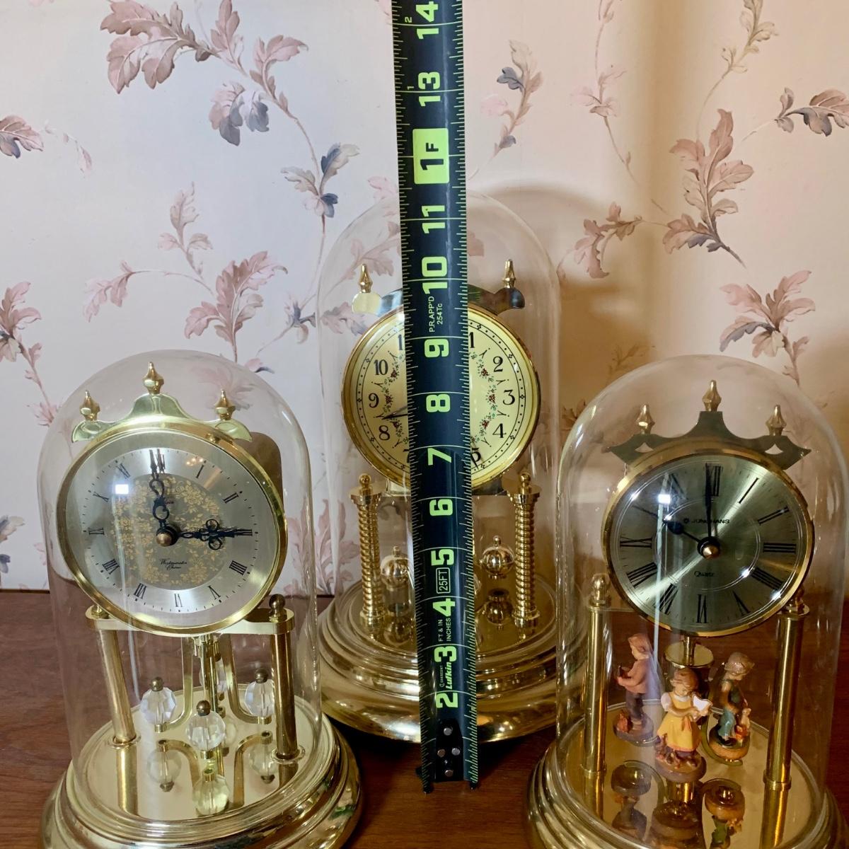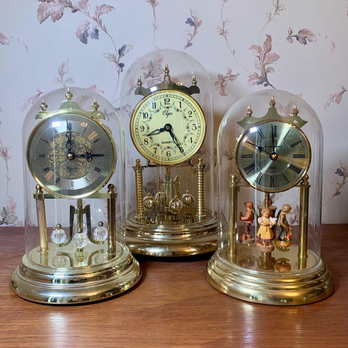 LOT 88 F: Glass Domed Mantel Clock Collection: Elgin Quartz Anniversary, Junghans Quartz, & Elgin Westminster Chime