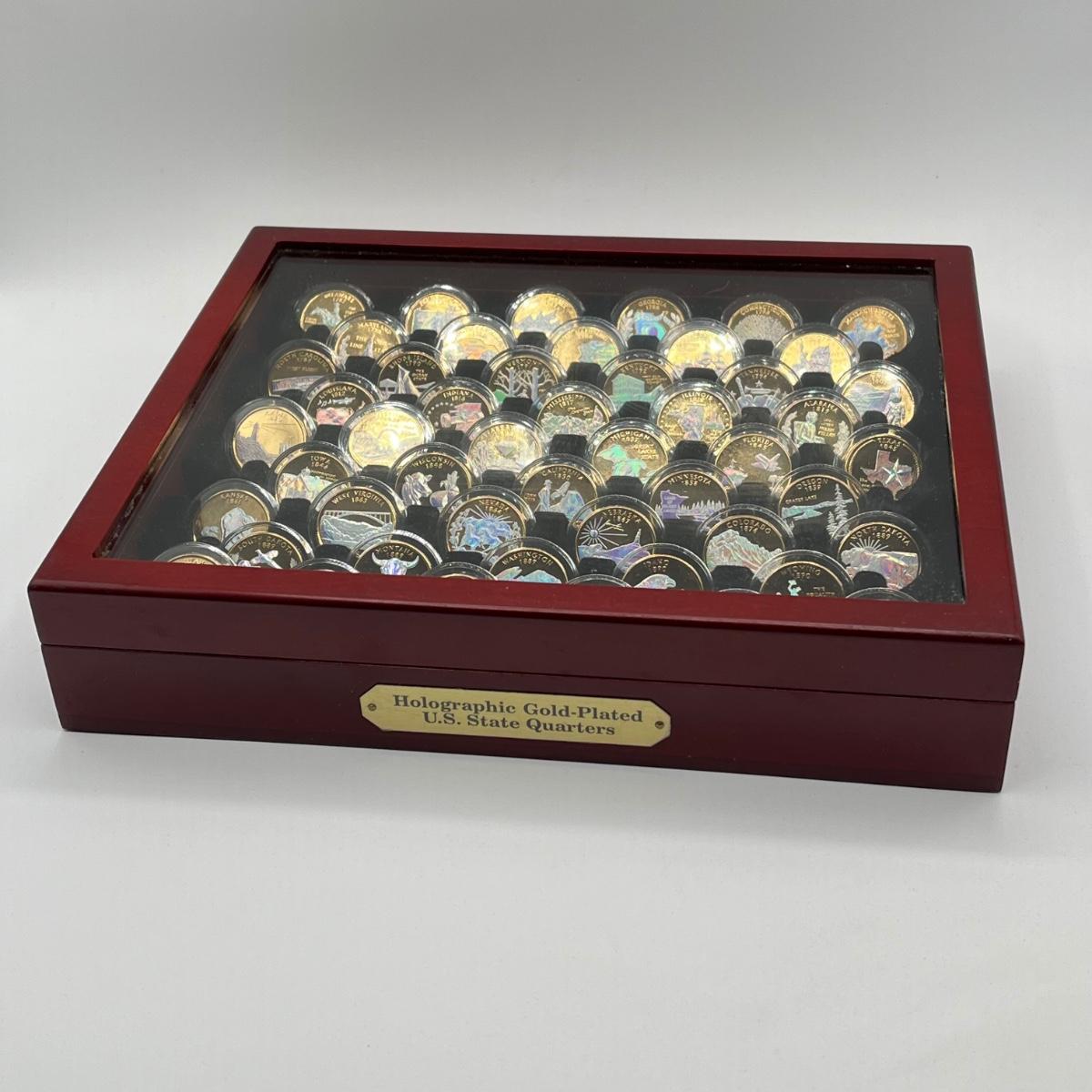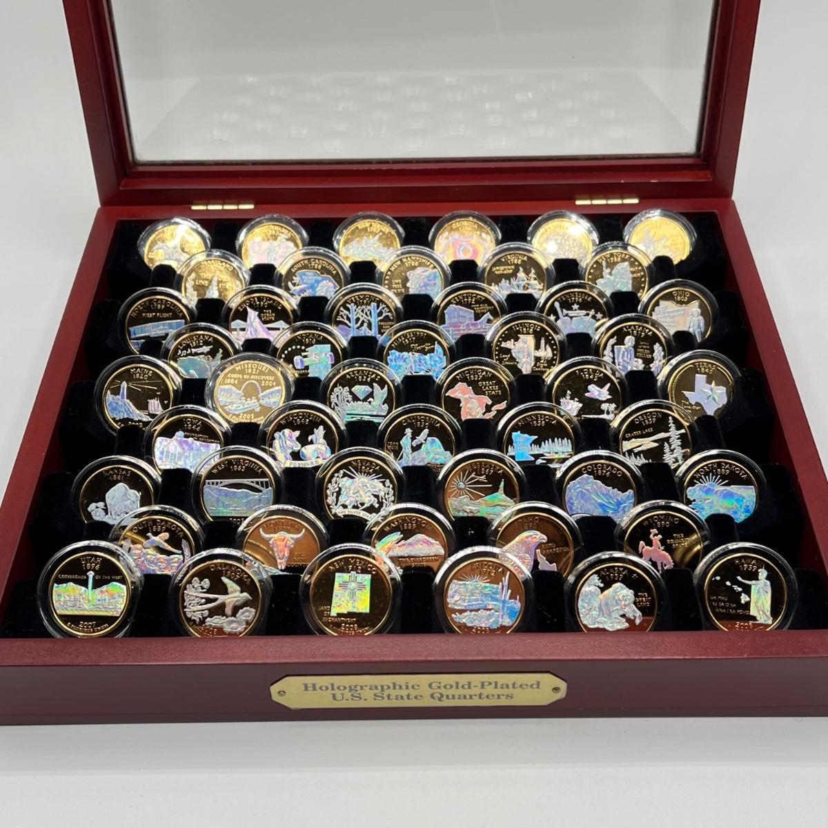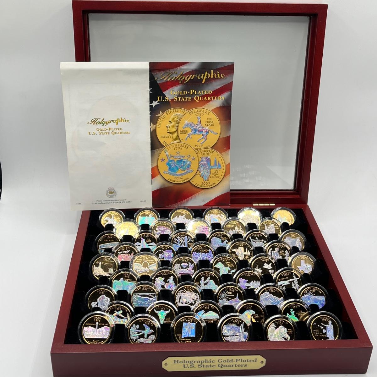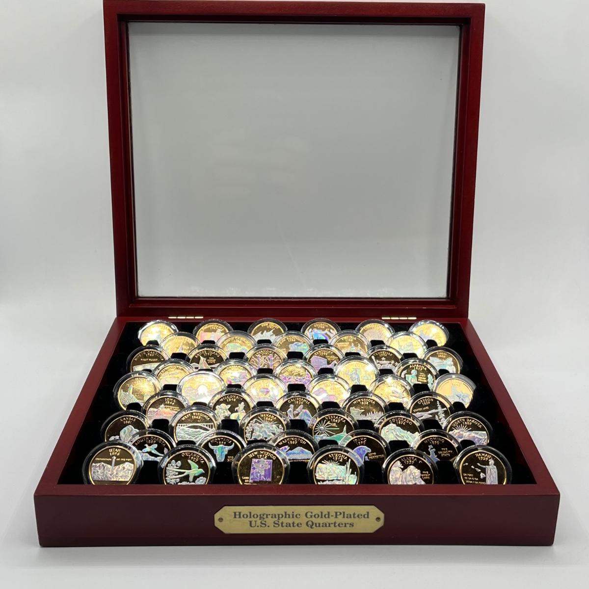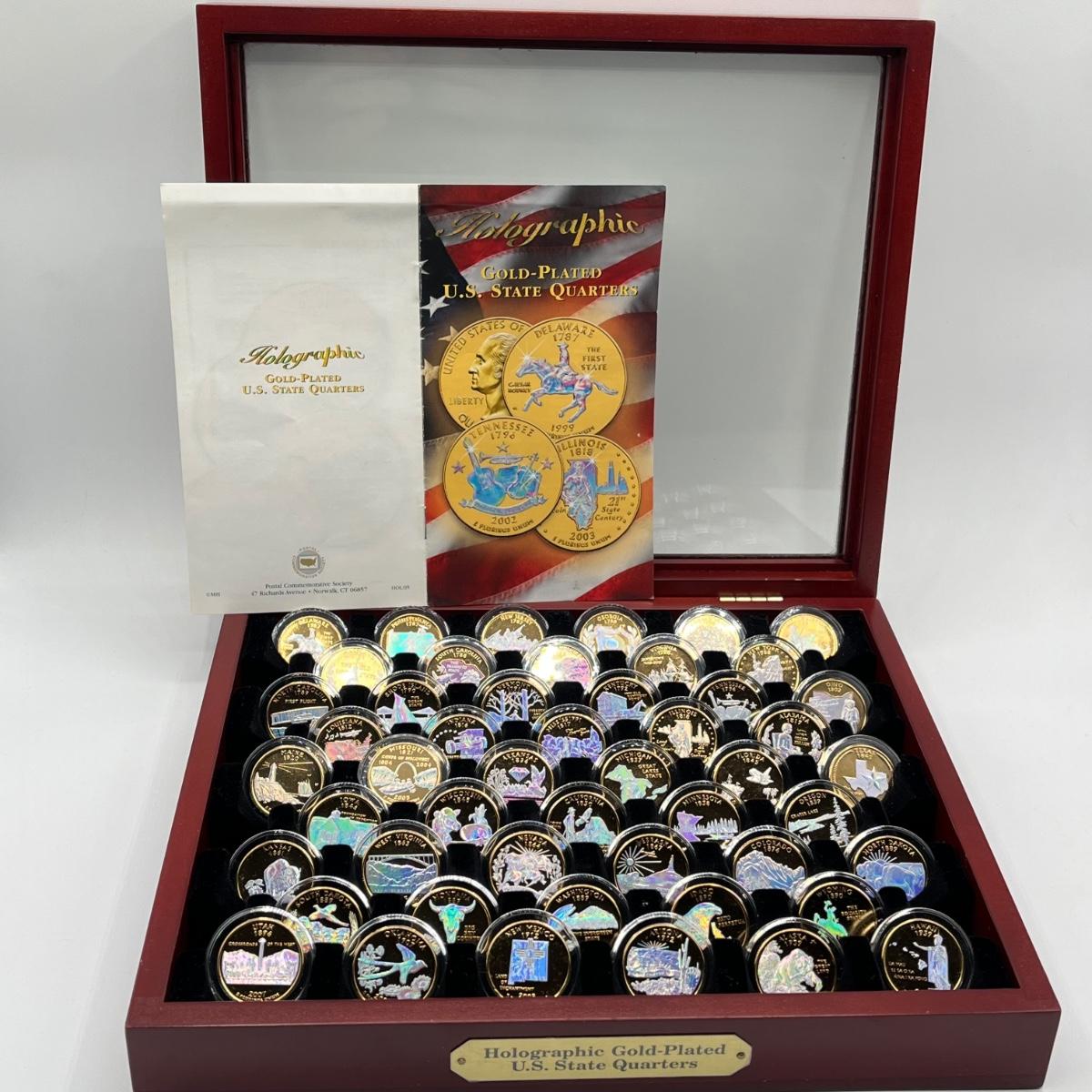LOT 103J: Gold- Plated Holographic State Quarter Collection in Case - Complete 50-State Set