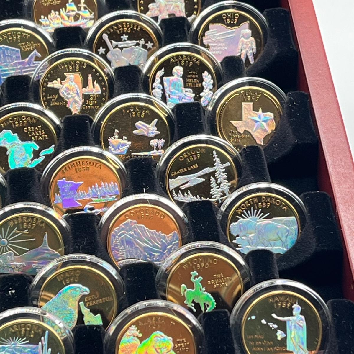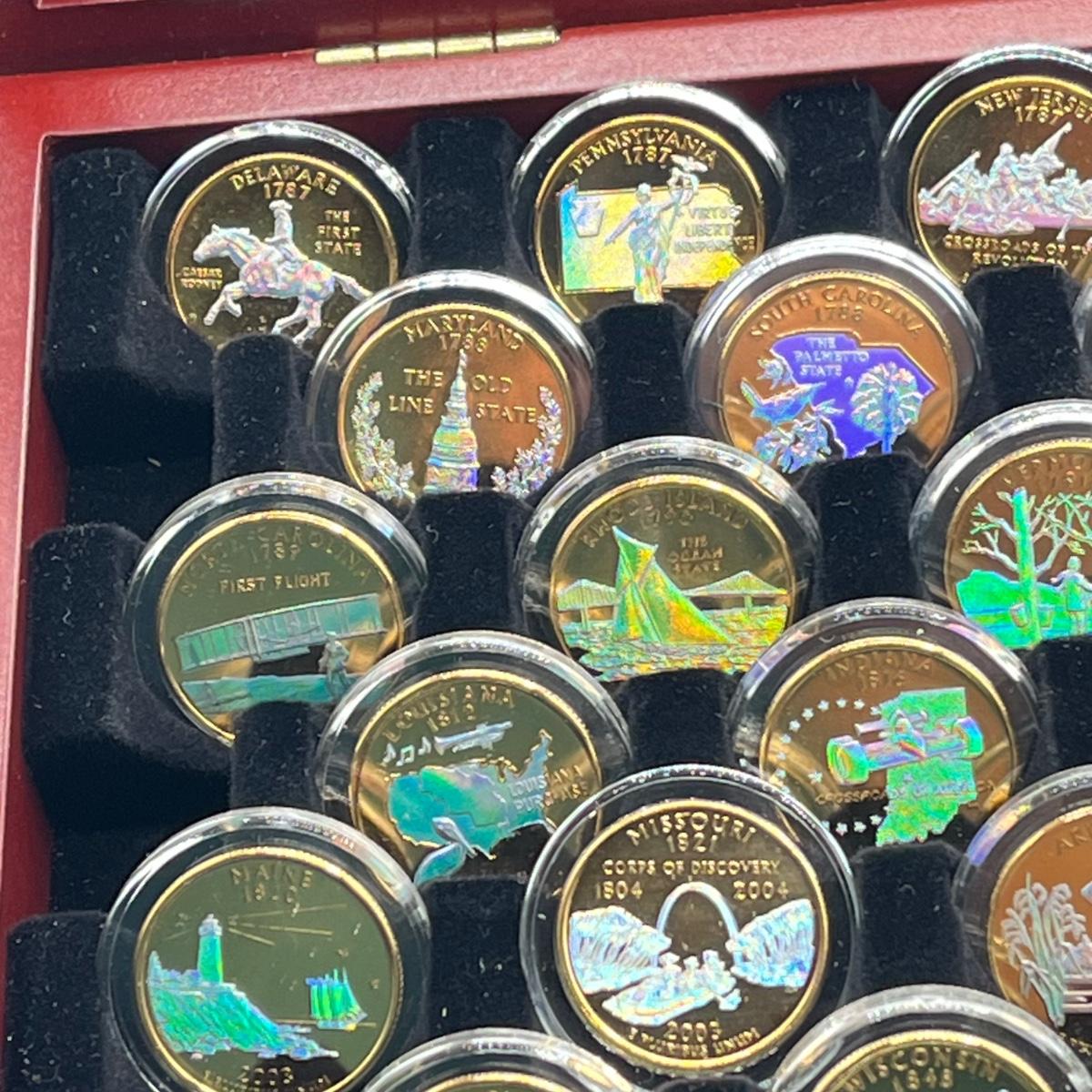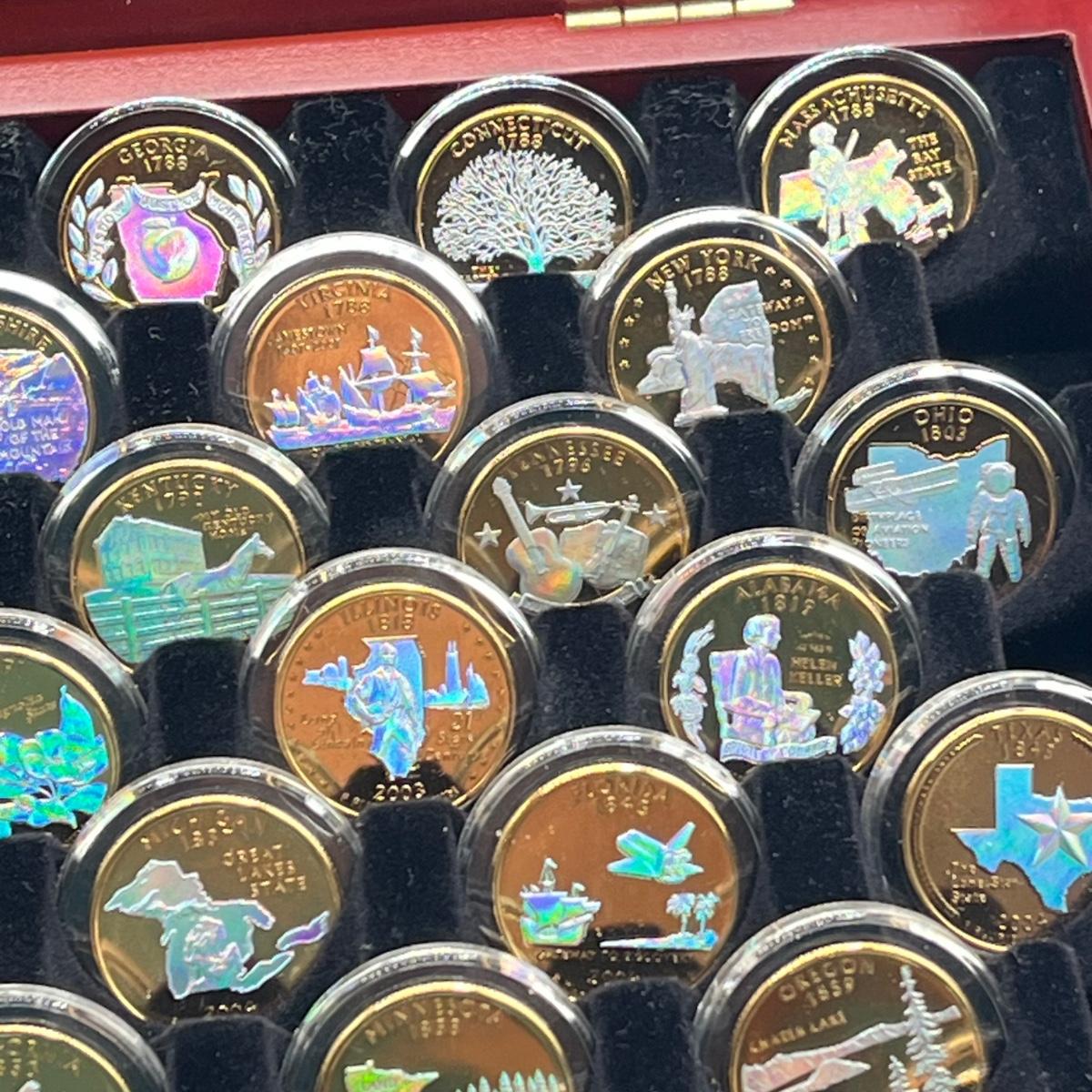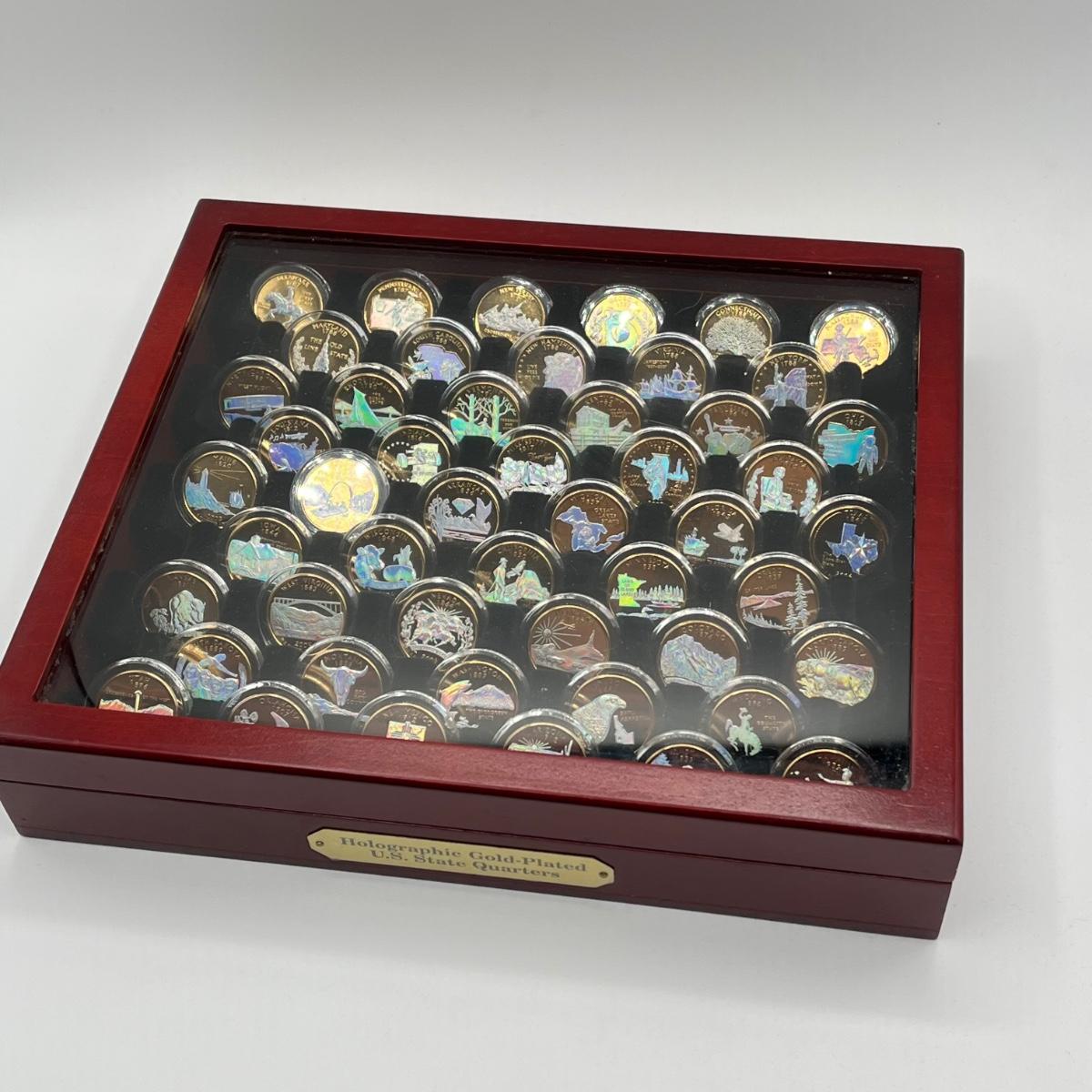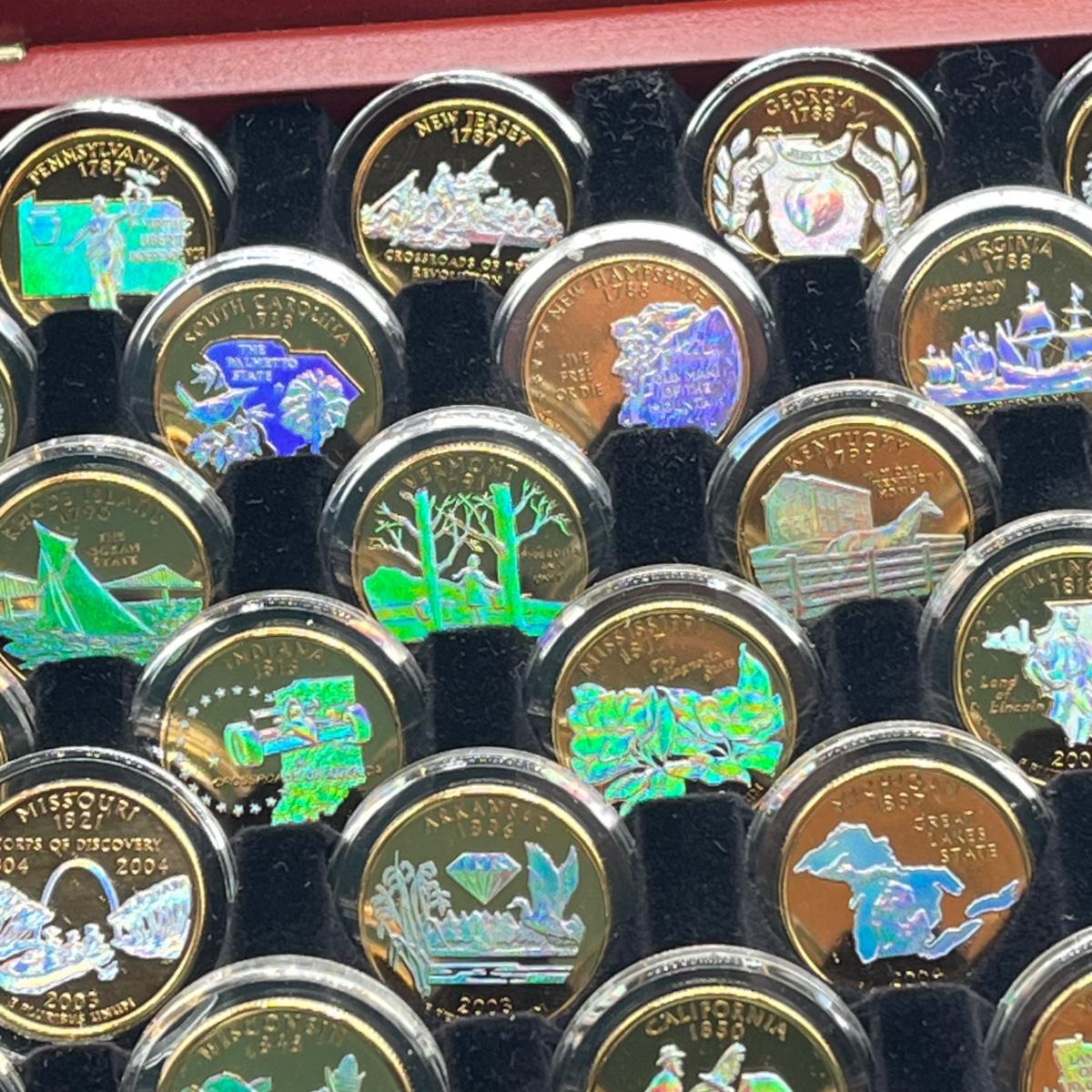 LOT 103J: Gold- Plated Holographic State Quarter Collection in Case - Complete 50-State Set