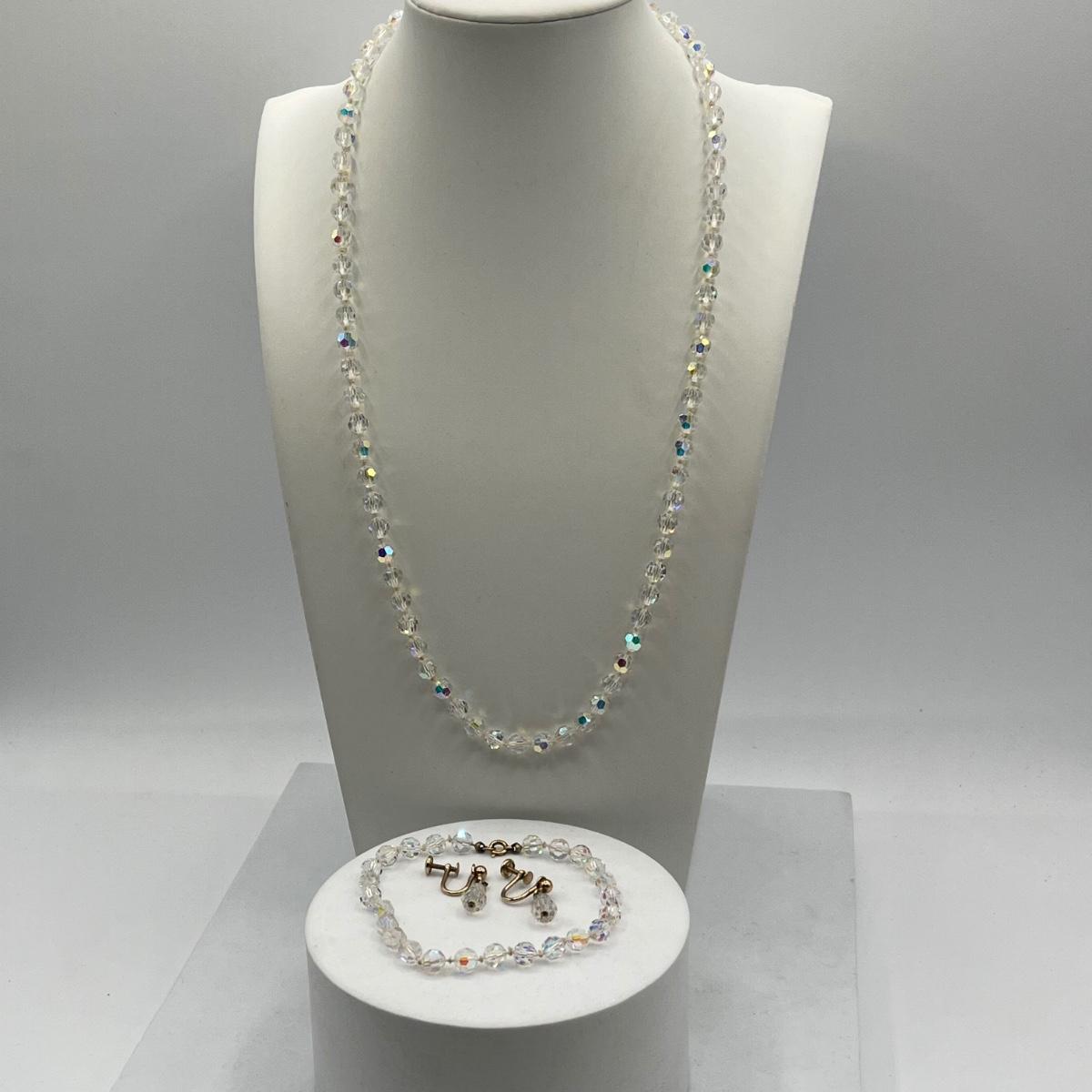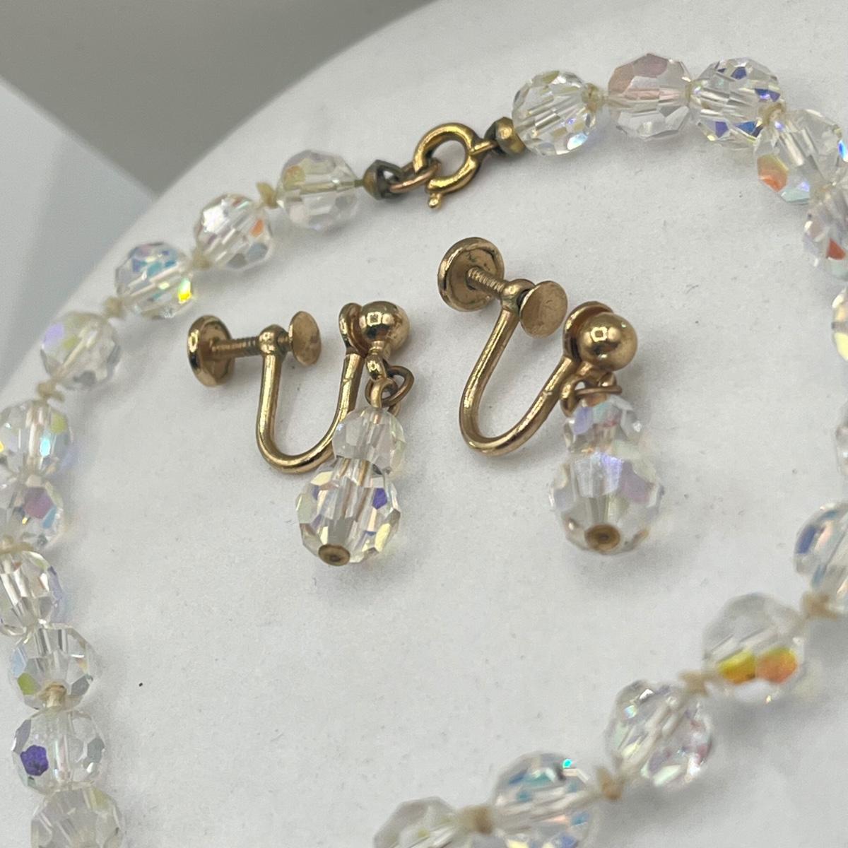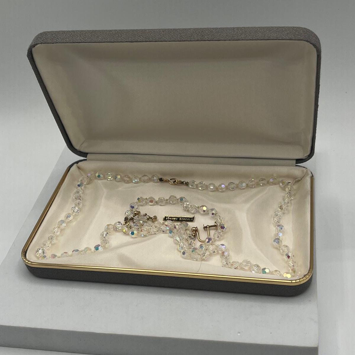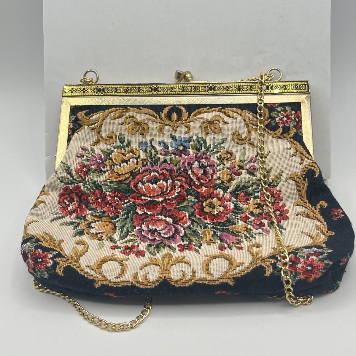 LOT 112J: Vintage Bob Mackie Crystal Top Pill Case, 1950s Petit Point Embroidered Tapestry Purse, Vintage Aurora Borealis Gold Set with Gold Filled Clasps