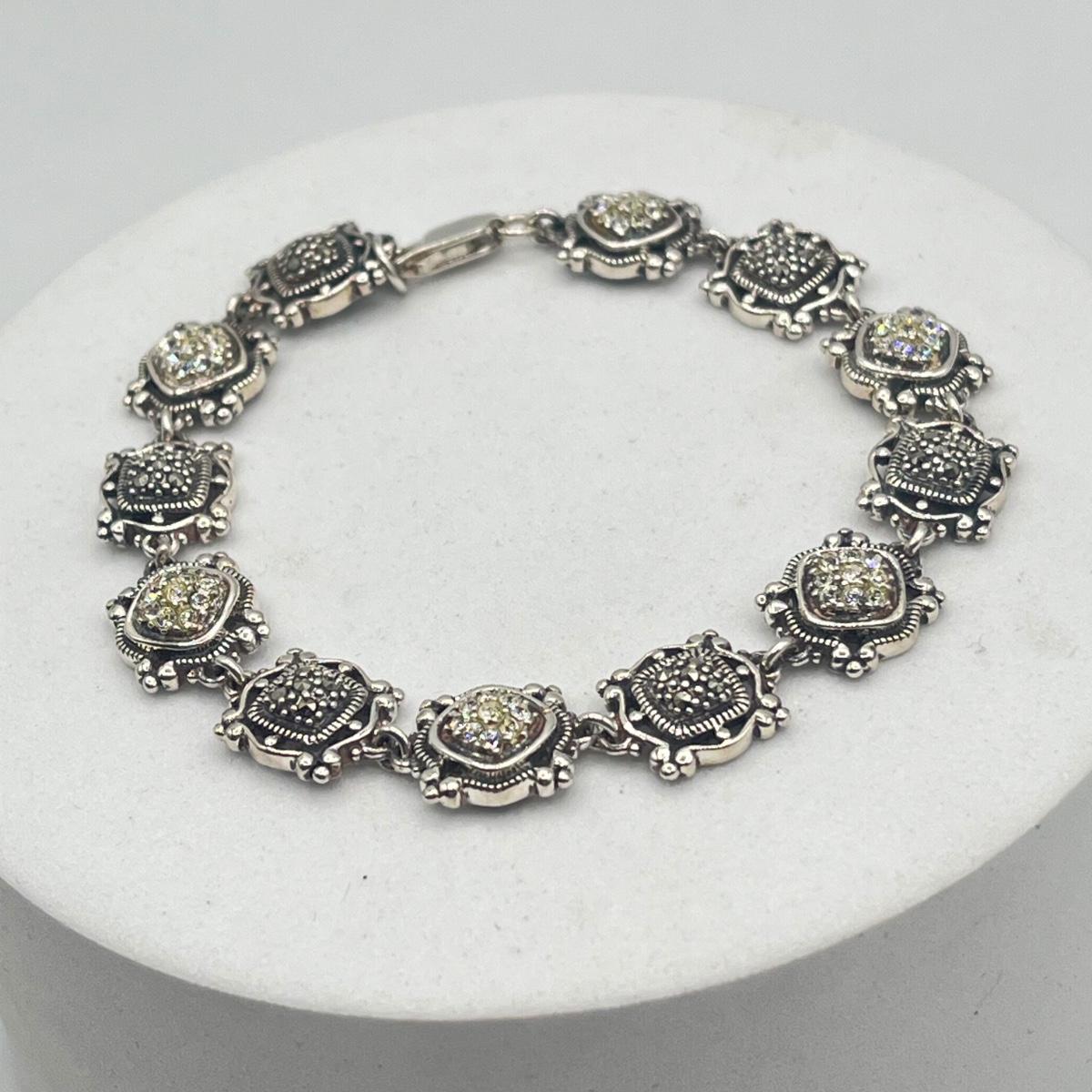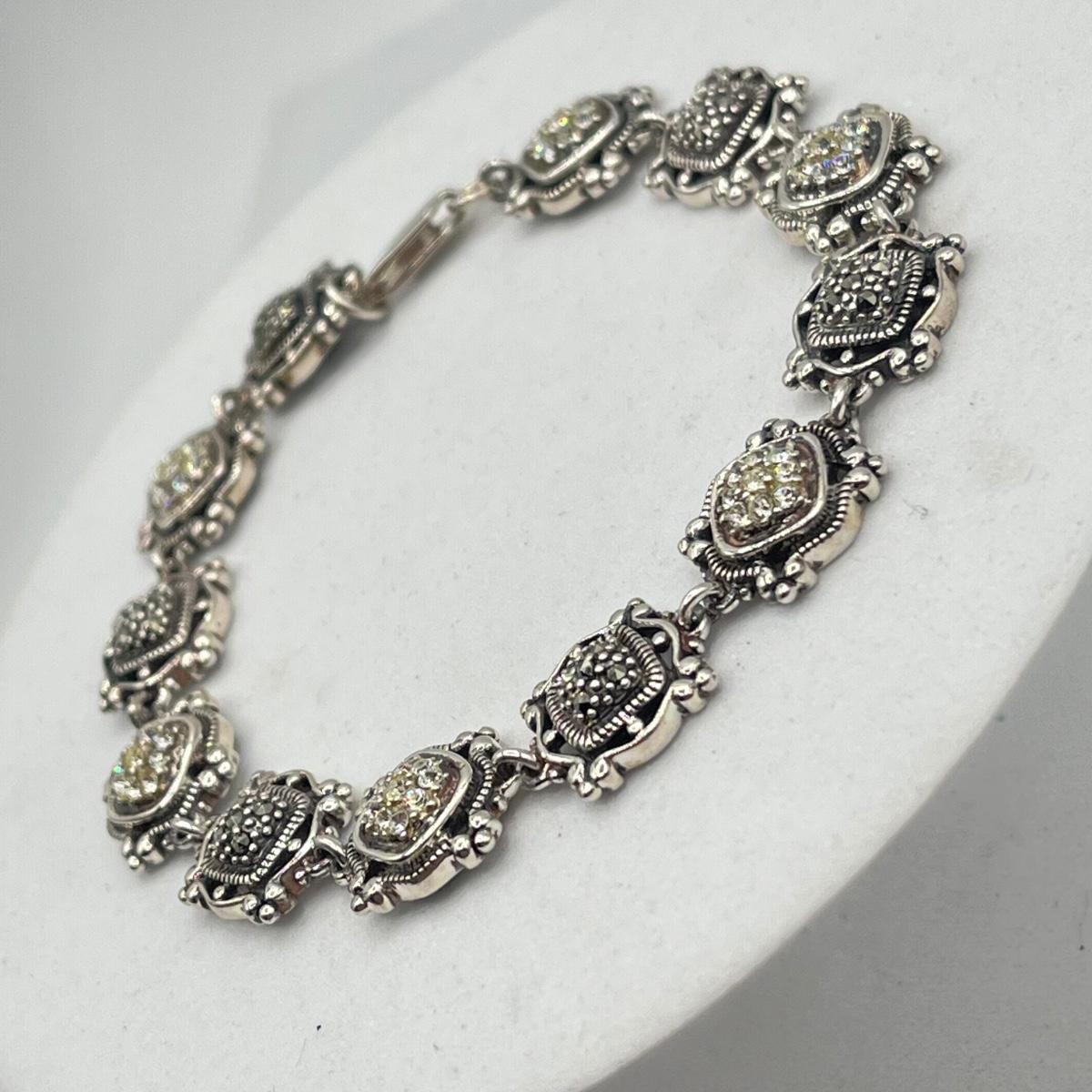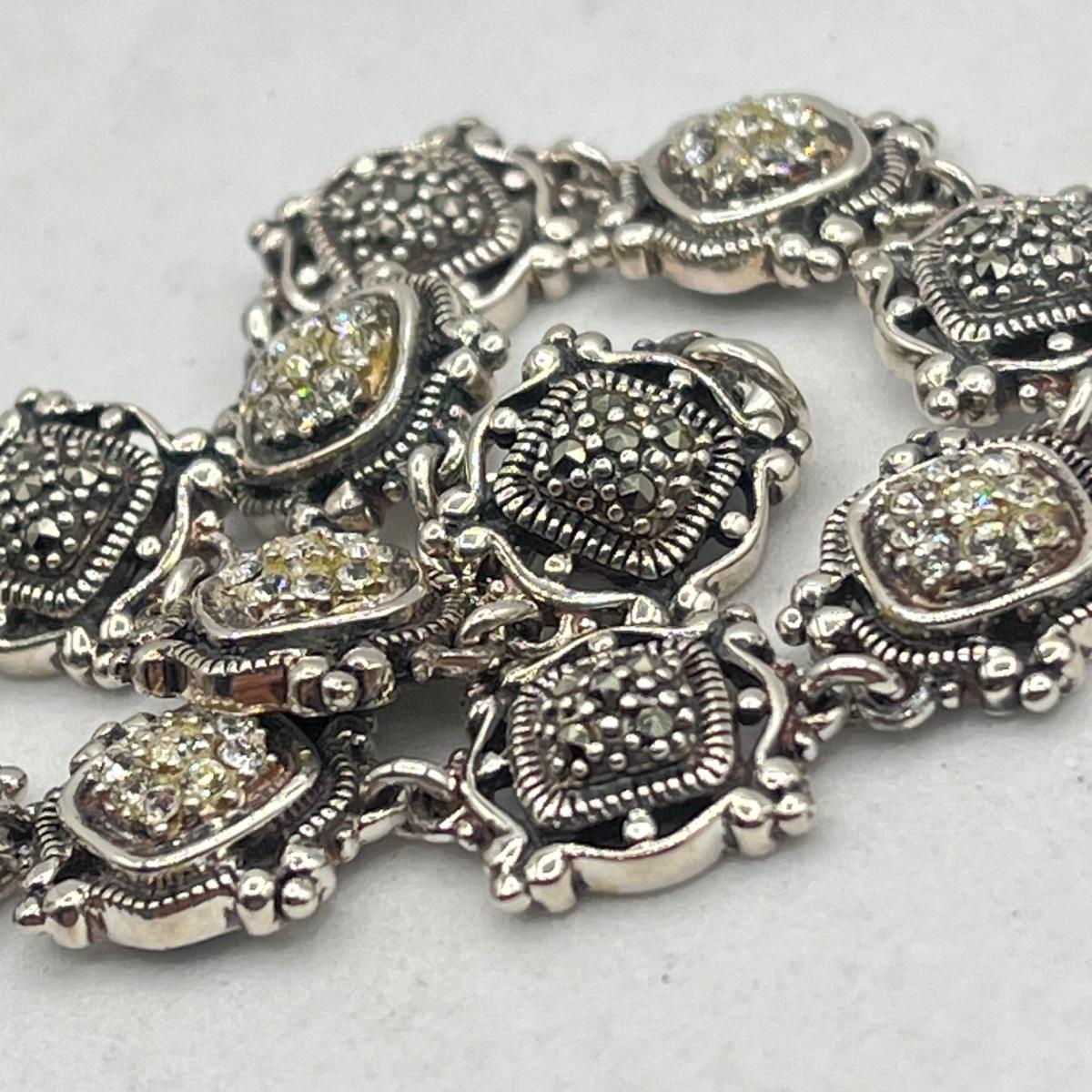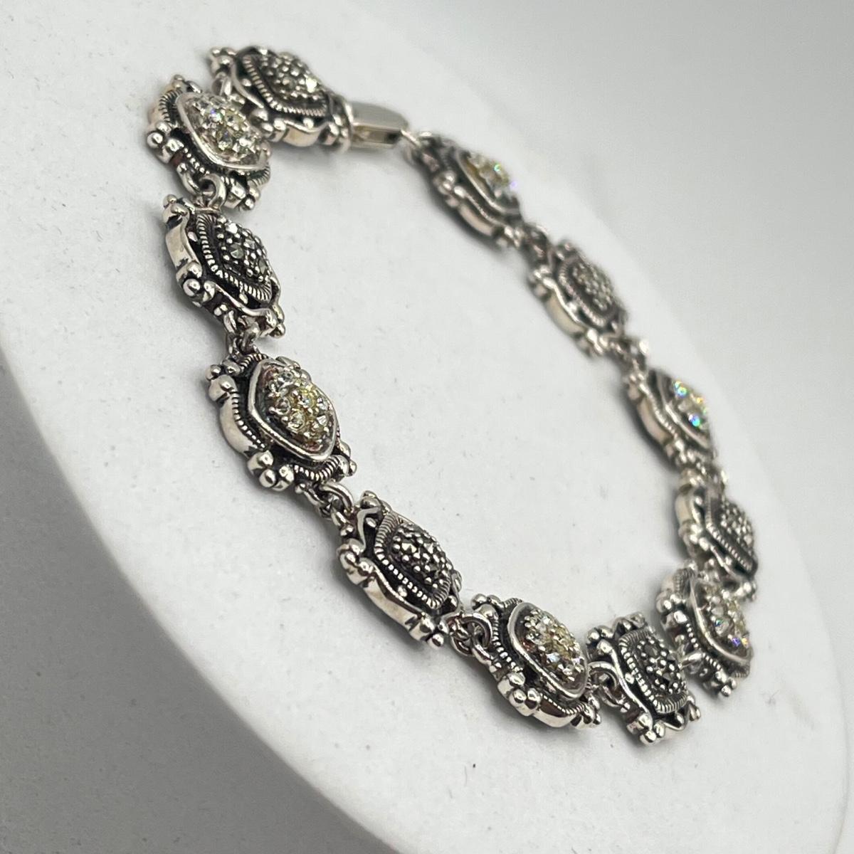 LOT 116J: Sterling Silver Marcasite & Rhinestone Bracelet - 7.5"