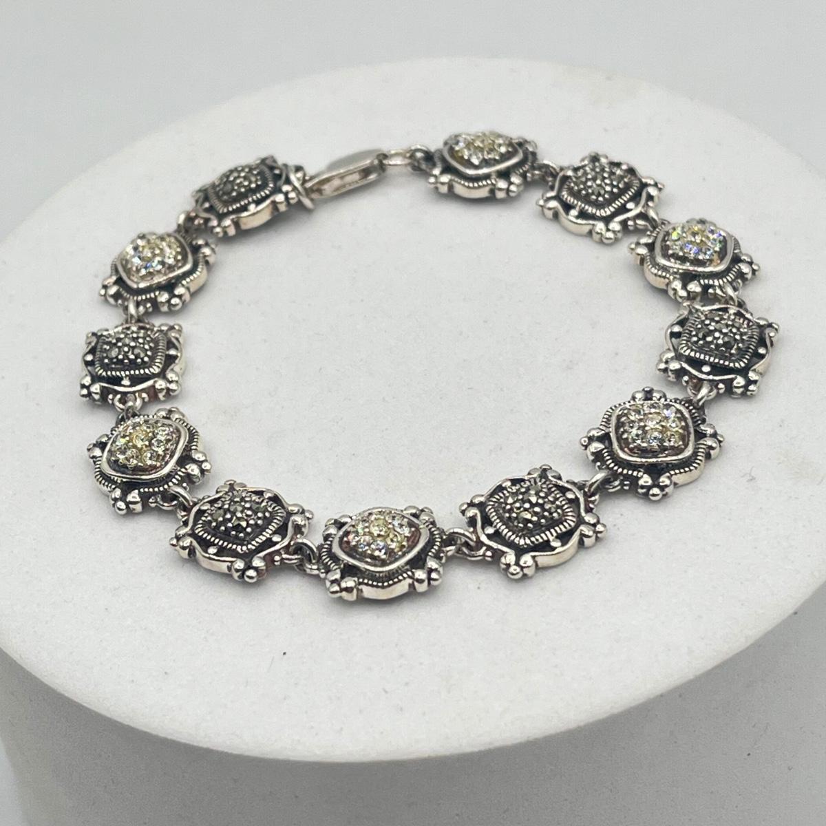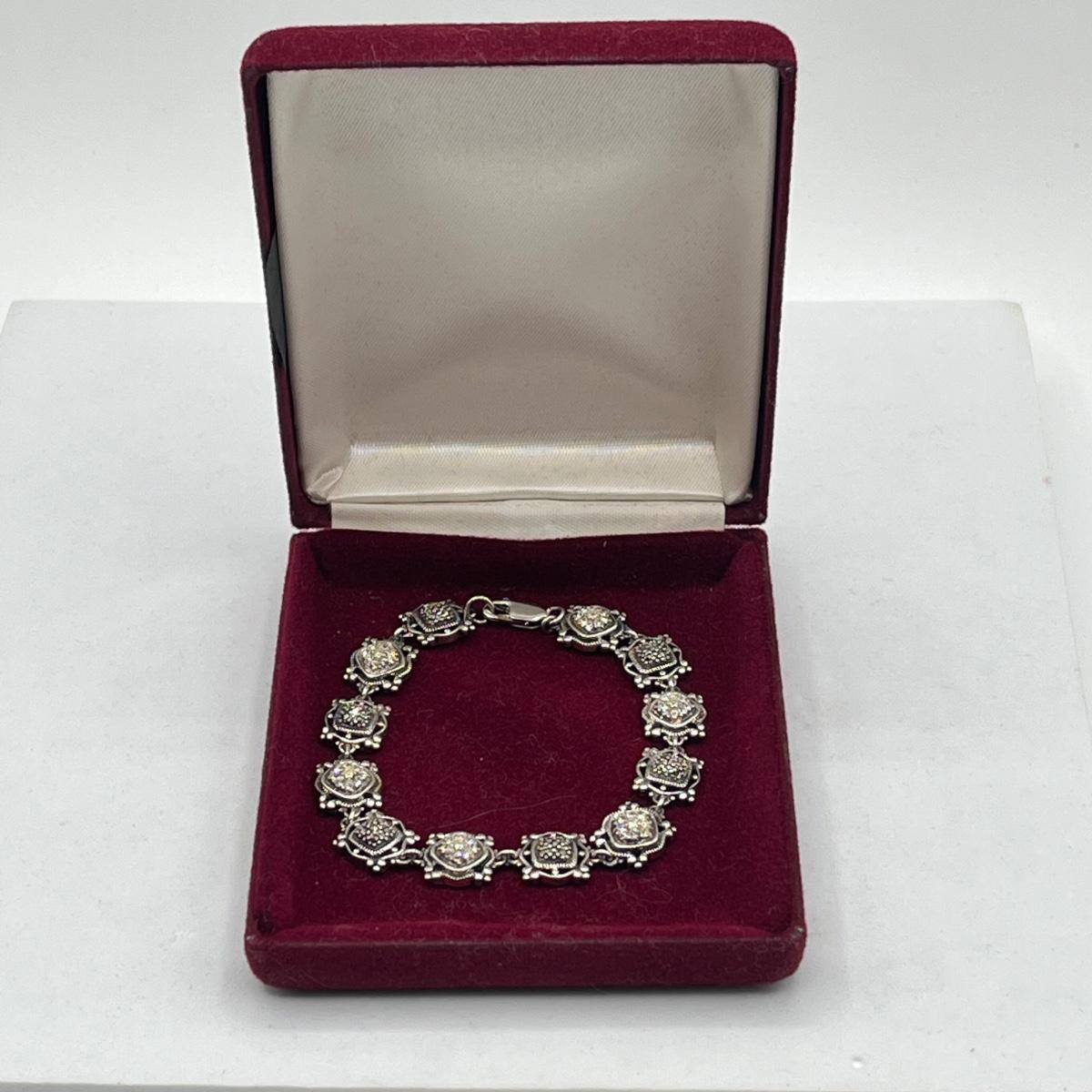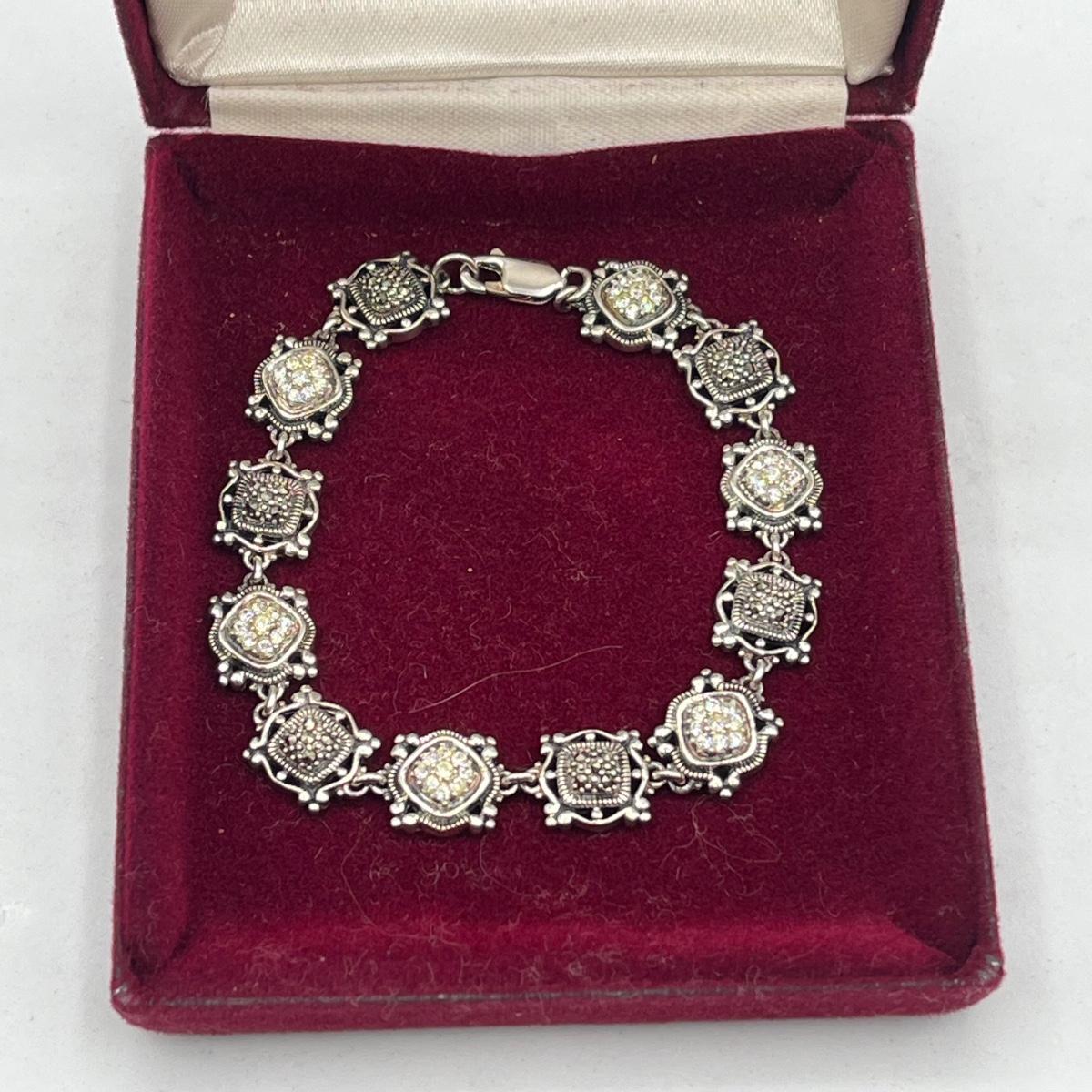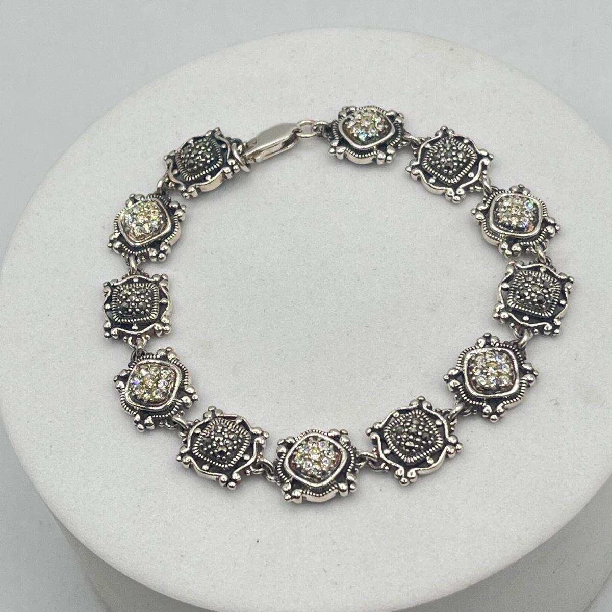LOT 116J: Sterling Silver Marcasite & Rhinestone Bracelet - 7.5"