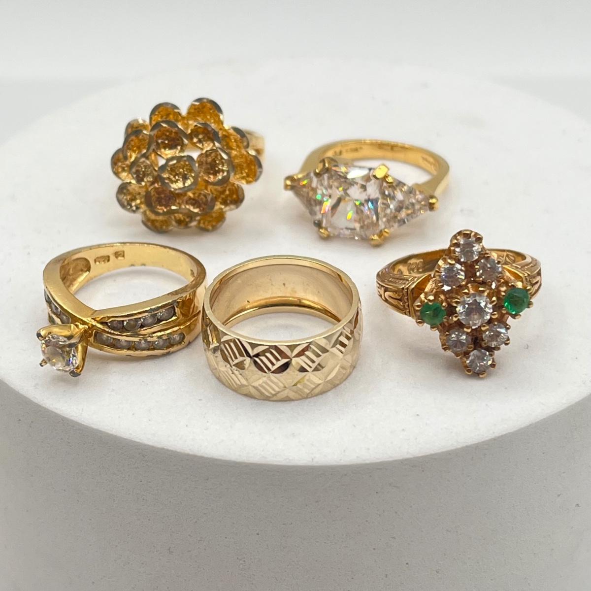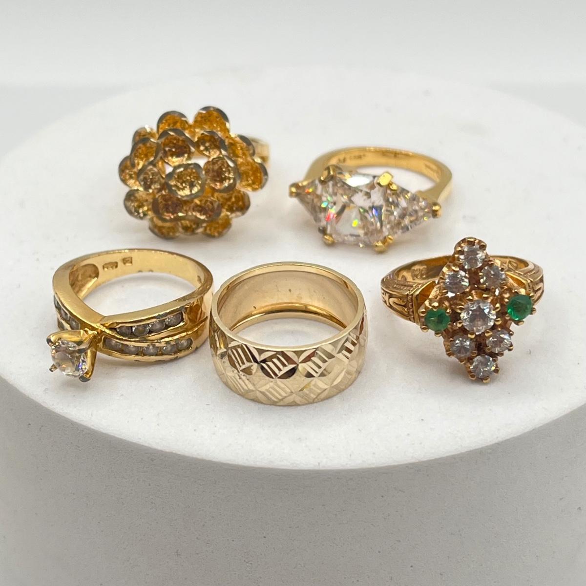 LOT 118J: Five Vintage Gold Vermeil Sterling Silver Rings - All Size 6 - 24.6 gtw