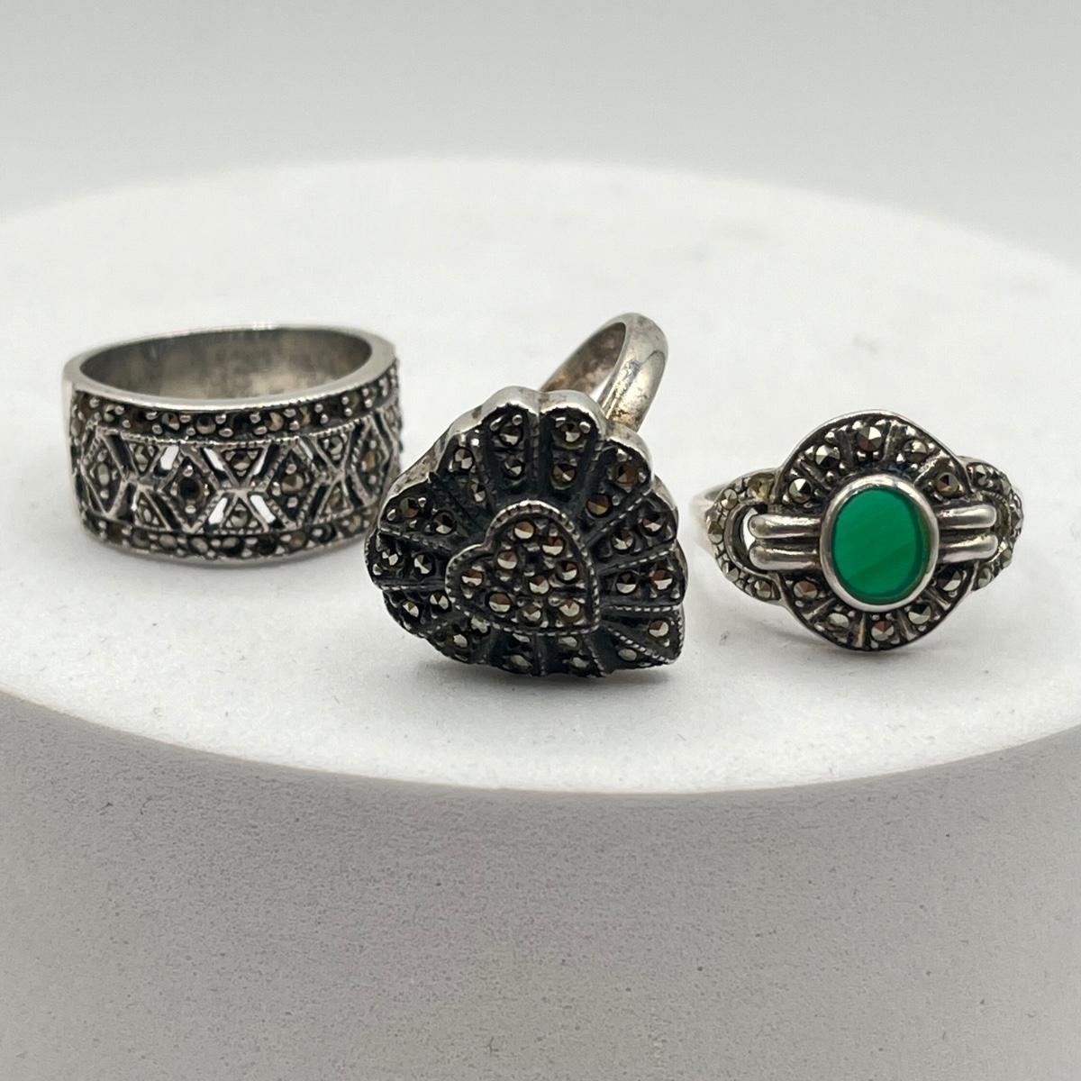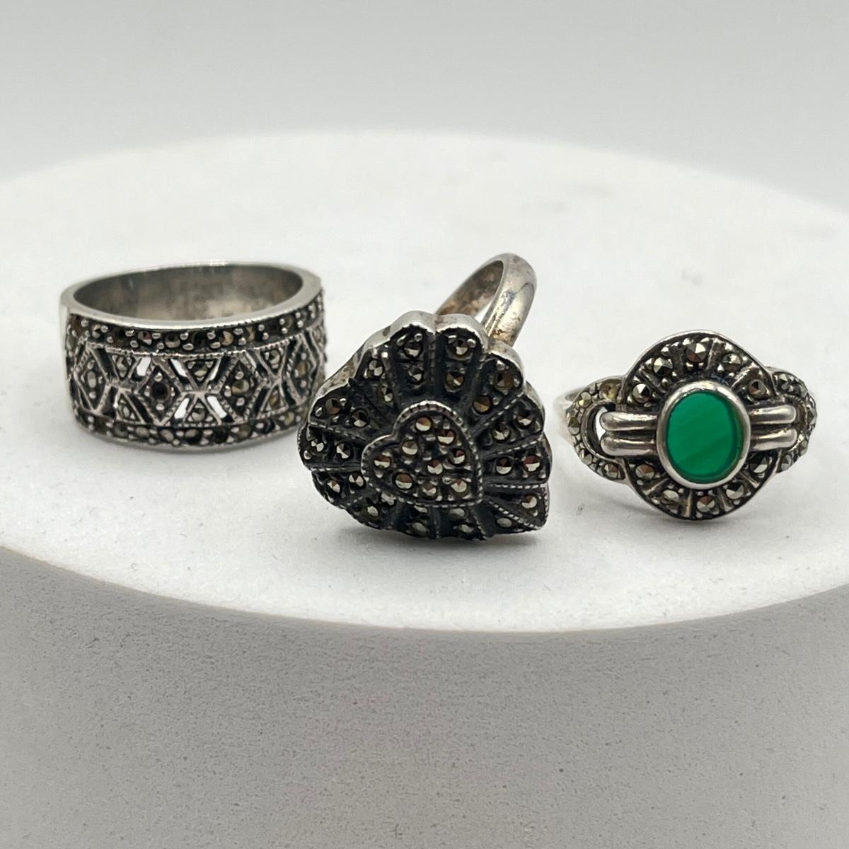 LOT 119J: Three Size 6 Sterling Silver Marcasite Rings - 14.3 gtw