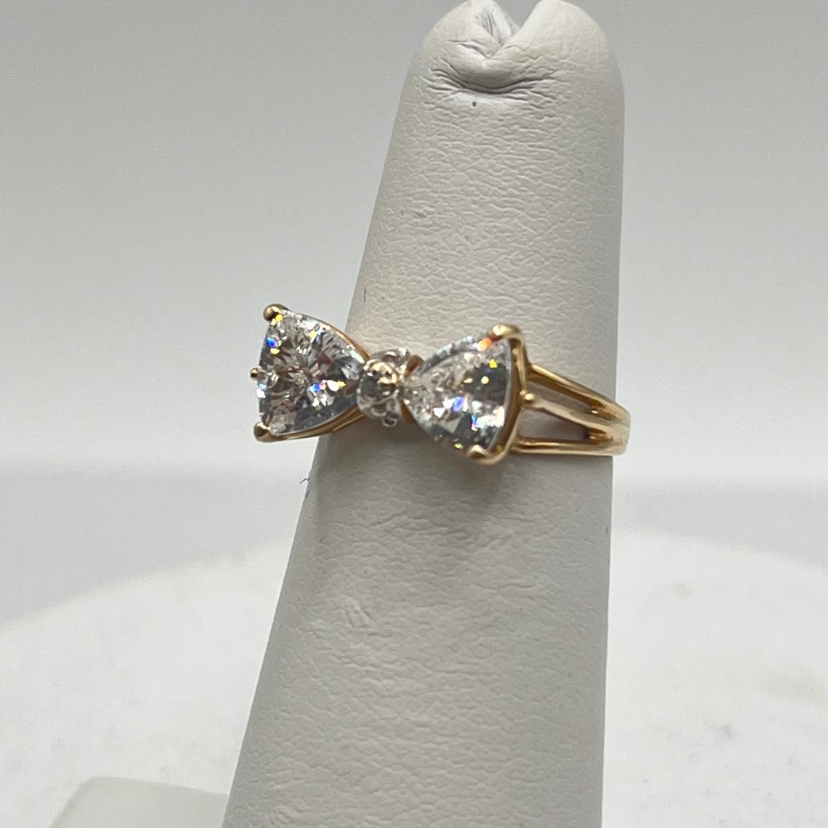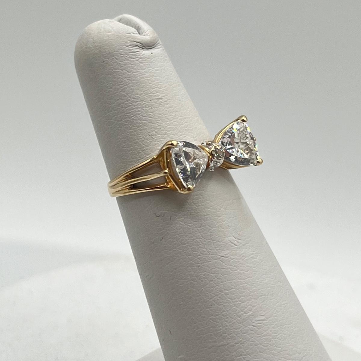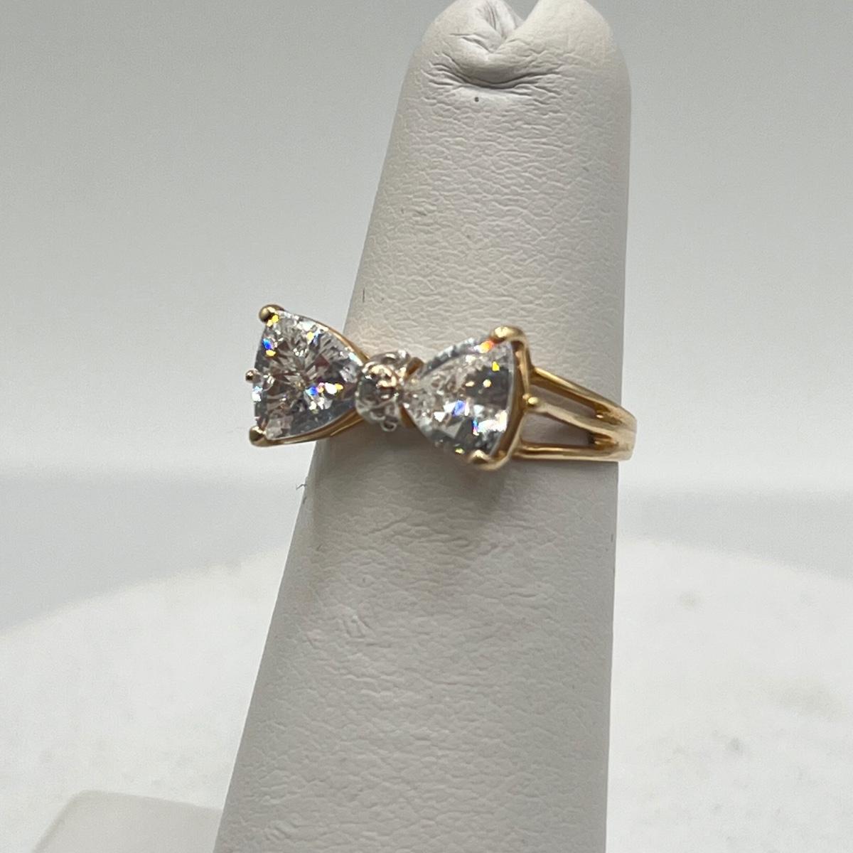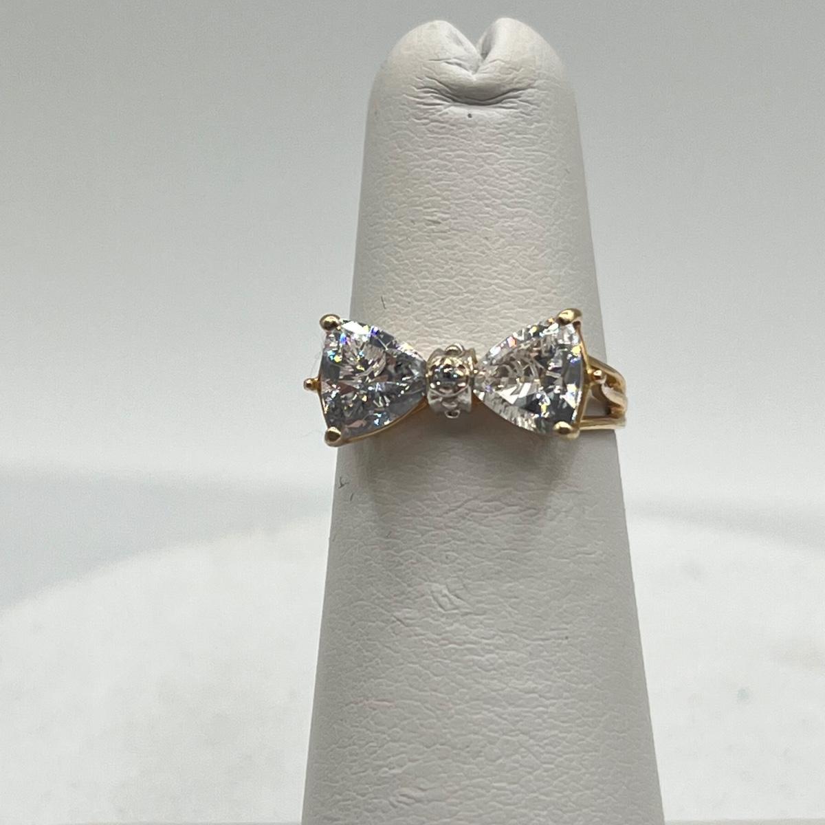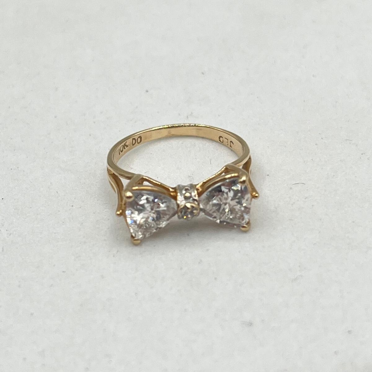 LOT 120J: 10K GOld JED Diamonique Bow Ring - Size 4 - 1.9gtw