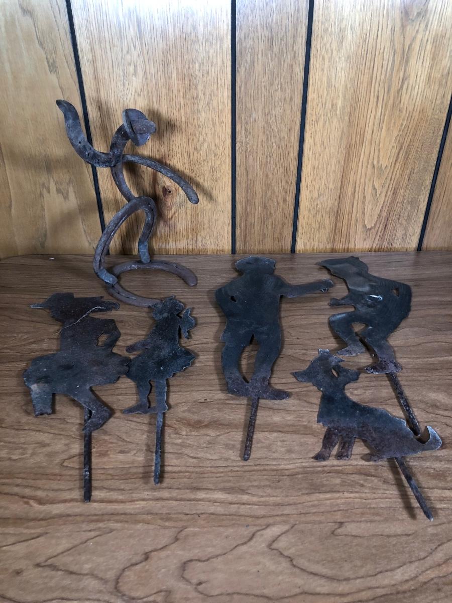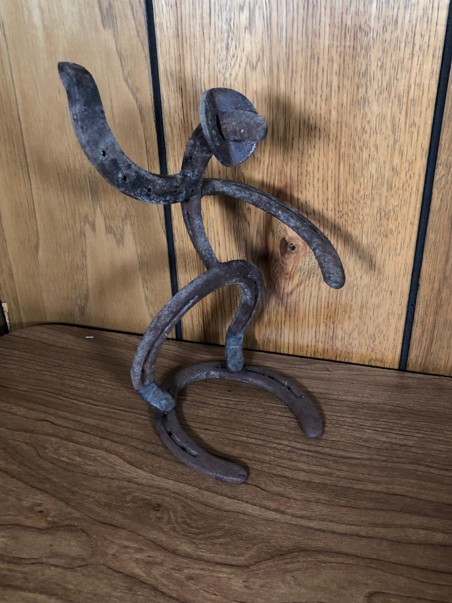LOT 123D: Vintage Metal Yard Decor & Horseshoe Sculpture