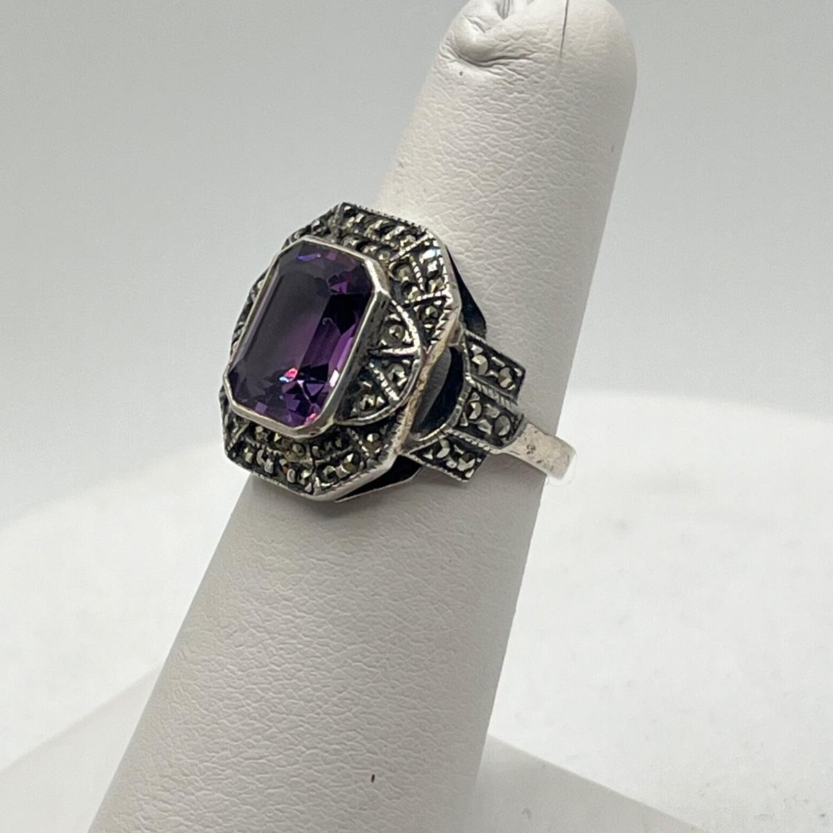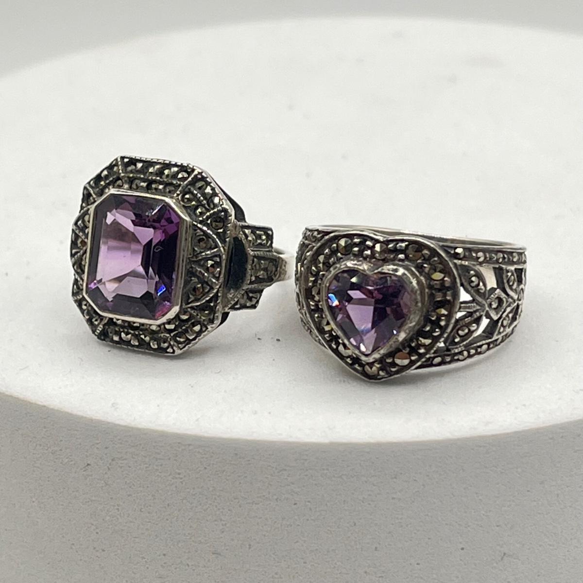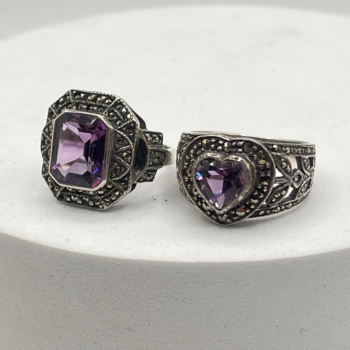 LOT 130J: Vintage Sterling Silver Marcasite & Amethyst Rings