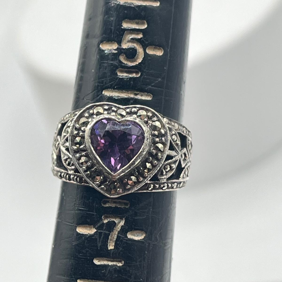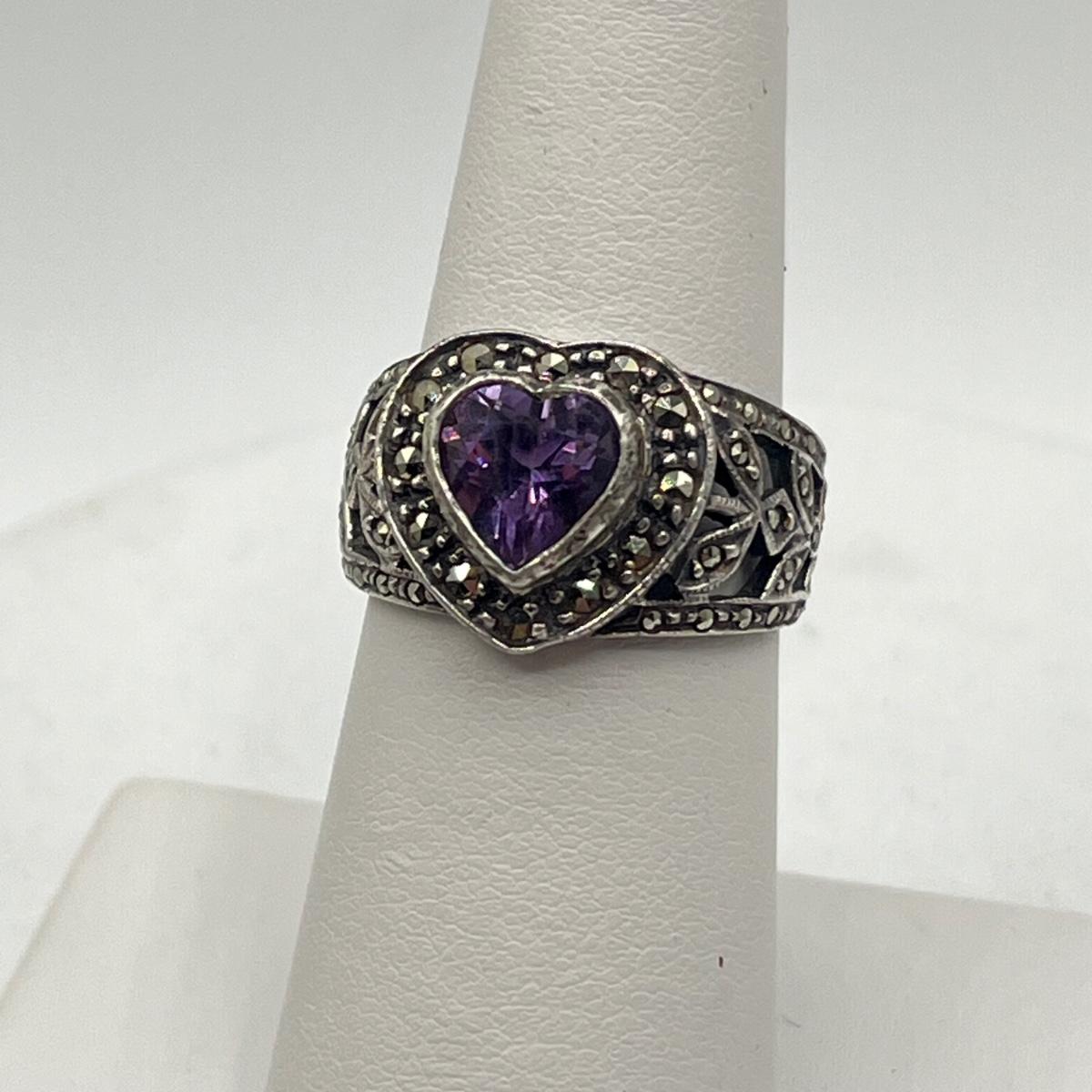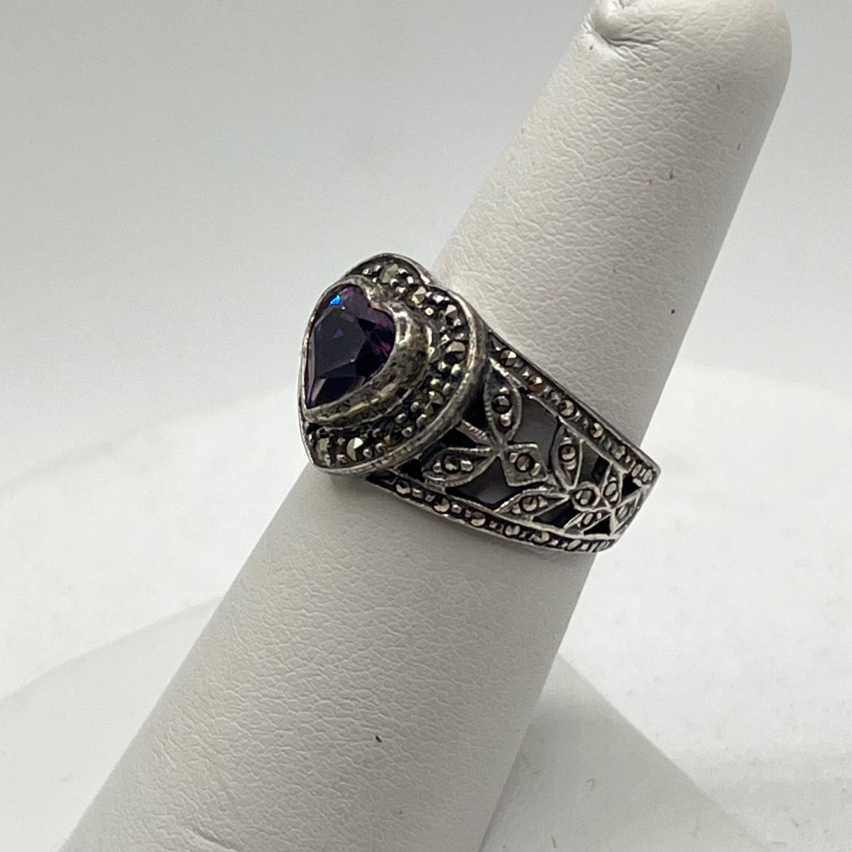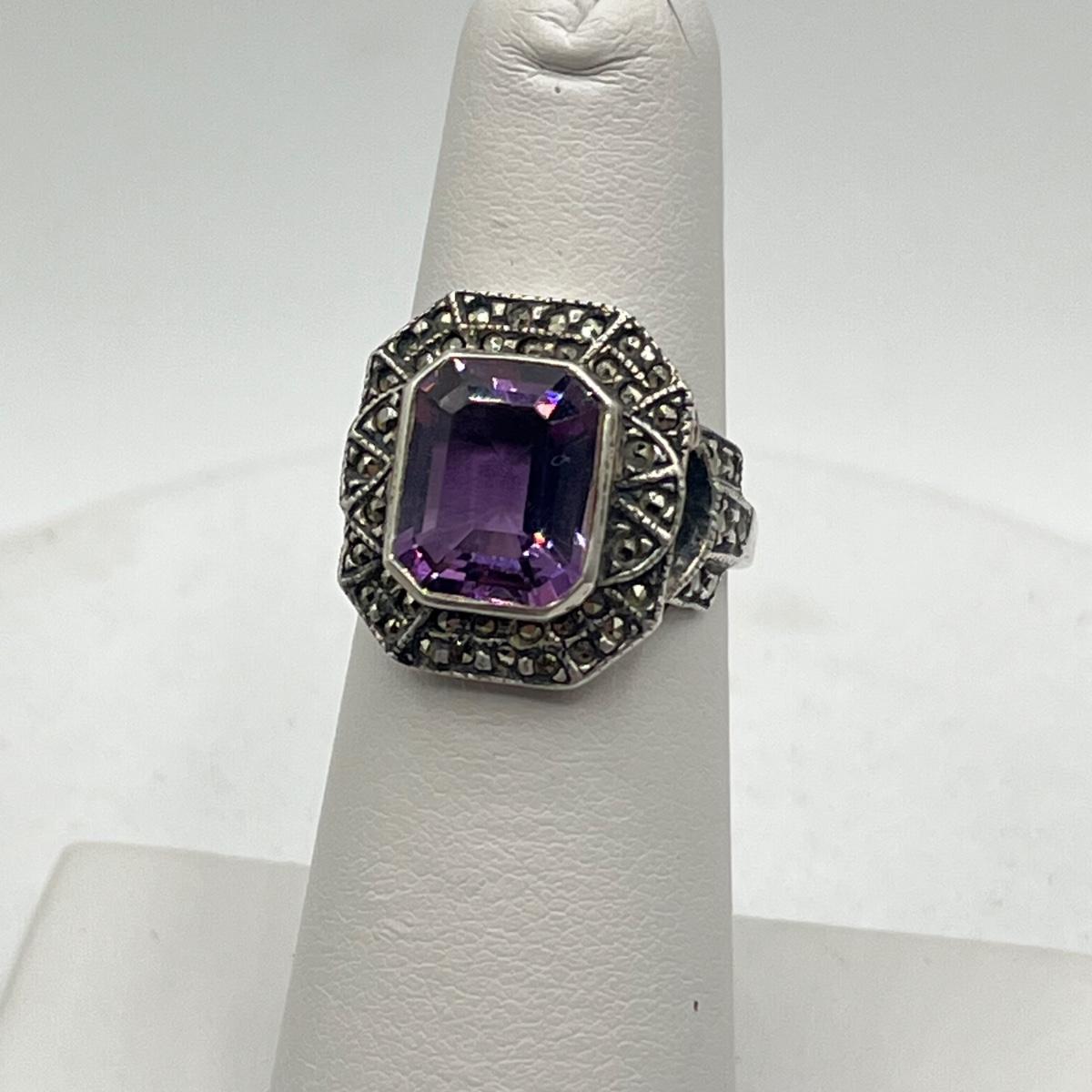 LOT 130J: Vintage Sterling Silver Marcasite & Amethyst Rings