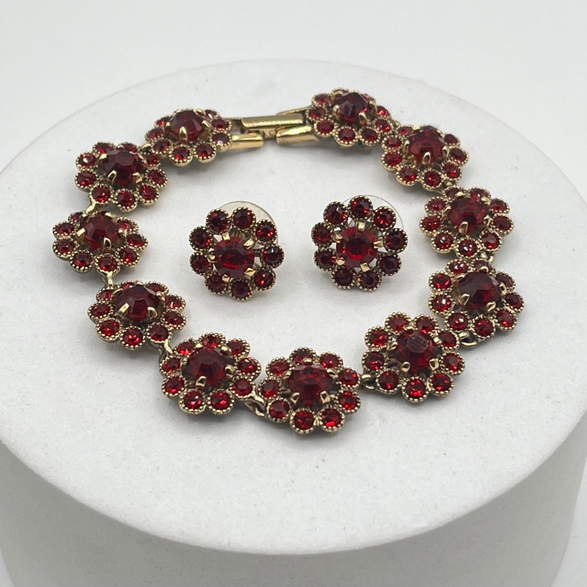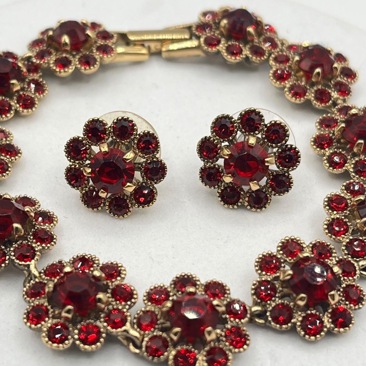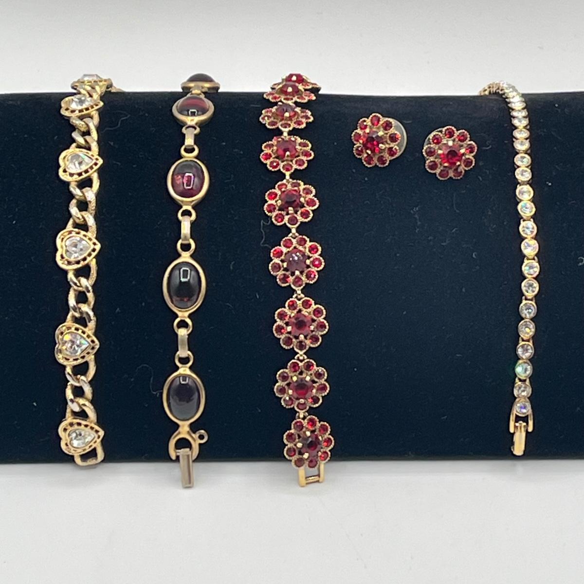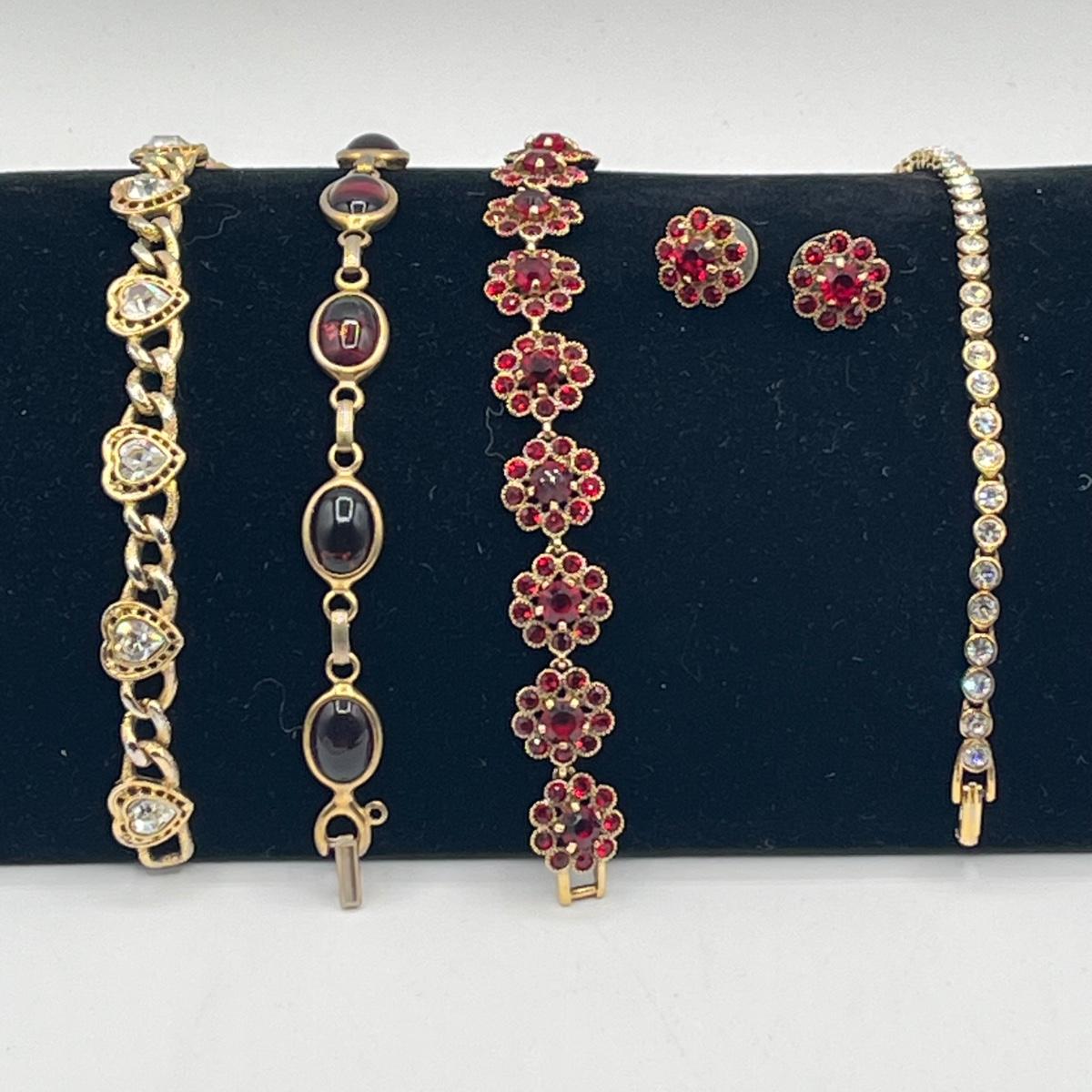 LOT 140J: Link Bracelet Lot - Faux Garnet w/ Matching Earrings and More