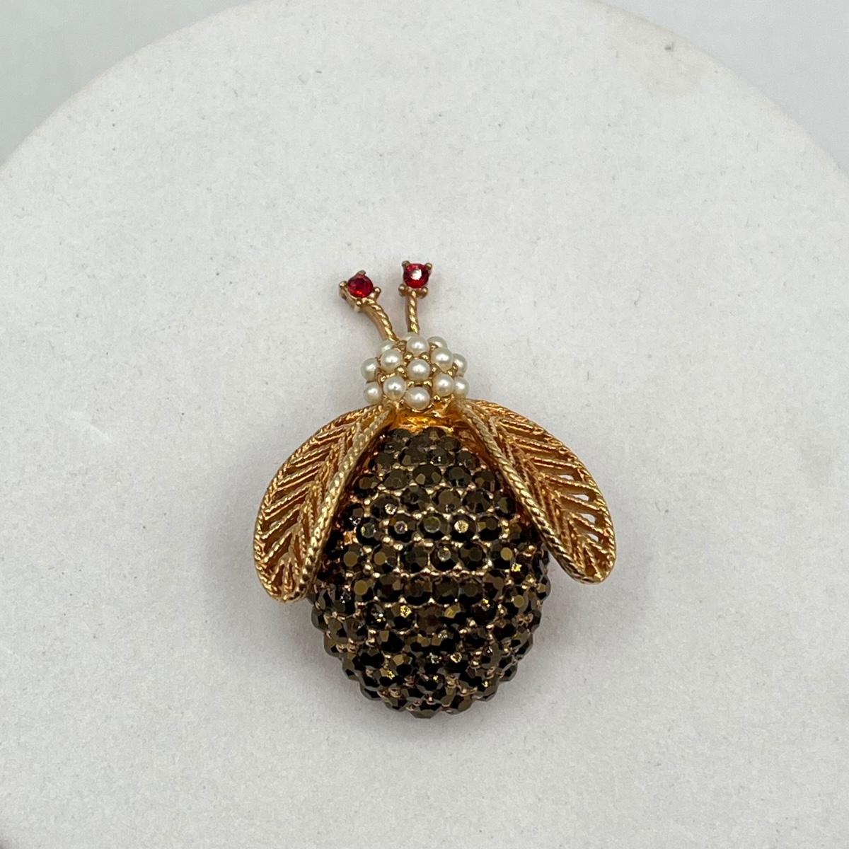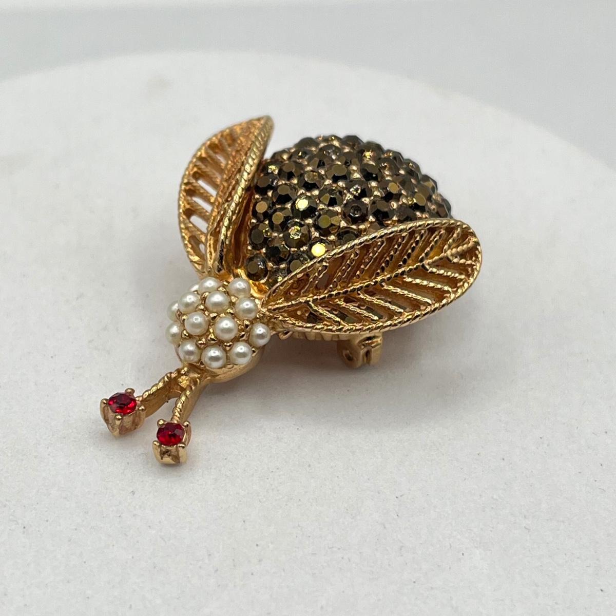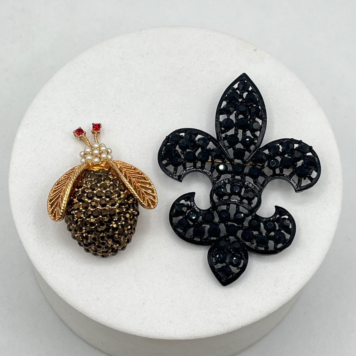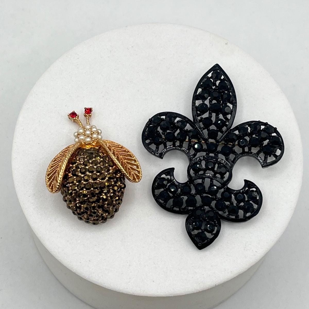 LOT 145J: Vintage 50s - 60s Brooches - Black Crystal Fleur de Lis, Tura Bug Made for Christian Dior