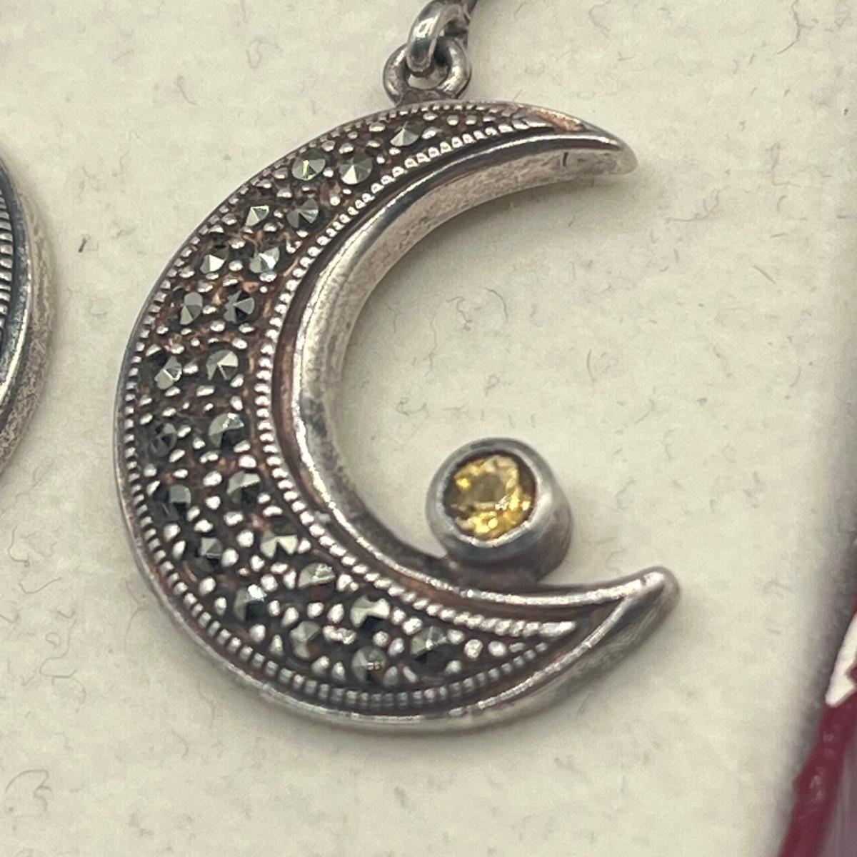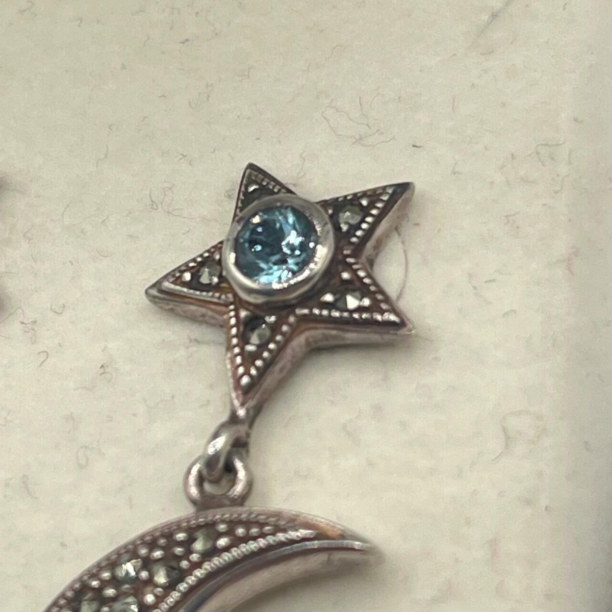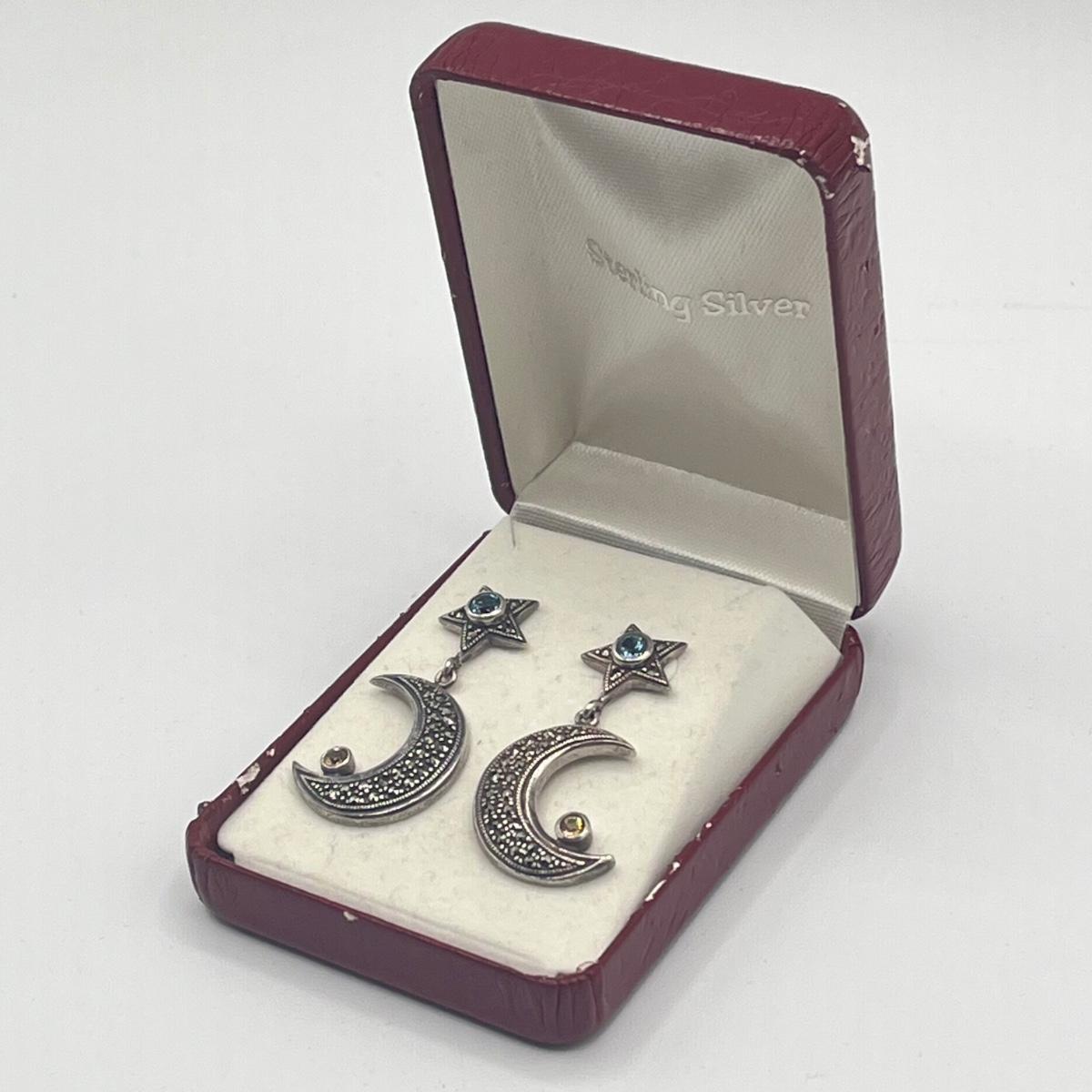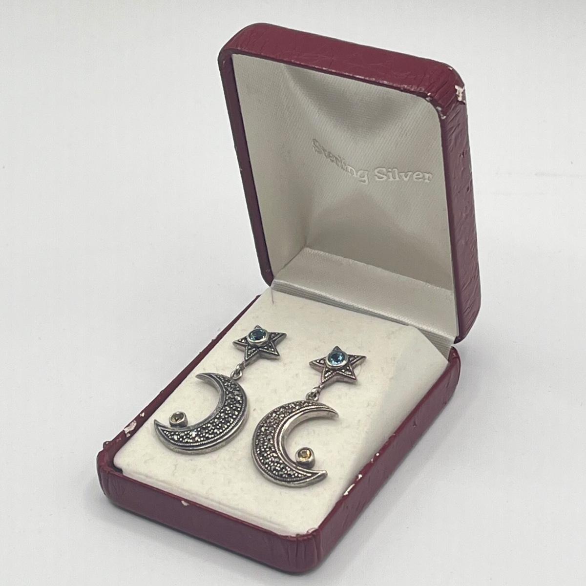 LOT 154J: Vintage Sterling Silver Marcasite, Citrine and Blue Topaz Moon and Star Earrings