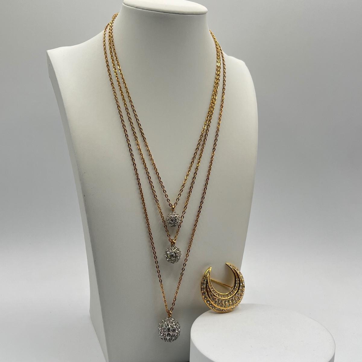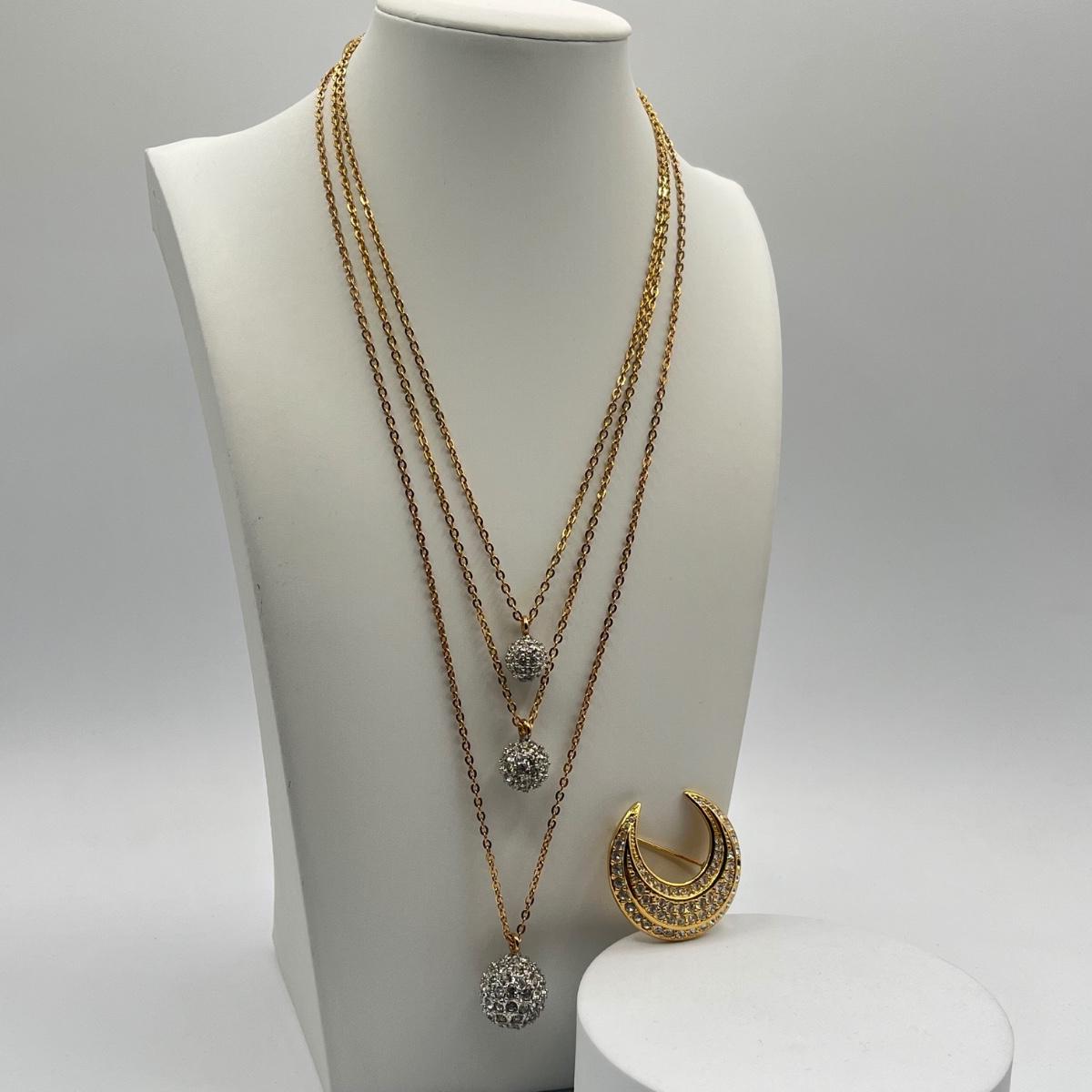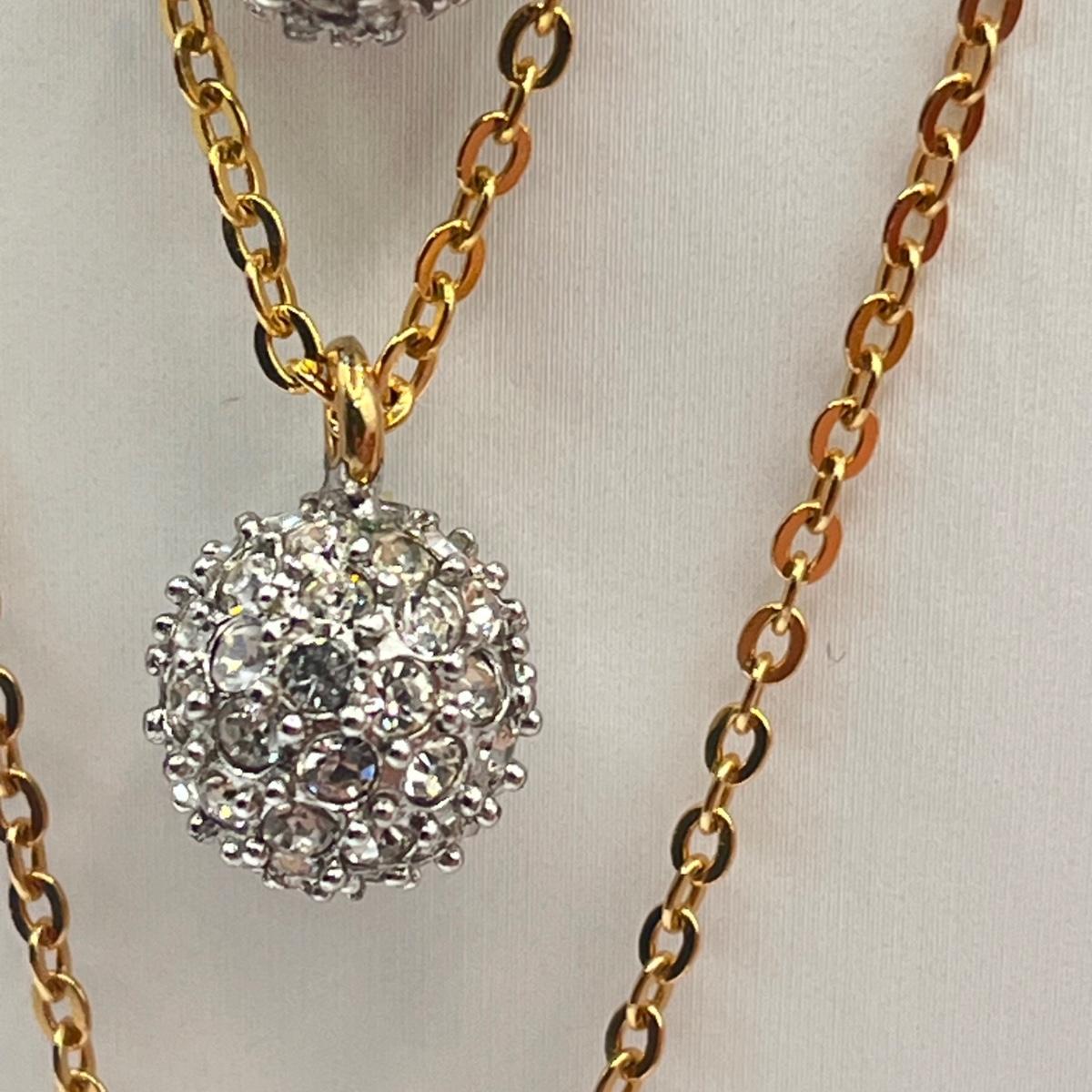 LOT 155J: Joan Rivers 3 Necklace Set - 20", 24", and 30" - with Disco Ball Pendants Plus Joan Rivers Brooch