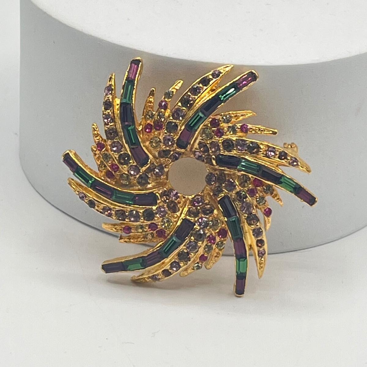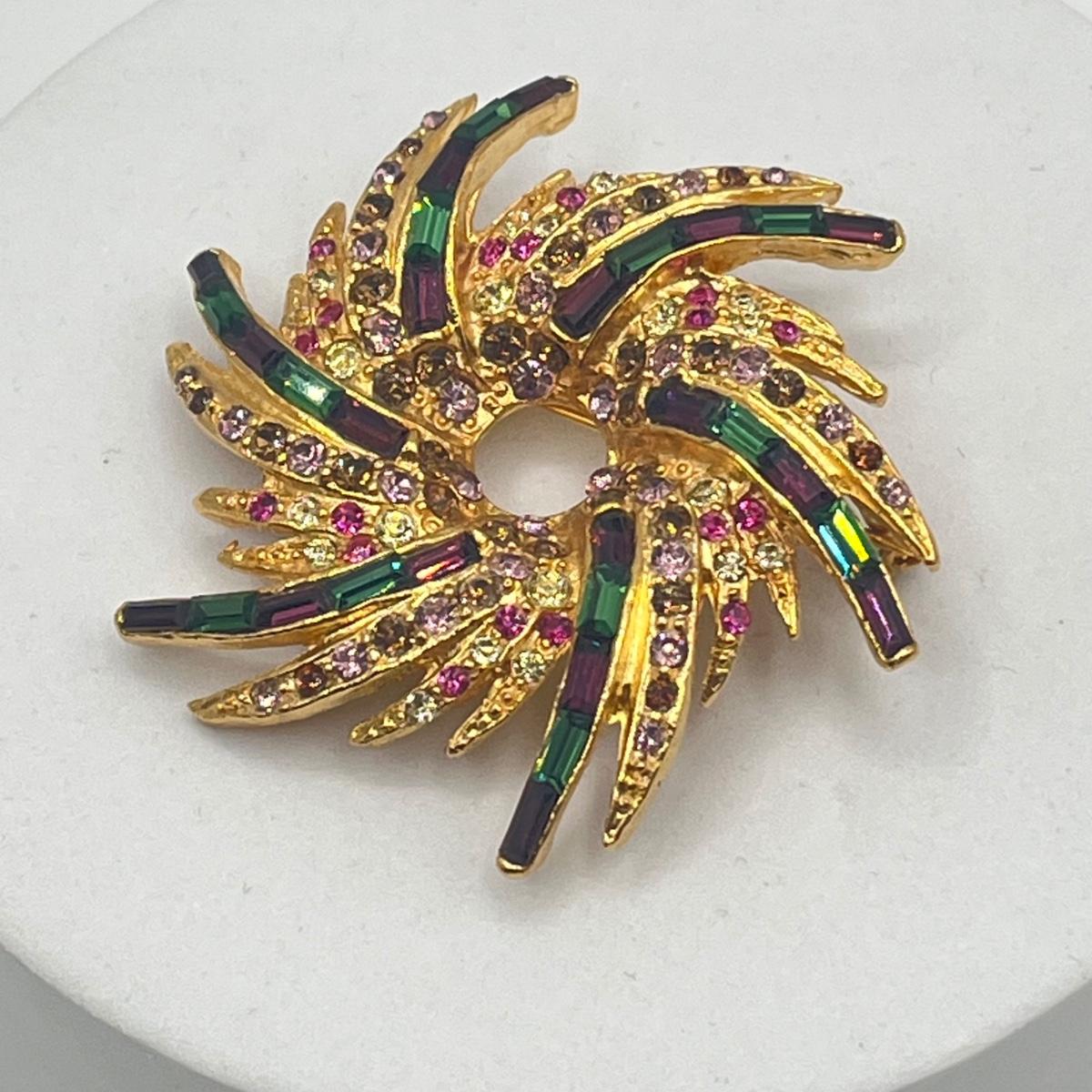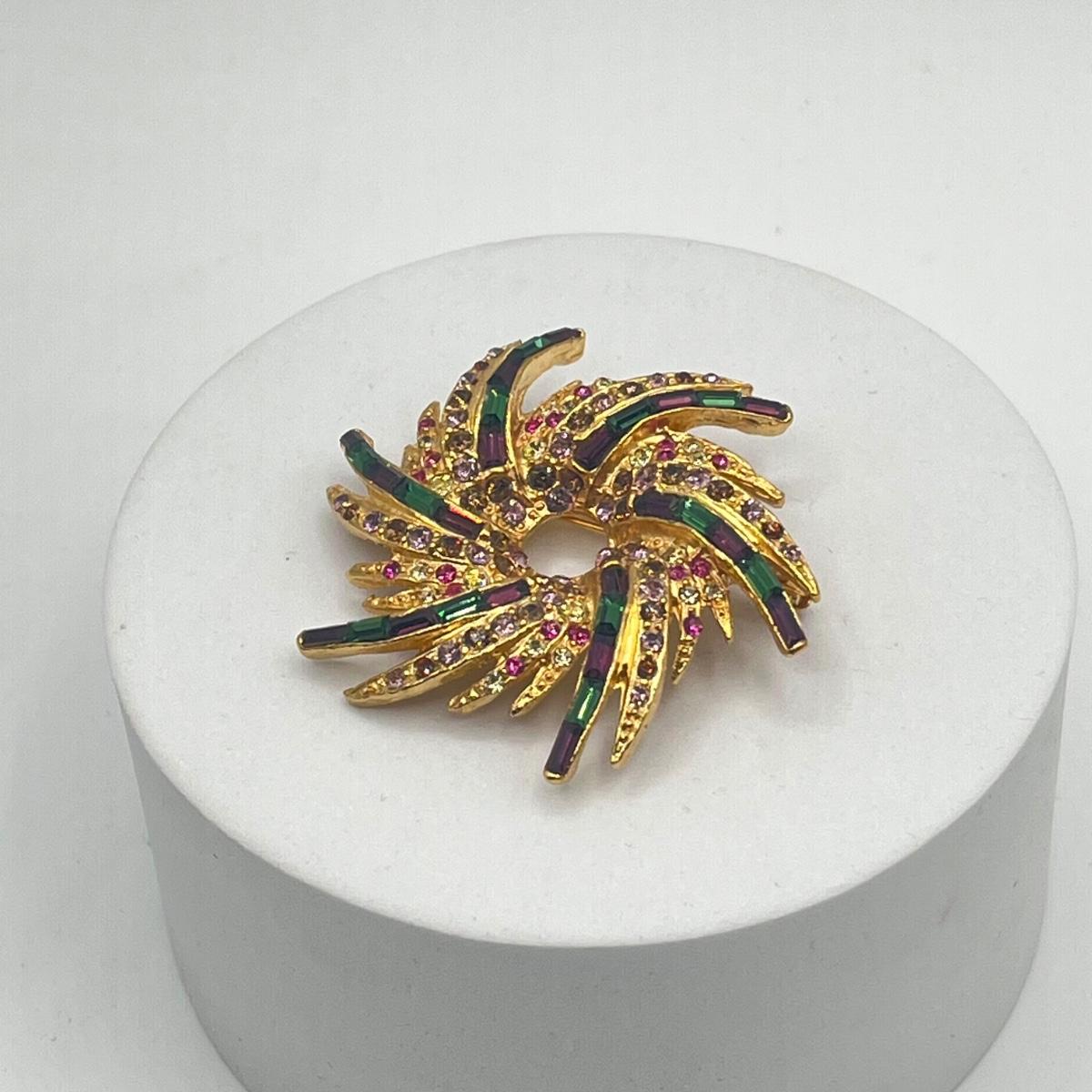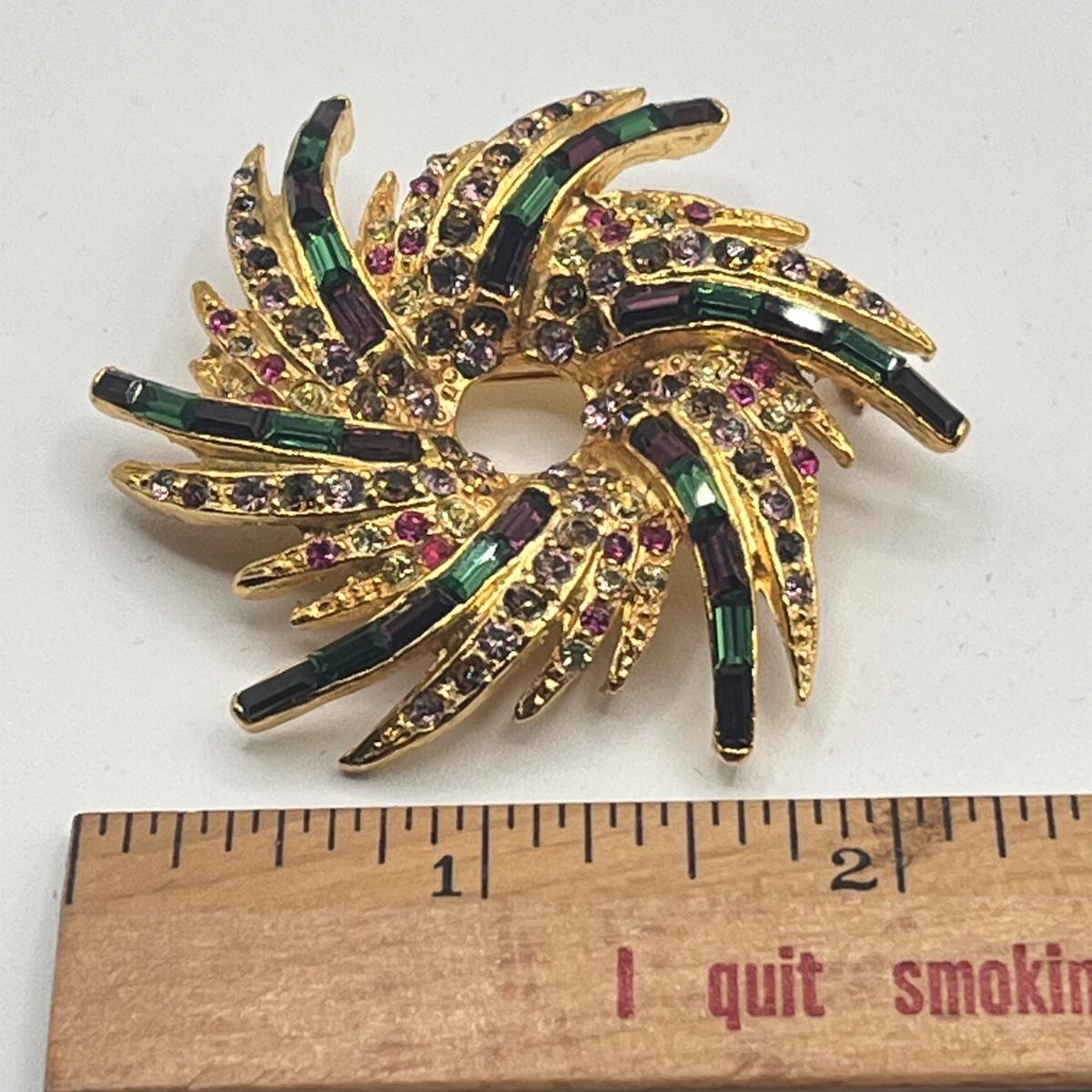 LOT 156J: Mid Century 1960s-70s Multicolor Rhinestone Pinwheel Pell Brooch