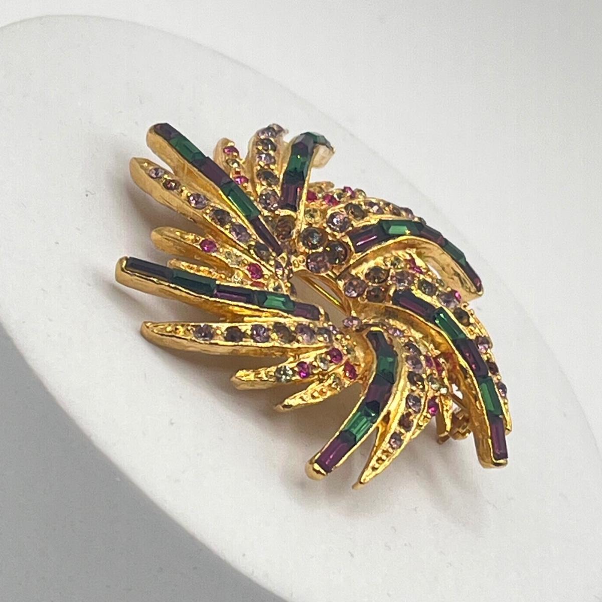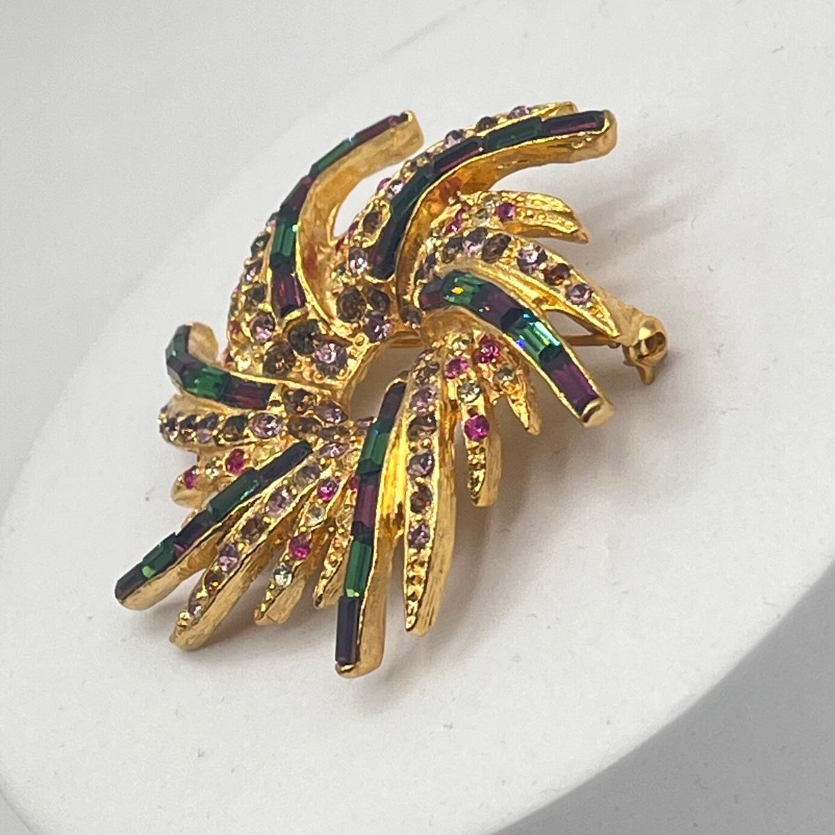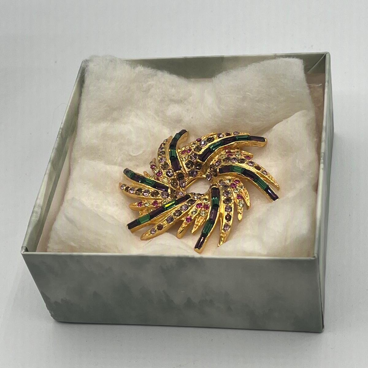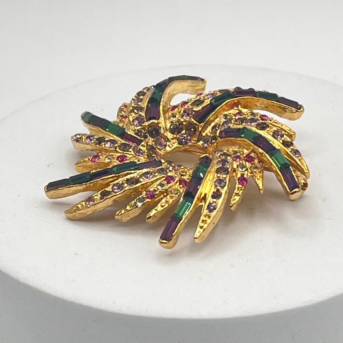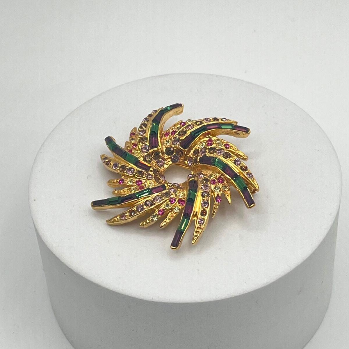 LOT 156J: Mid Century 1960s-70s Multicolor Rhinestone Pinwheel Pell Brooch