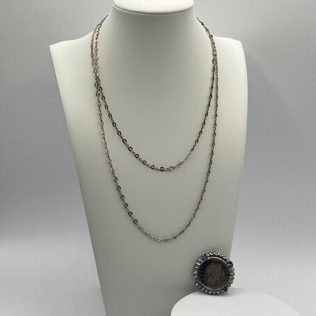 LOT 157J: Sterling Silver American West 36" Necklace Plus 1899 Barber Silver Half Dollar Pendant
