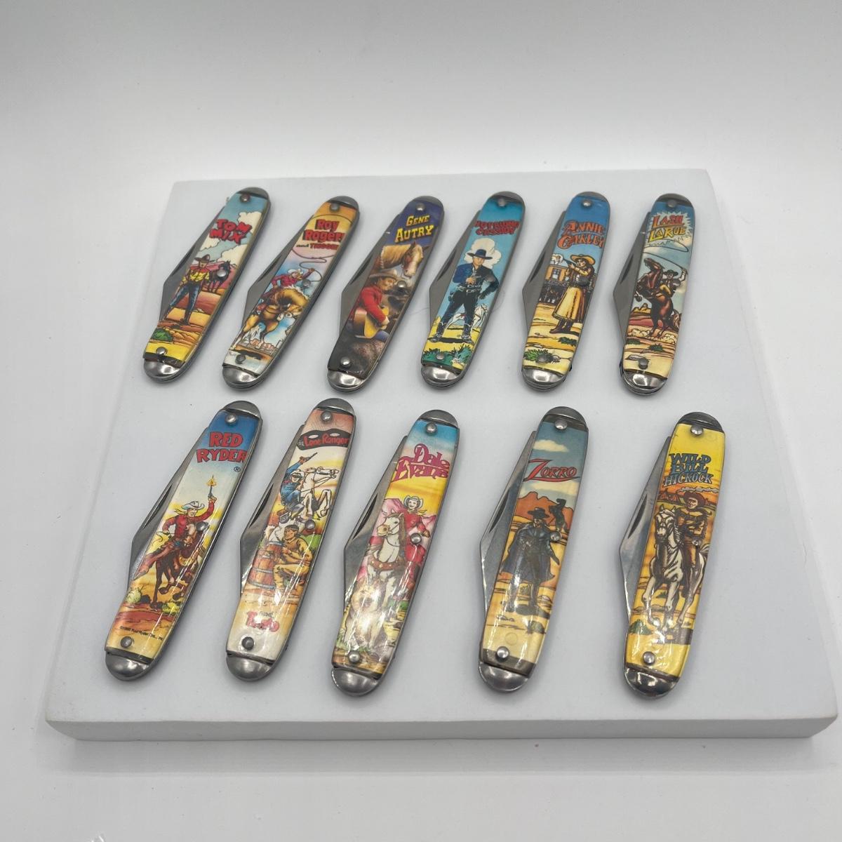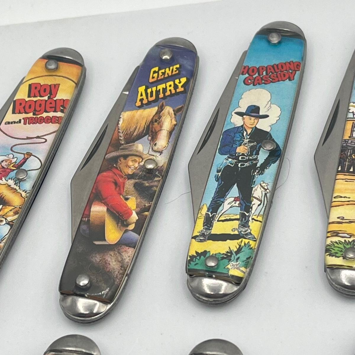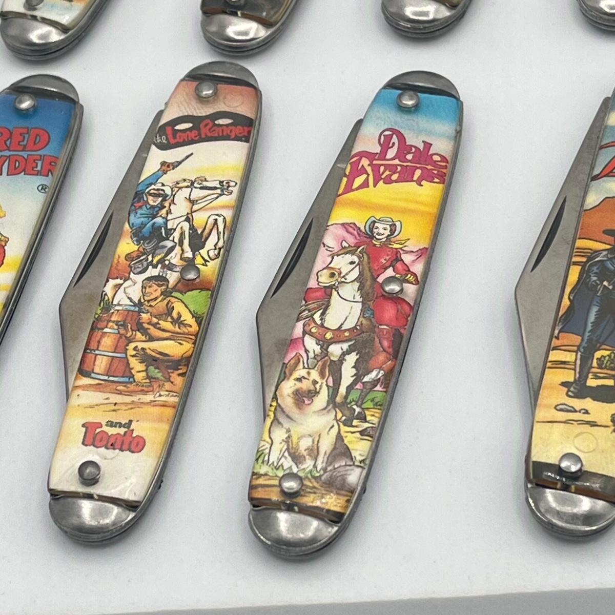 LOT 160J: Vintage Novelty Knife Co. Western Cowboy Themed Pocket Knives (11) Lone Ranger, Roy Rogers, Gene Autry and More