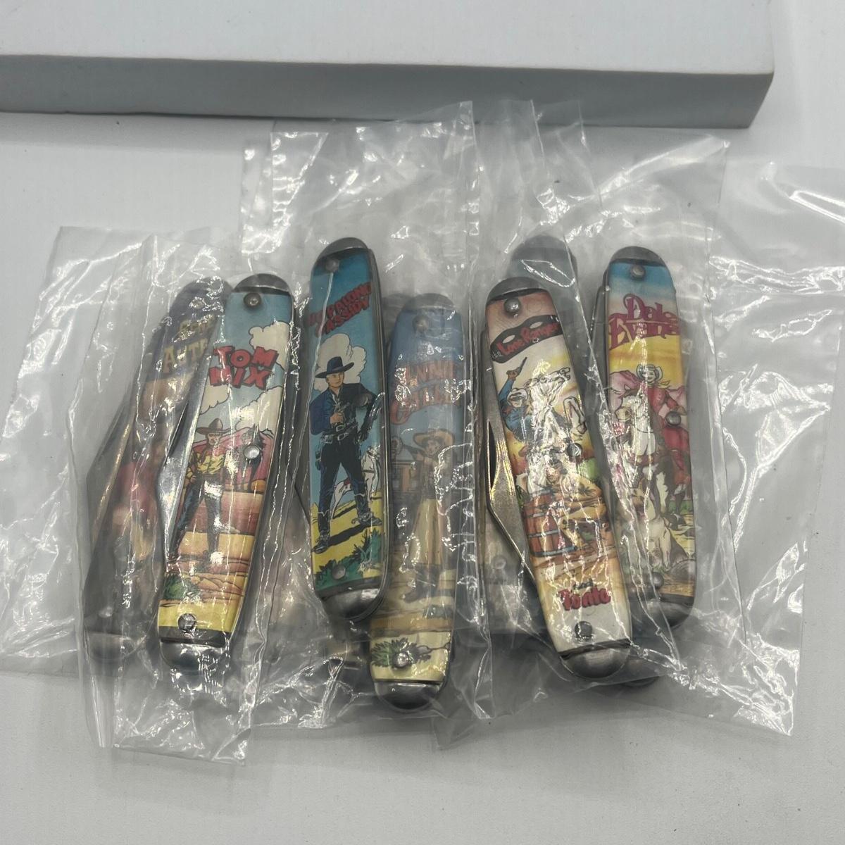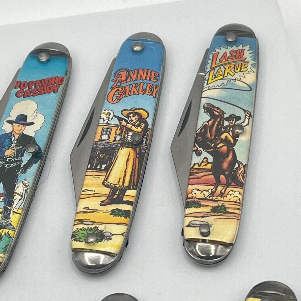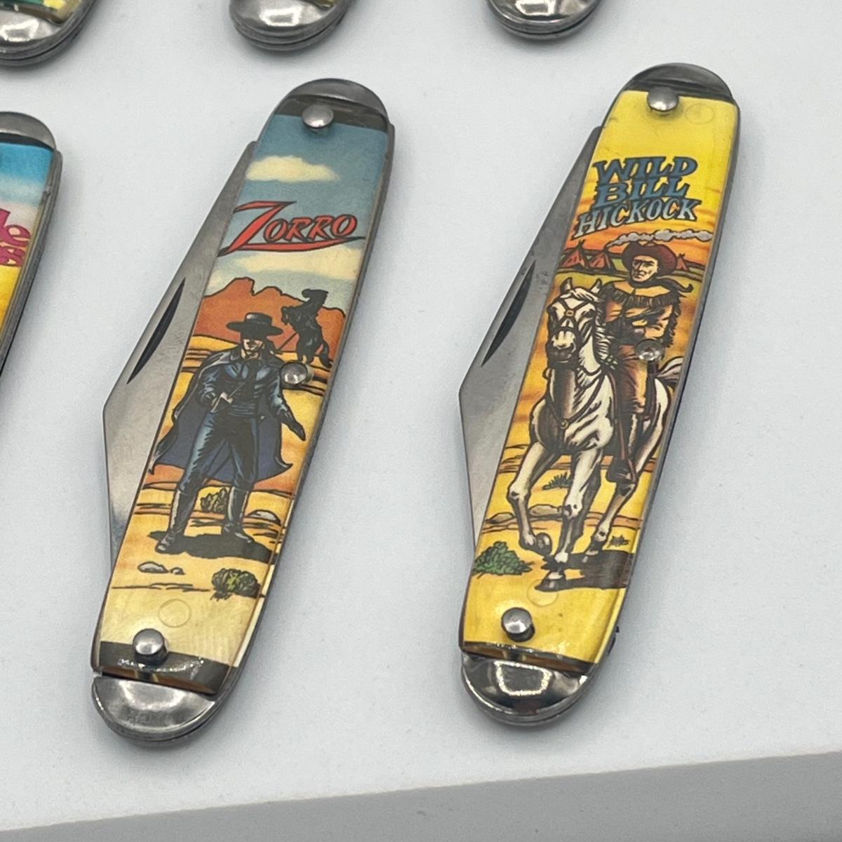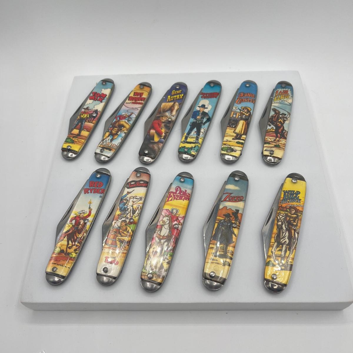 LOT 160J: Vintage Novelty Knife Co. Western Cowboy Themed Pocket Knives (11) Lone Ranger, Roy Rogers, Gene Autry and More