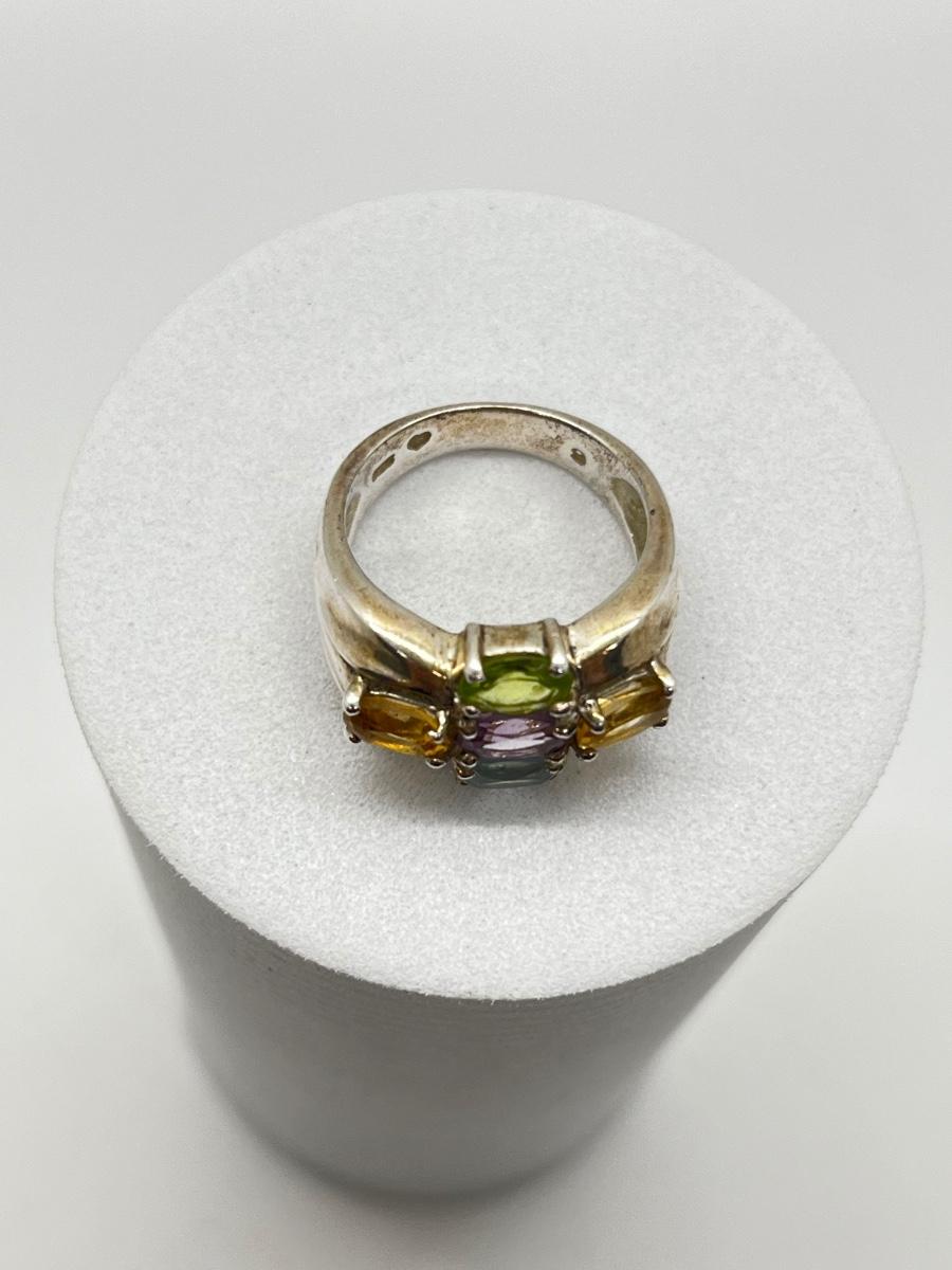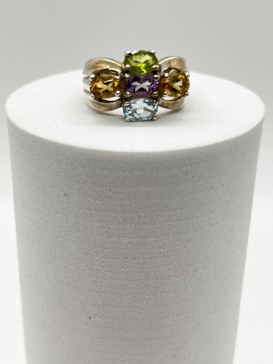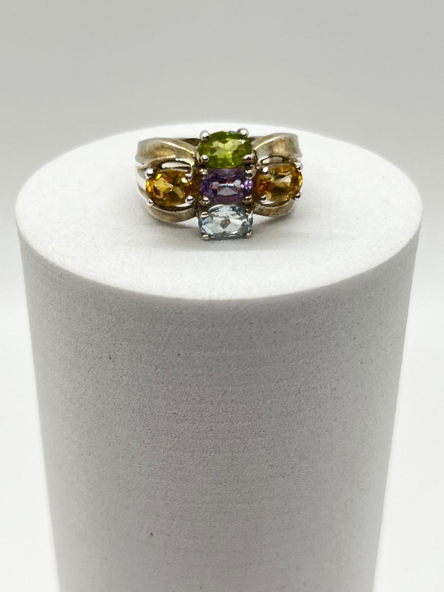 LOT 171J: Sterling Silver Size 6 Ring with Citrine, Amethyst, Peridot and Blue Topaz