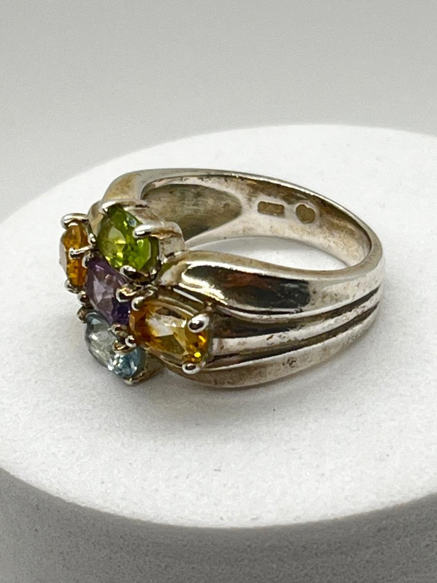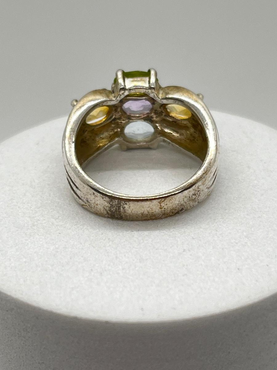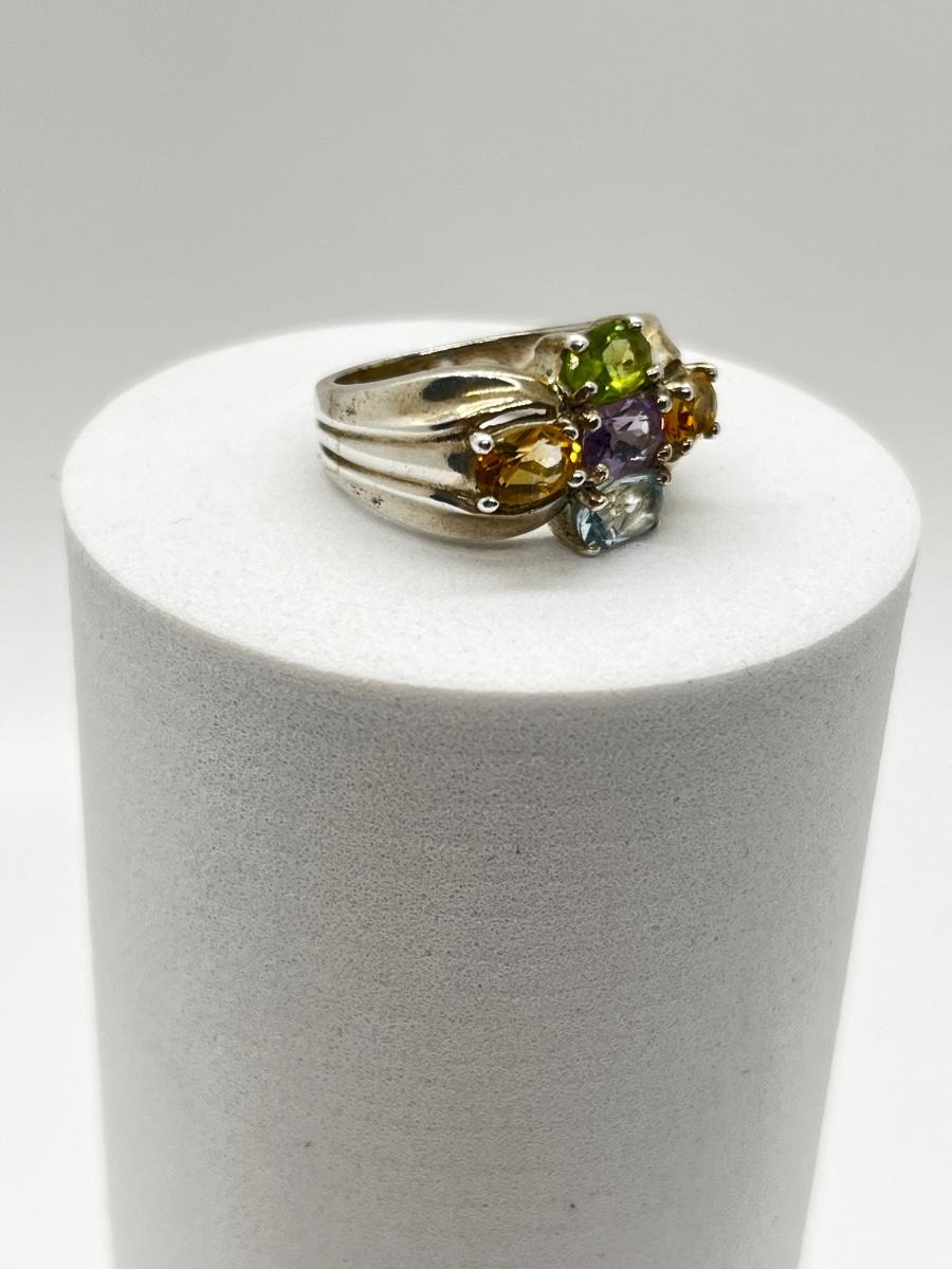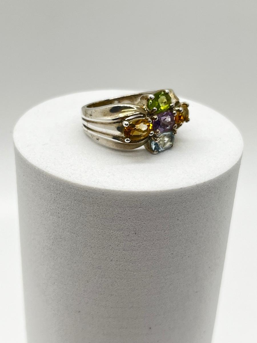 LOT 171J: Sterling Silver Size 6 Ring with Citrine, Amethyst, Peridot and Blue Topaz