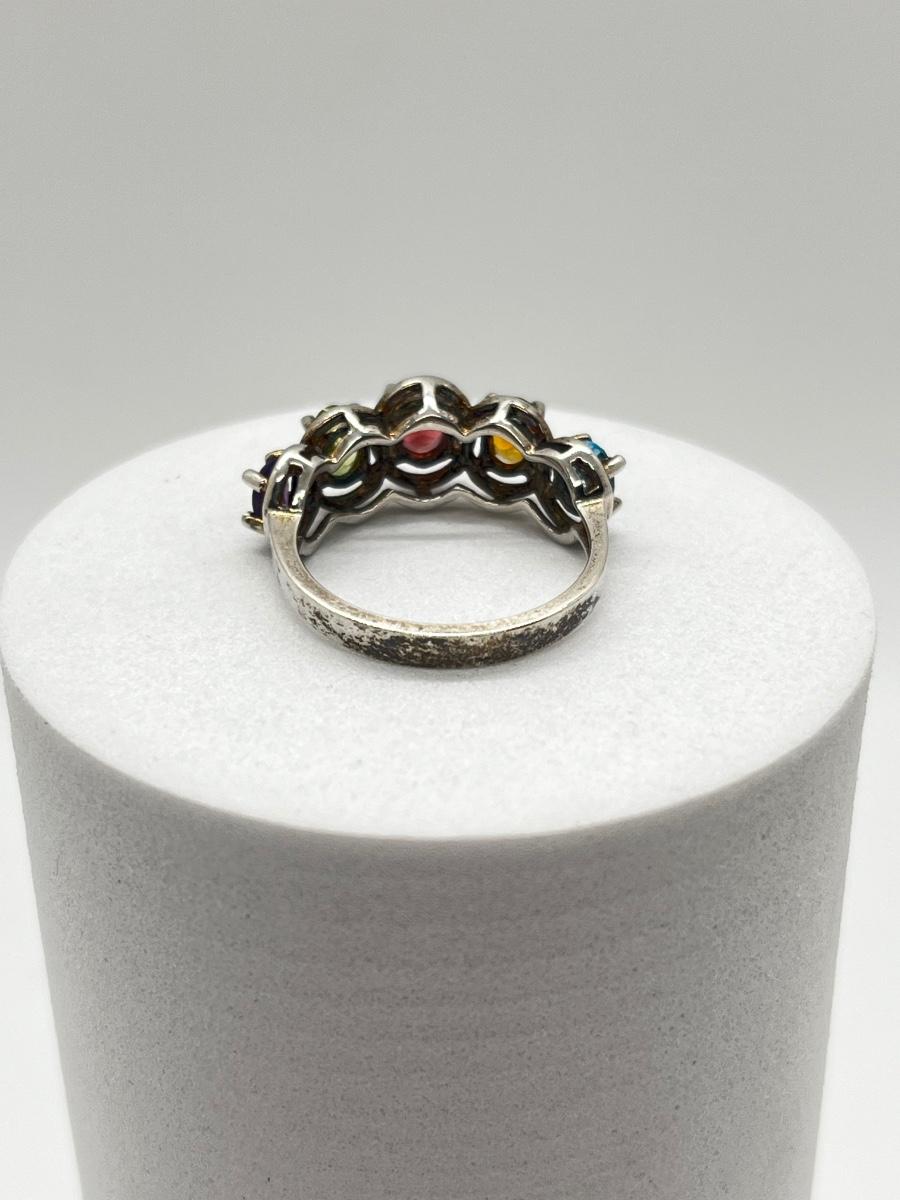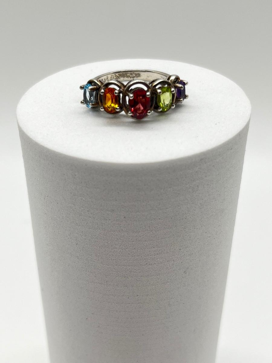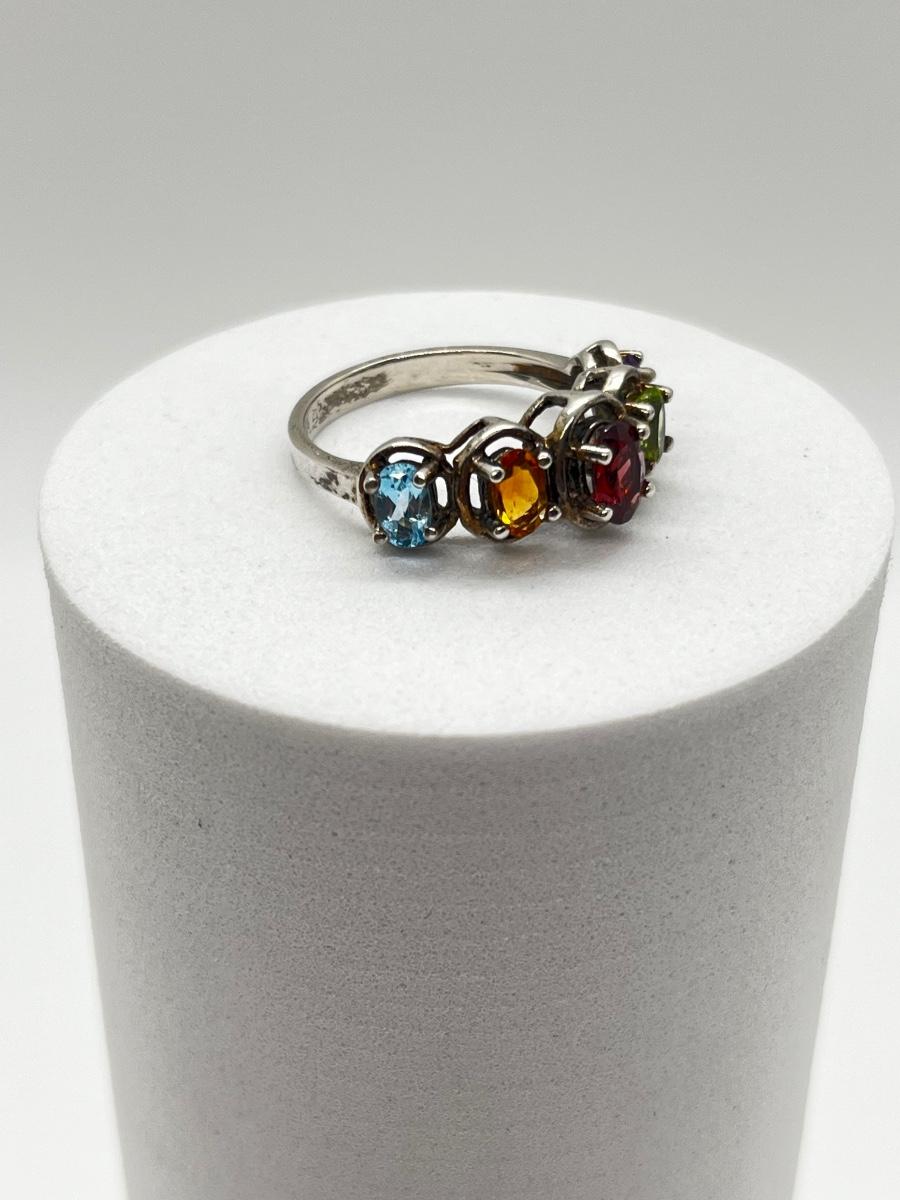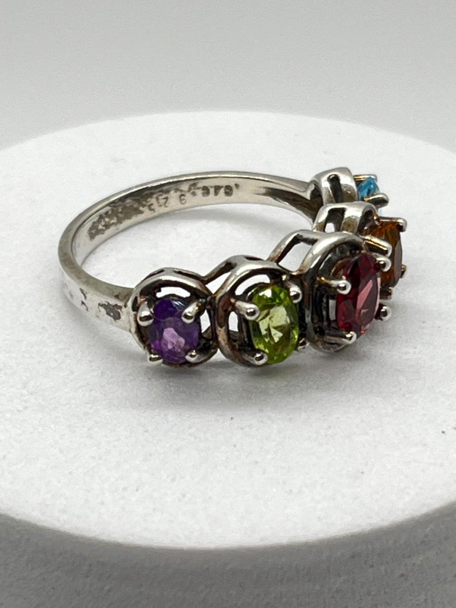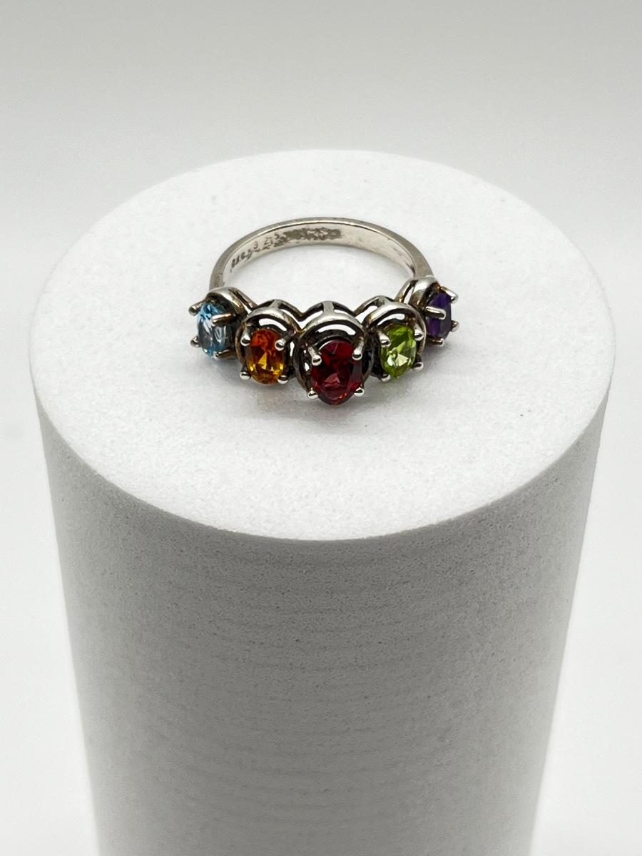 LOT 172J: Sterling Silver Size 6 Ring with Blue Topaz, Citrine, Garnet, Peridot and Amethyst