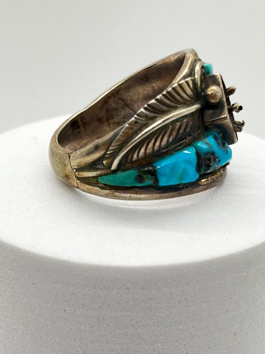 9.8 GTW. Missing center stone and missing a piece of turquoise. Please see all pictures as they are the best representation of the items. The pictures show condition, measurements if taken, and what is included in the lot. Due to the large amount that we photograph and the time frame, we are not always able to take measurements. All items unless noted, are pre-owned and have been used. If you purchased furniture, you must bring help. We do not allow one person to carry large furniture out on their own. Bring help, tools and a truck for the safety of our client’s homes, and your personal safety. Any damages that result to the property including walls, and floors due to moving of the furniture will be charged to the buyer. Company policy. Thank you.
