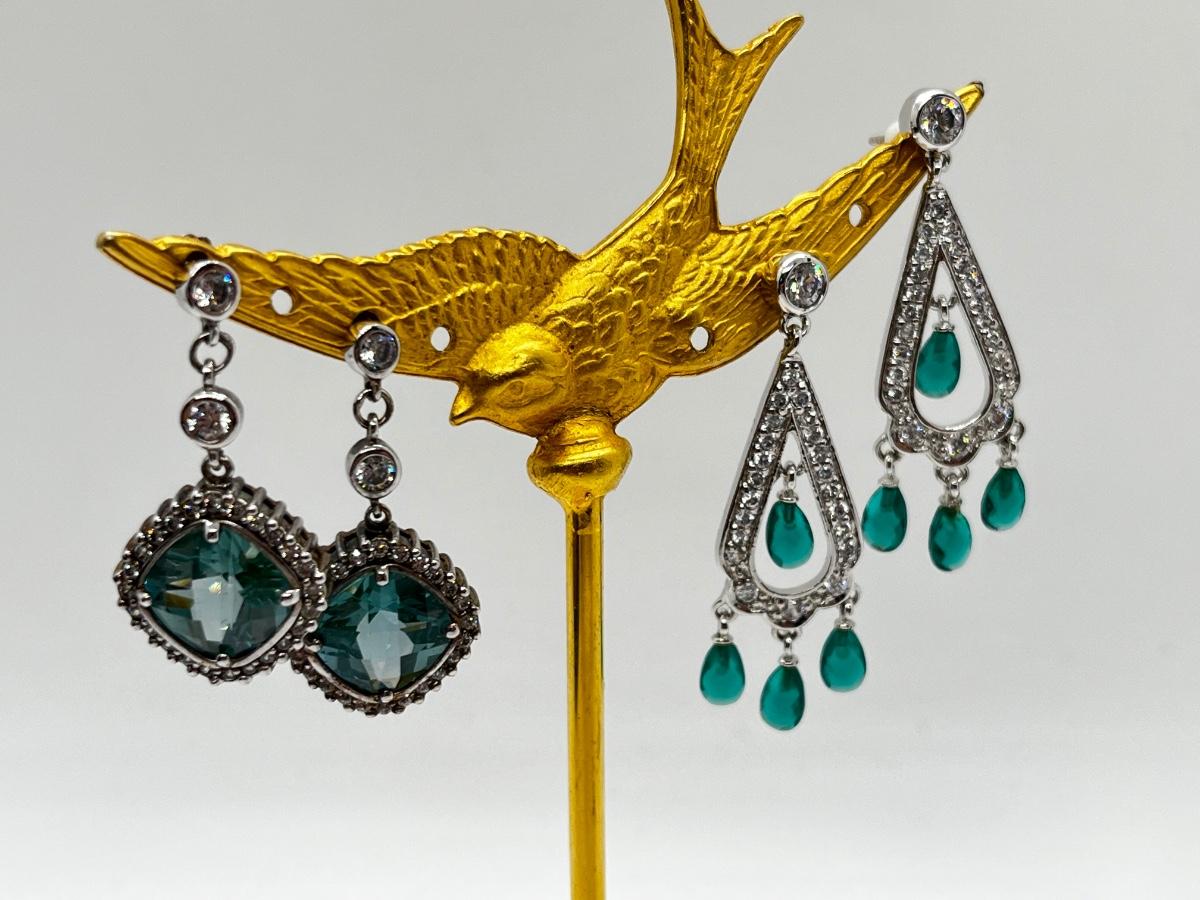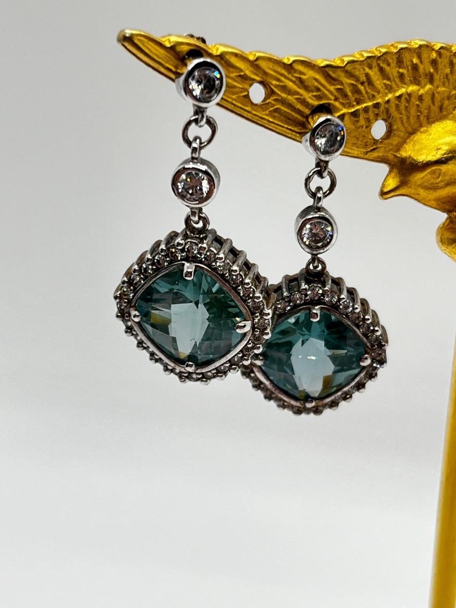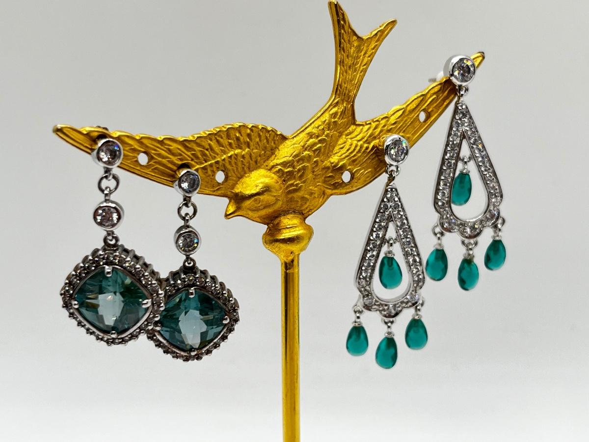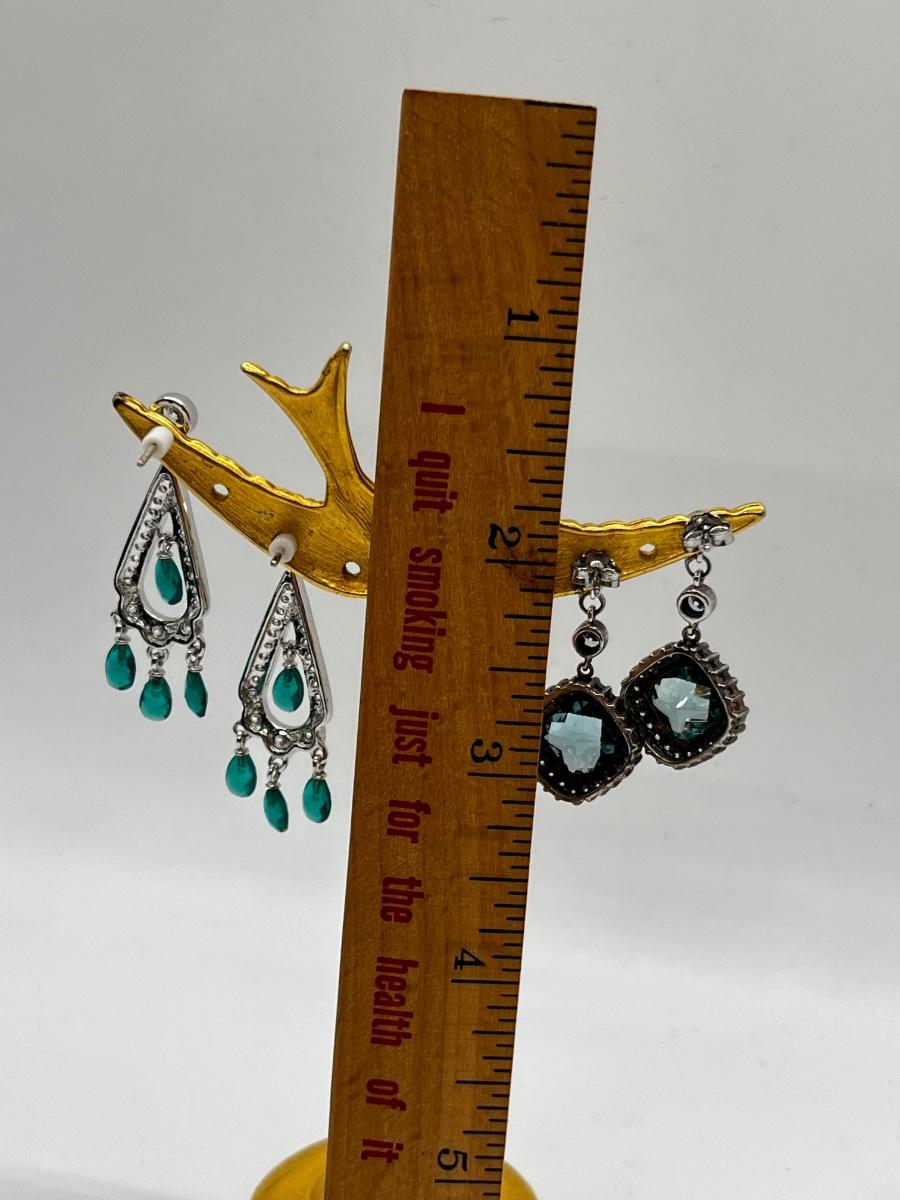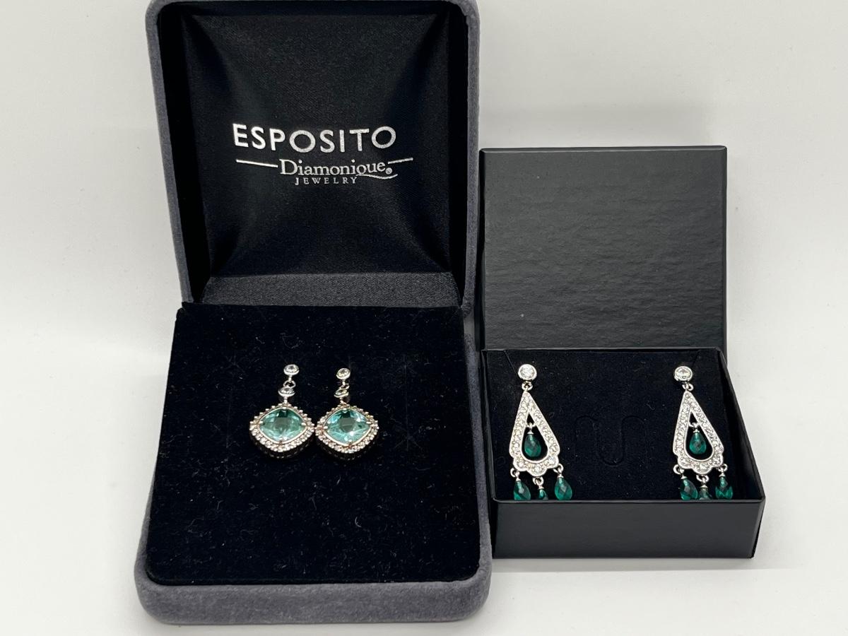 LOT 183J: Sterling Silver Pierced Earrings: Joseph Esposito Faceted Aquamarine Crystal + Unsigned Chandelier Style Crystal
