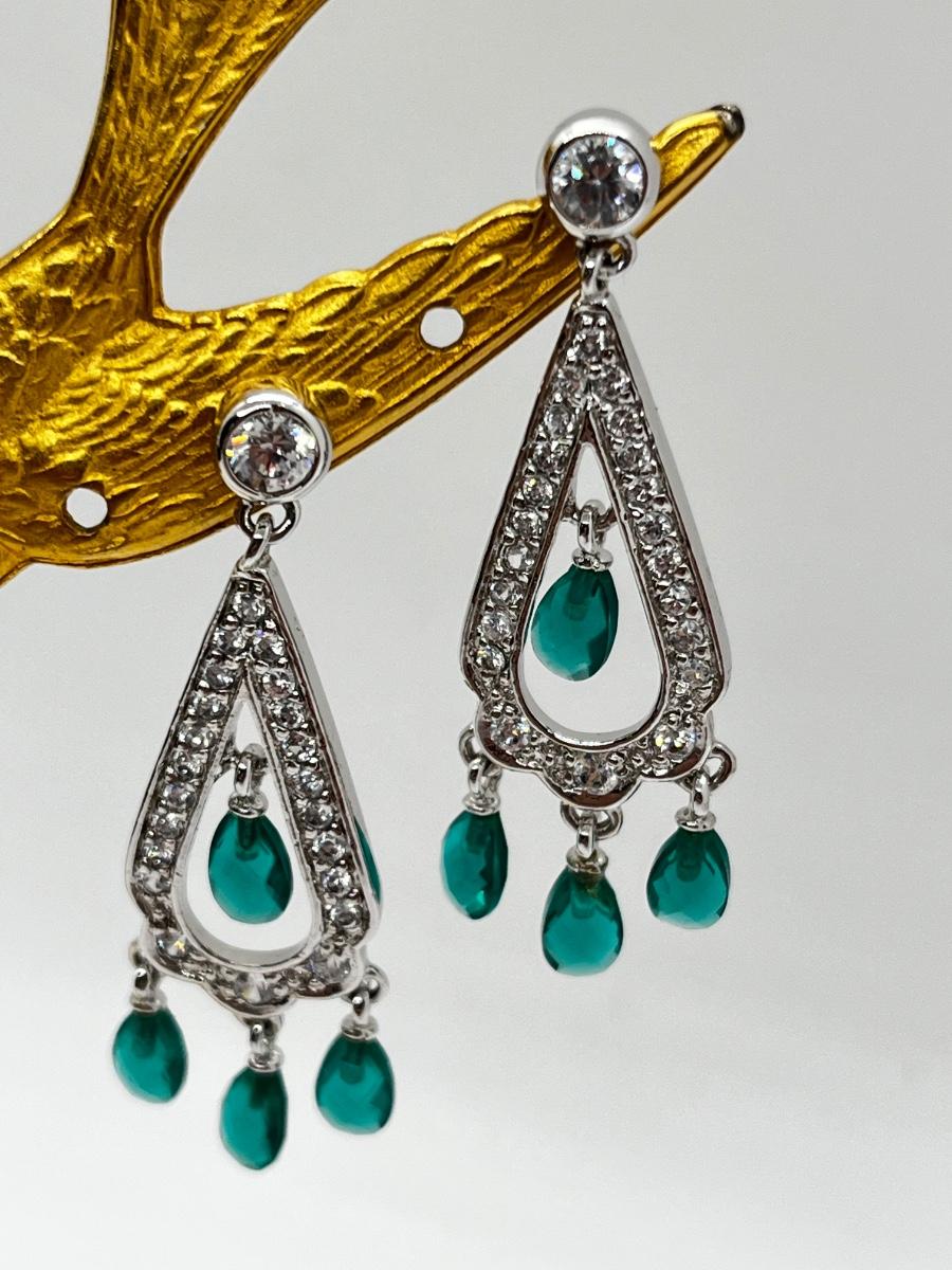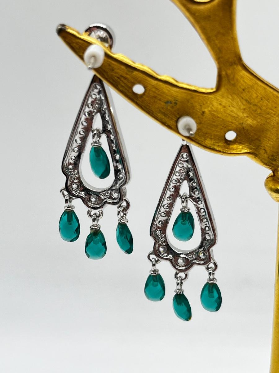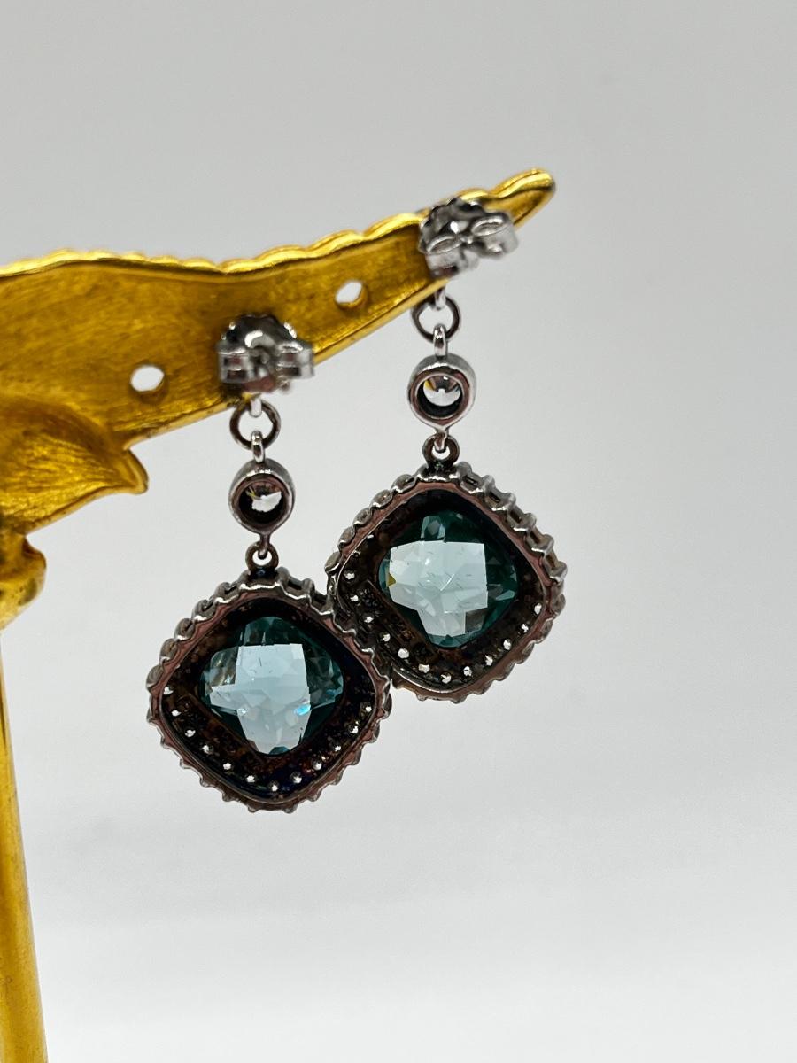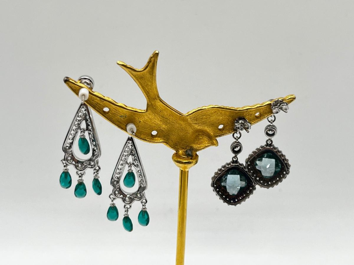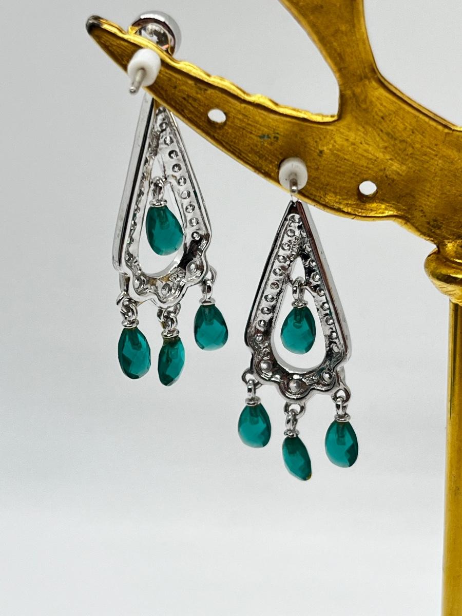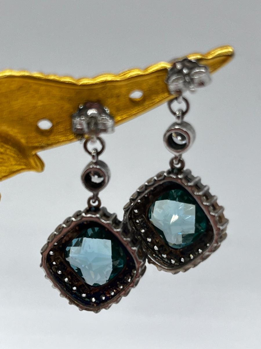LOT 183J: Sterling Silver Pierced Earrings: Joseph Esposito Faceted Aquamarine Crystal + Unsigned Chandelier Style Crystal
