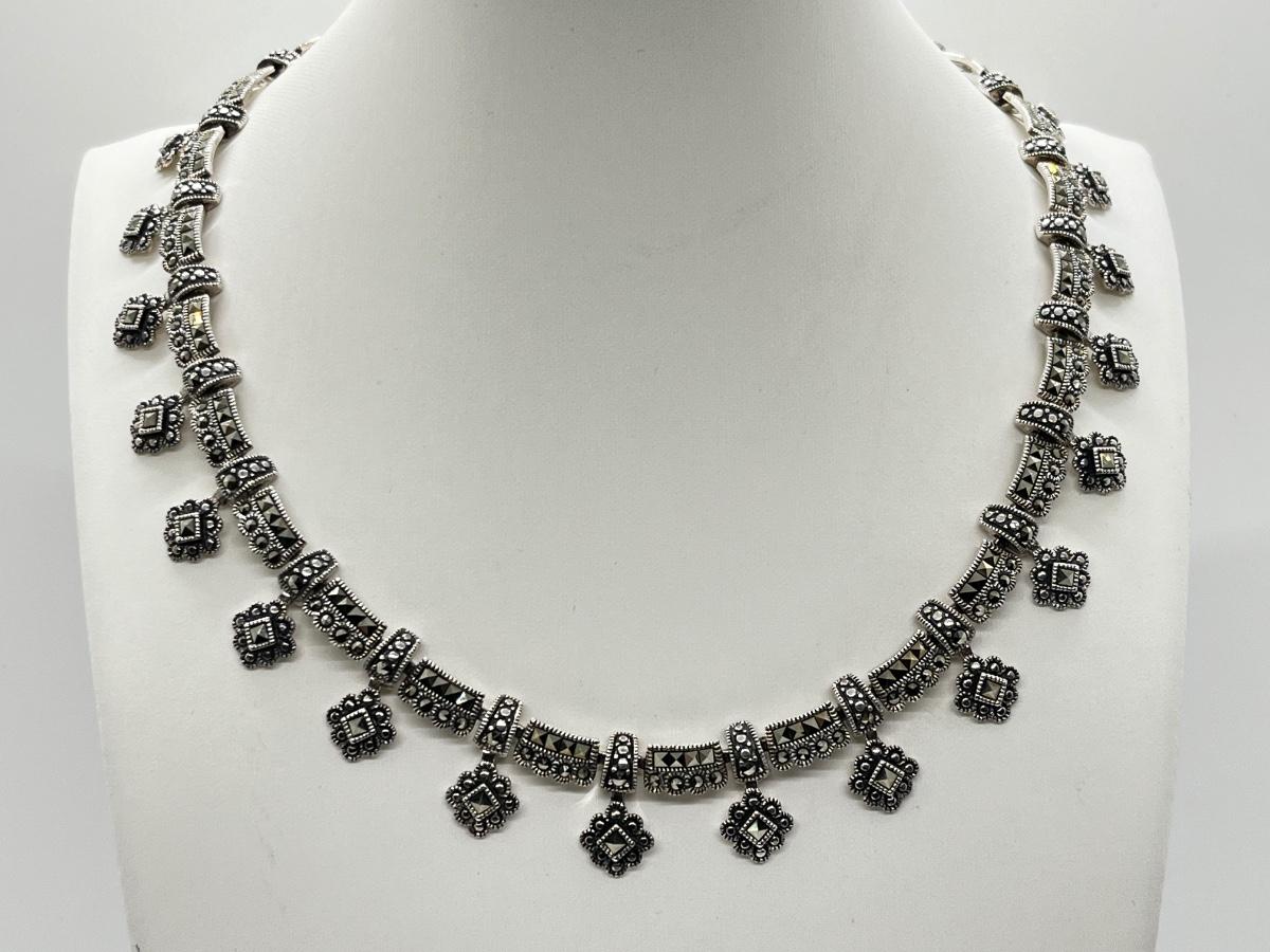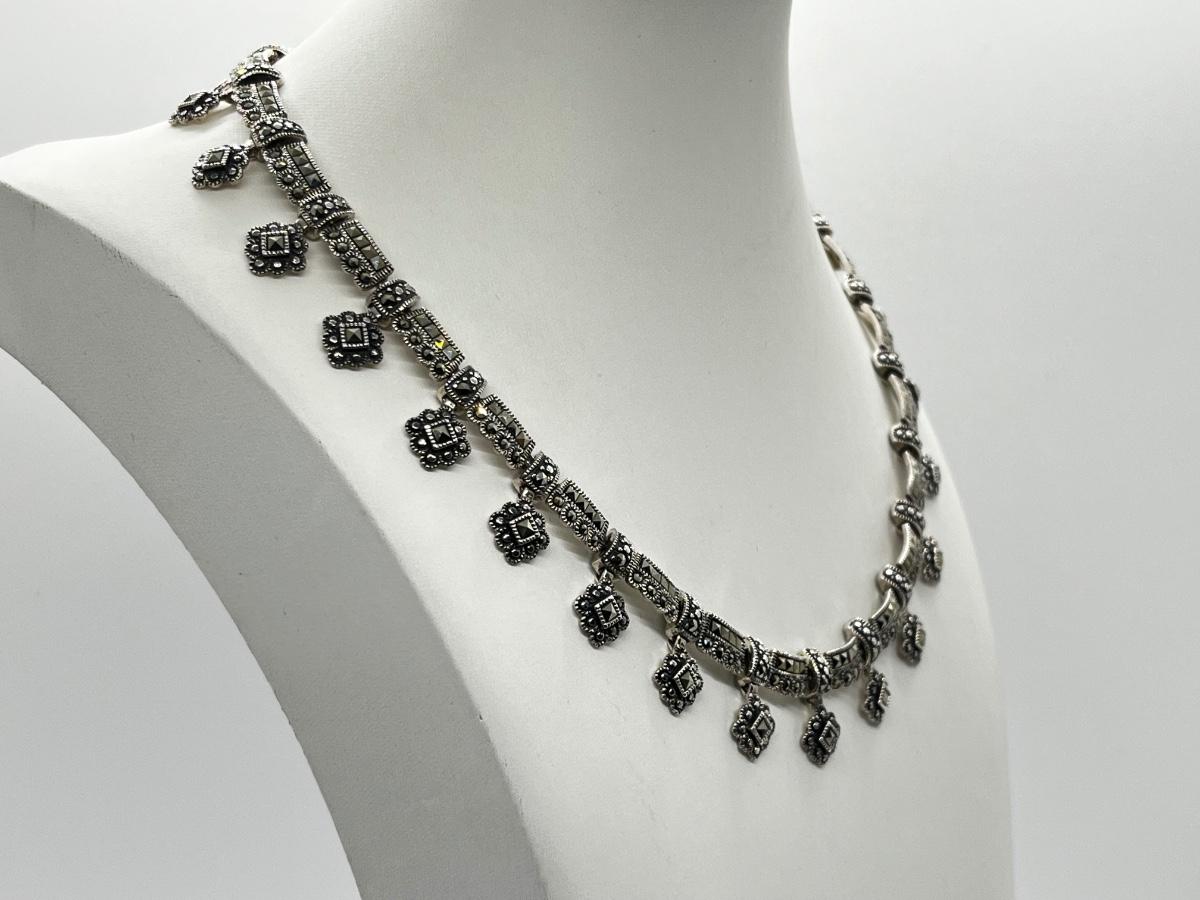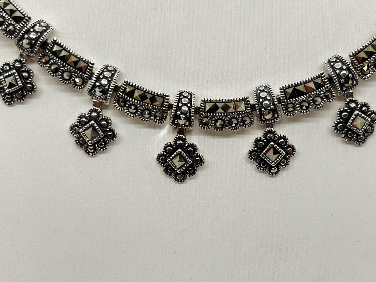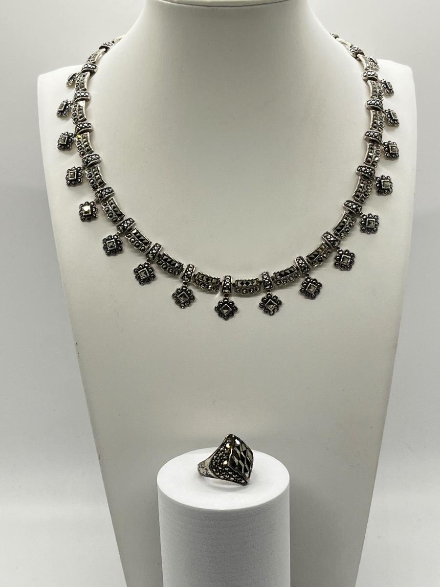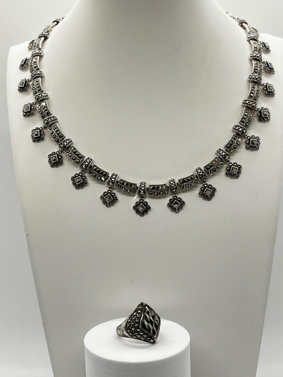 LOT 187J: Sterling Silver and Marcasite Choker Necklace and Size 6 Ring