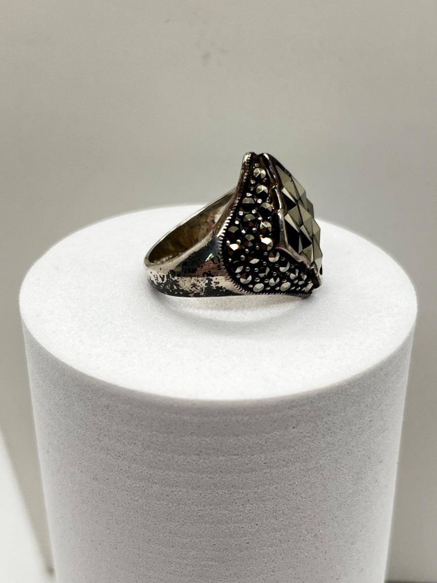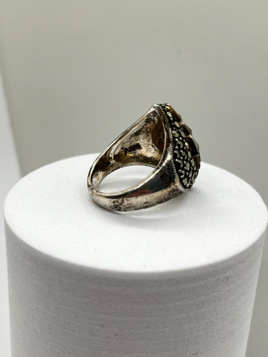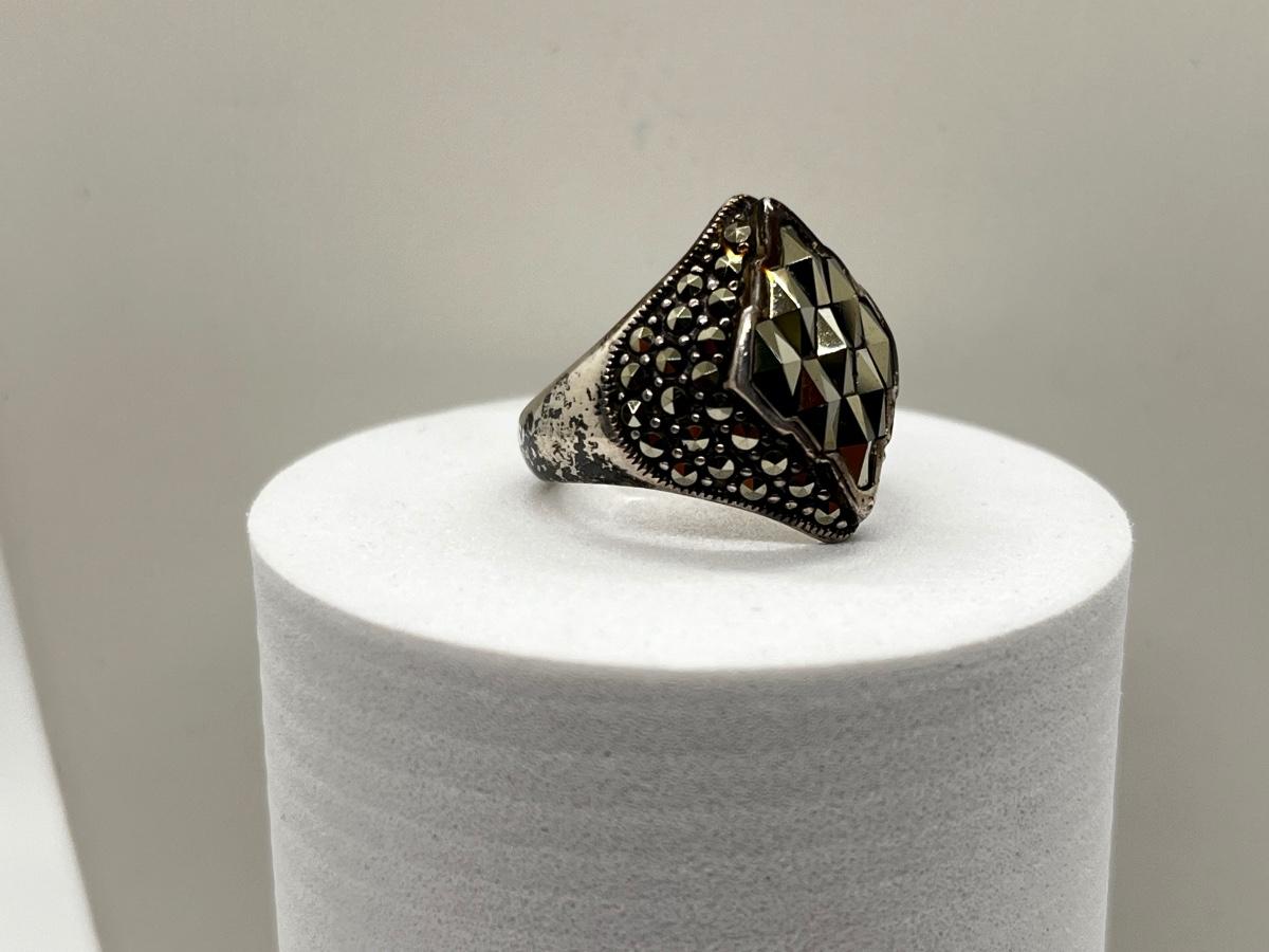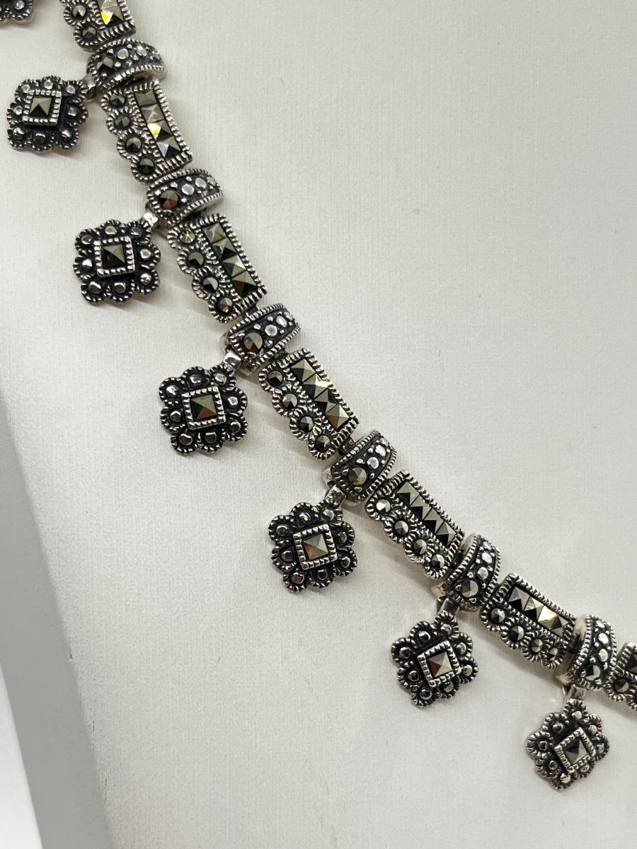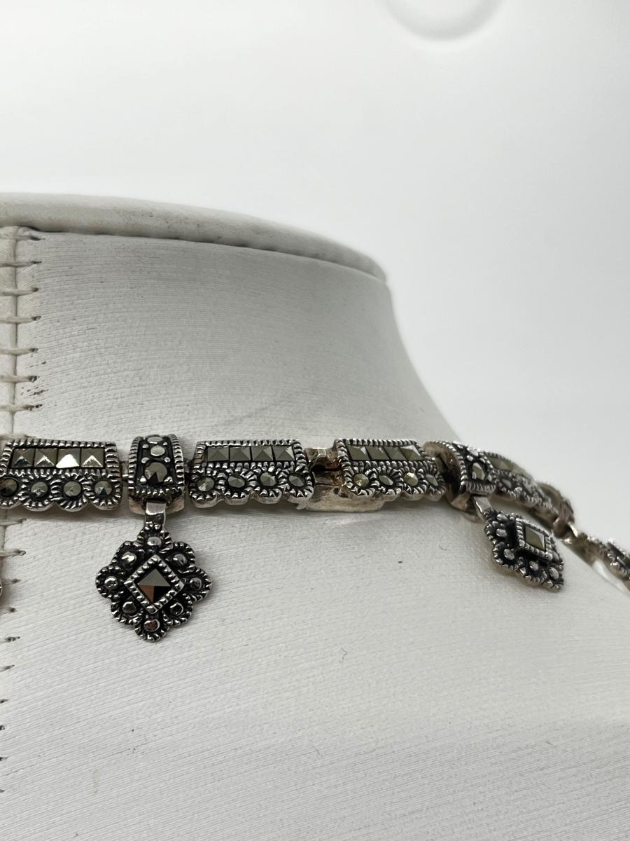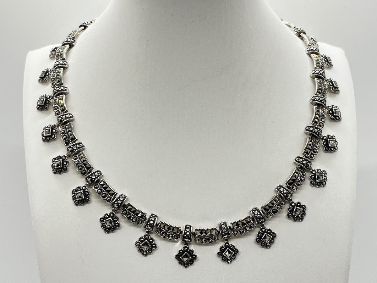 LOT 187J: Sterling Silver and Marcasite Choker Necklace and Size 6 Ring
