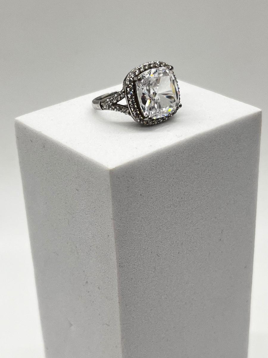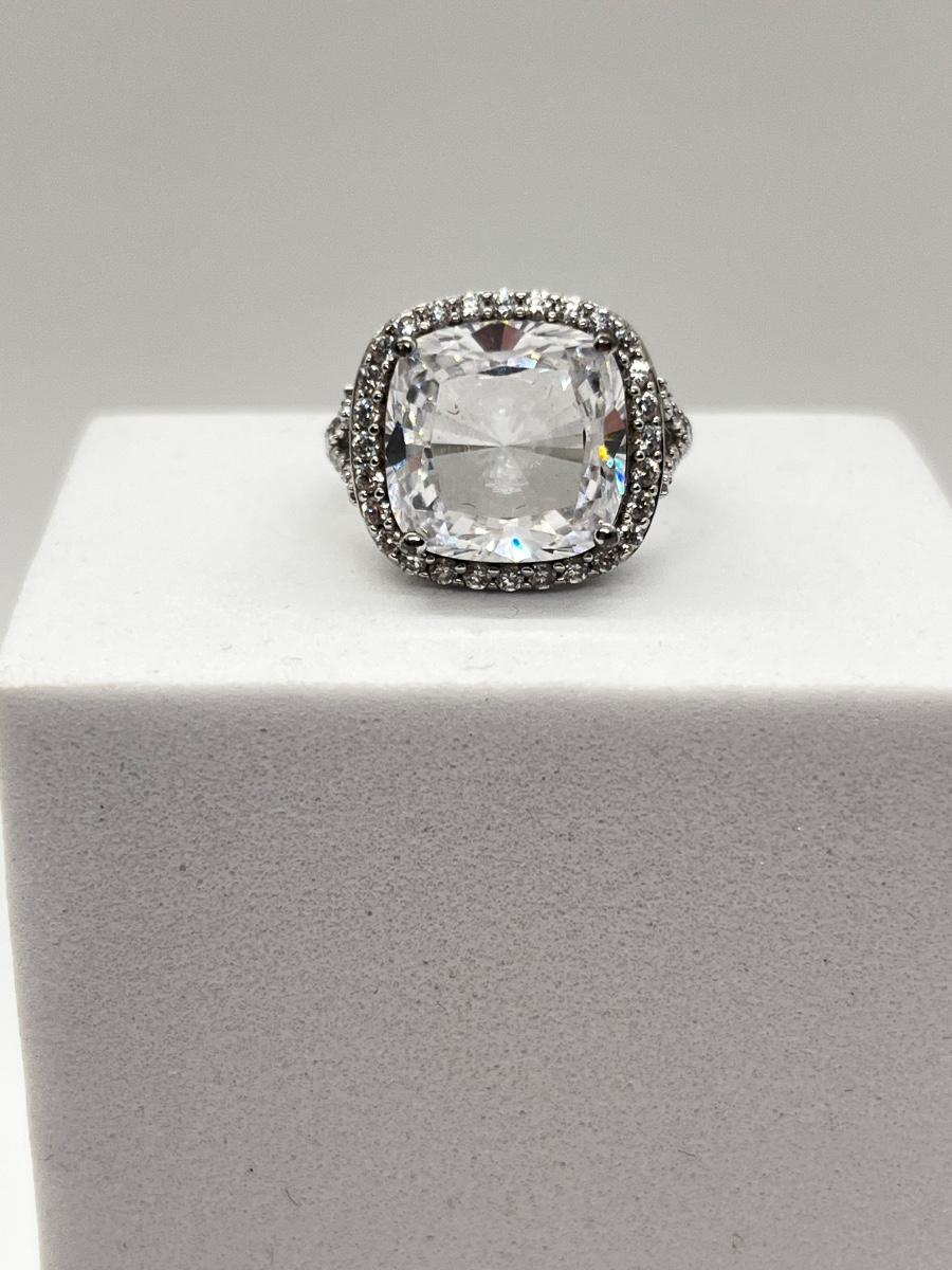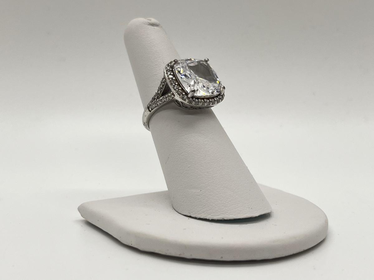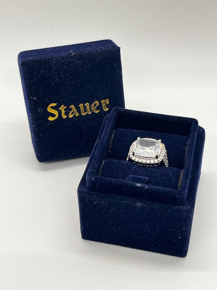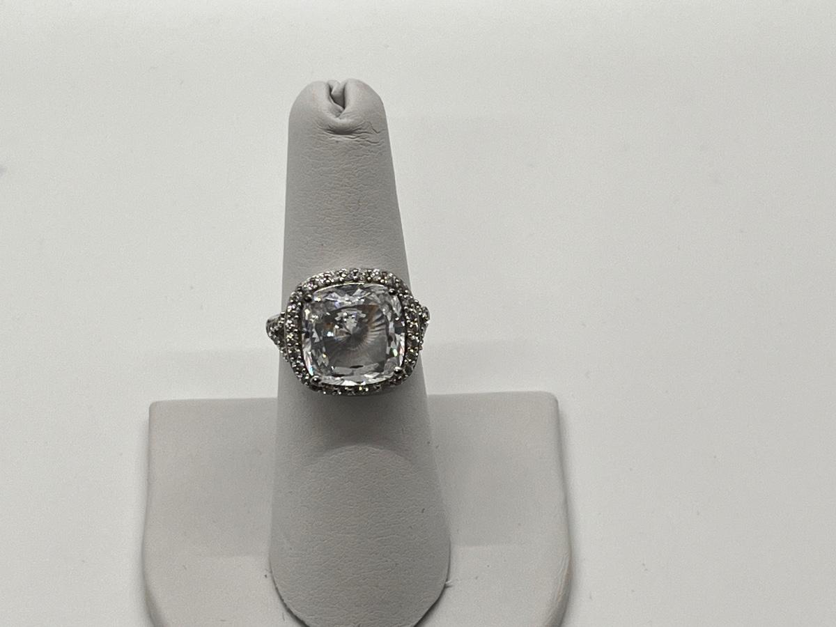 LOT 194J: Sterling Silver Stauer Size 6 Cubic Zirconia Cocktail Ring