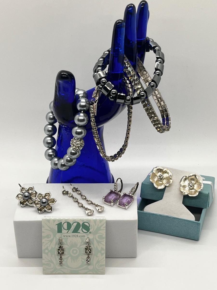 LOT 195J: Nolan Miller and 1928 Pierced Earrings, Cubic Zirconia Drop Earrings and More