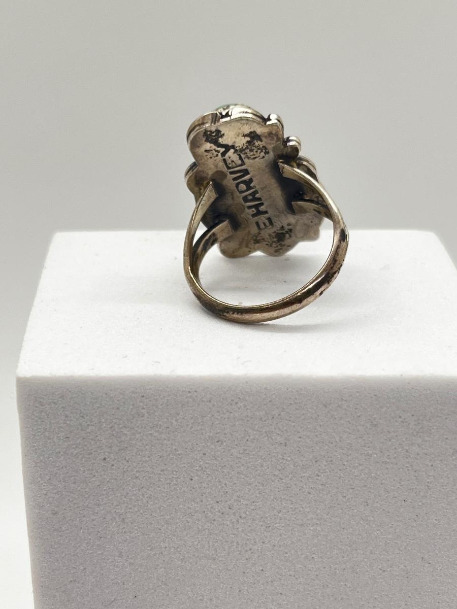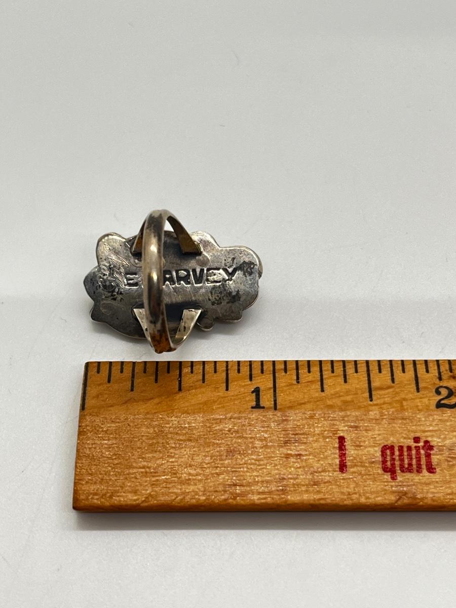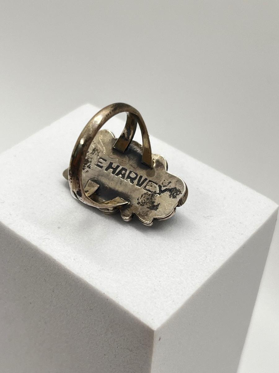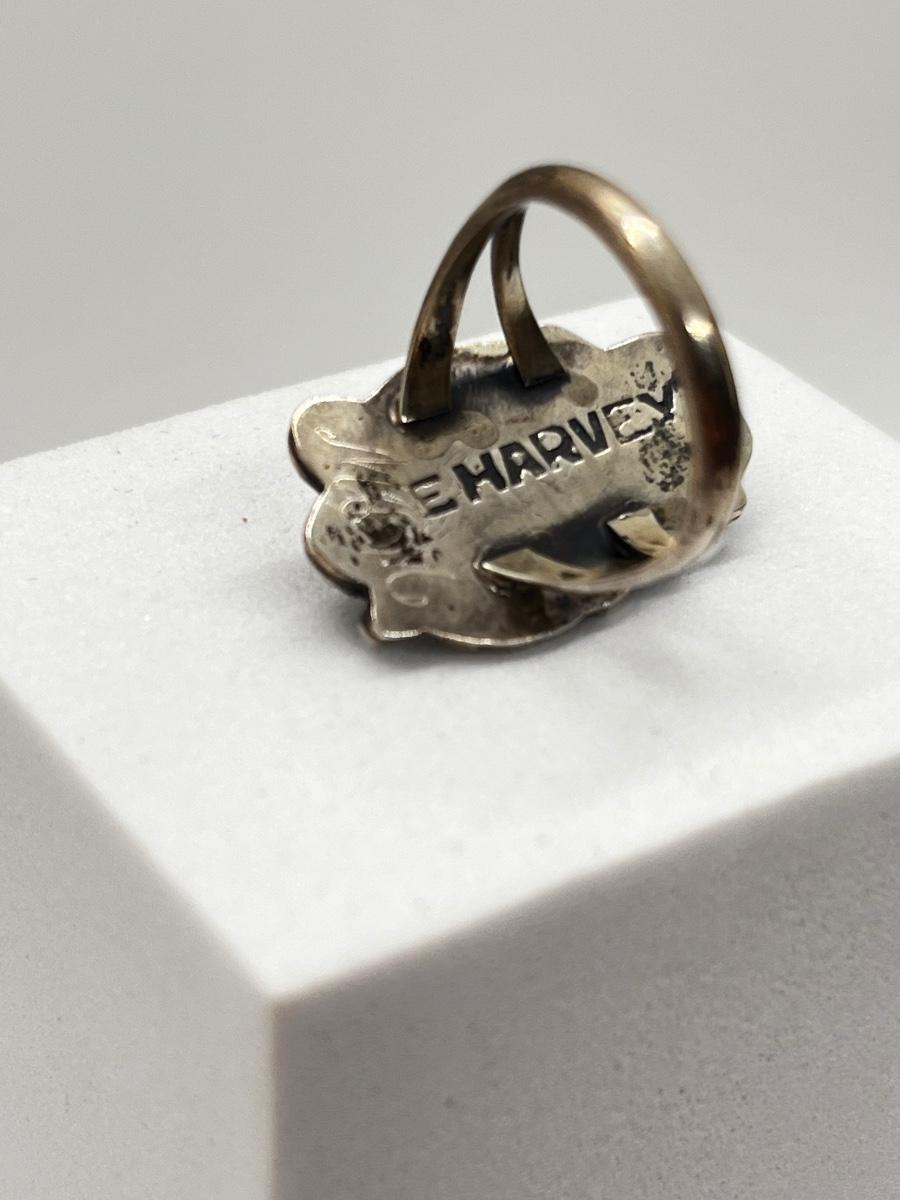 LOT 197J: Sterling Silver, Turquoise and Coral Vintage Navajo Signed E. Harvey Ring