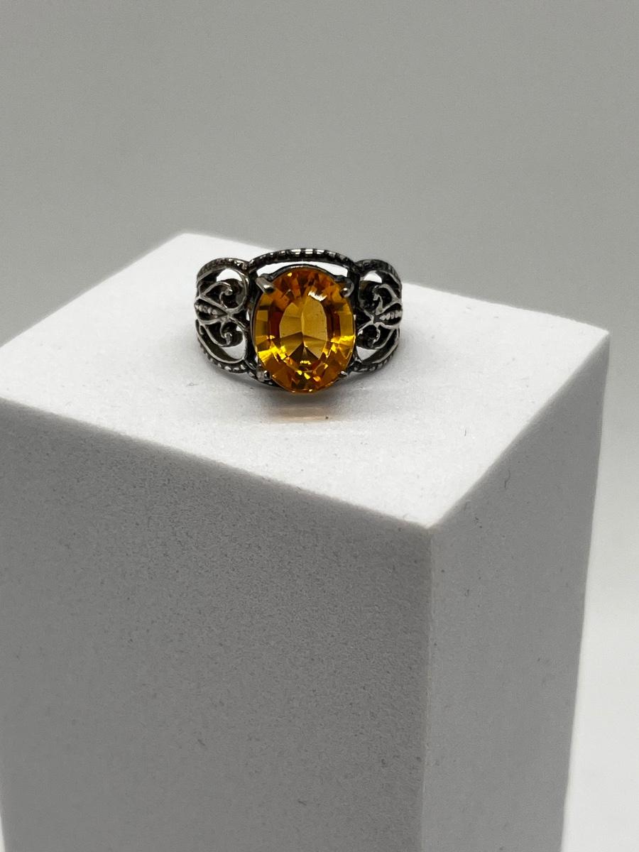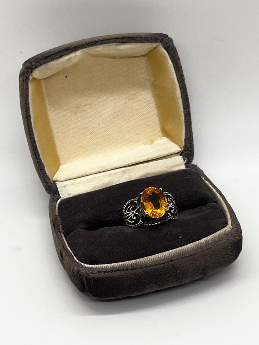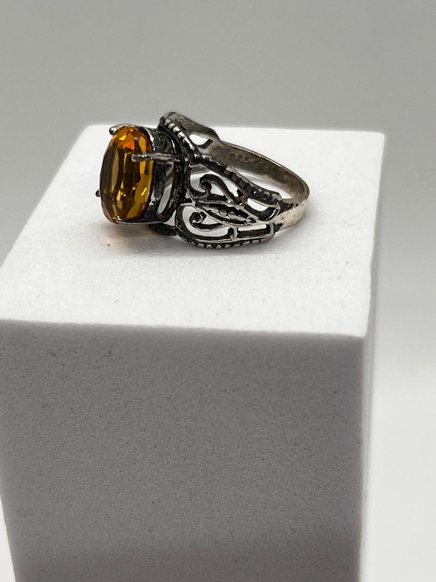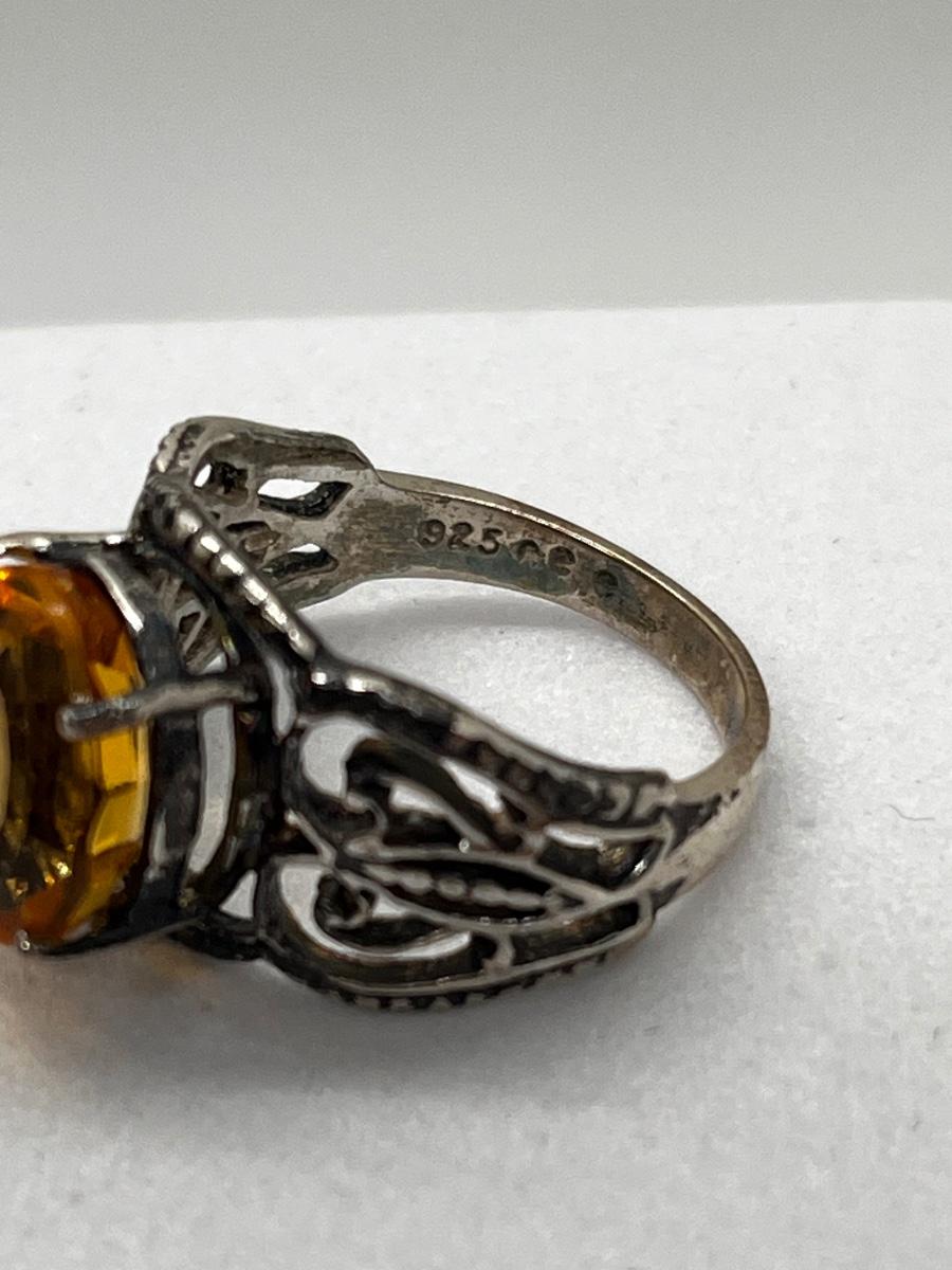 LOT 198J: Sterling Silver Vintage Oval Citrine Size 6 Ring