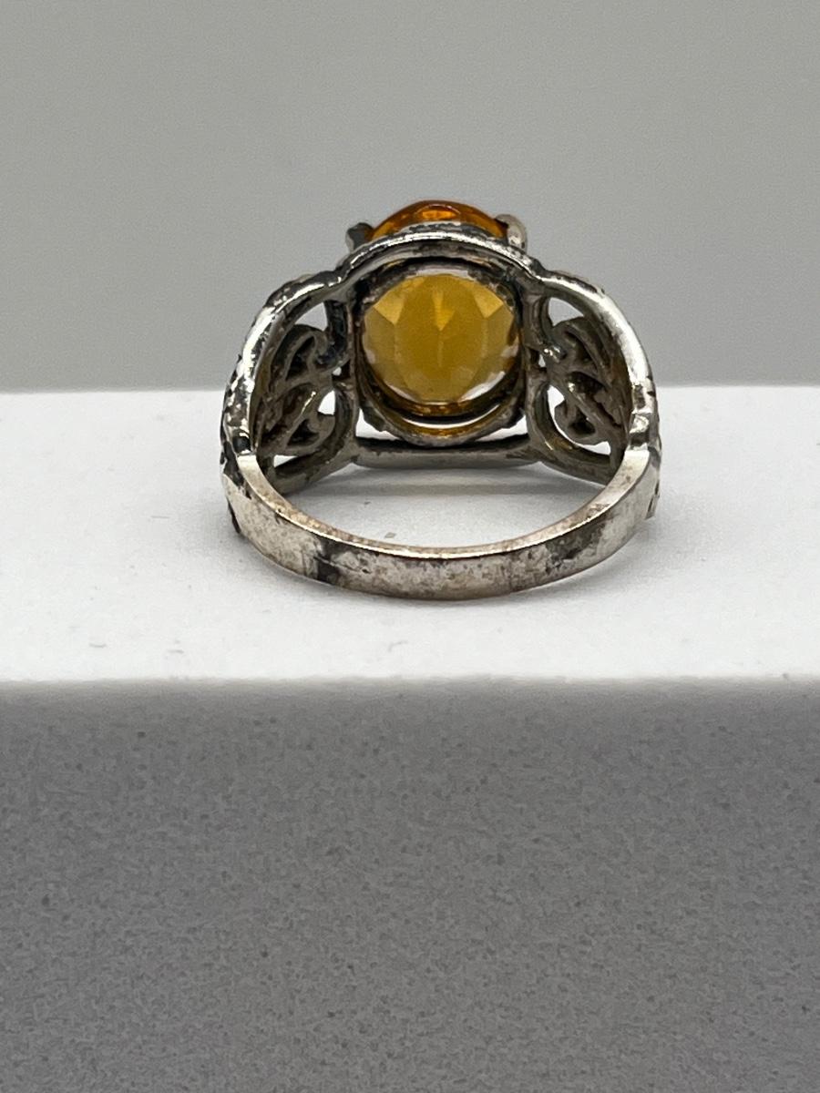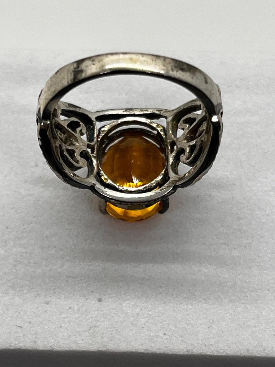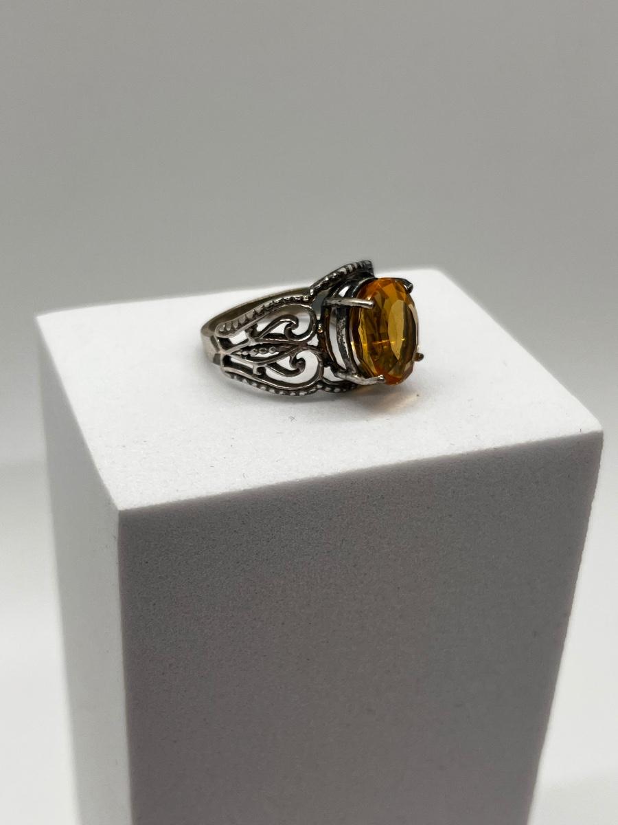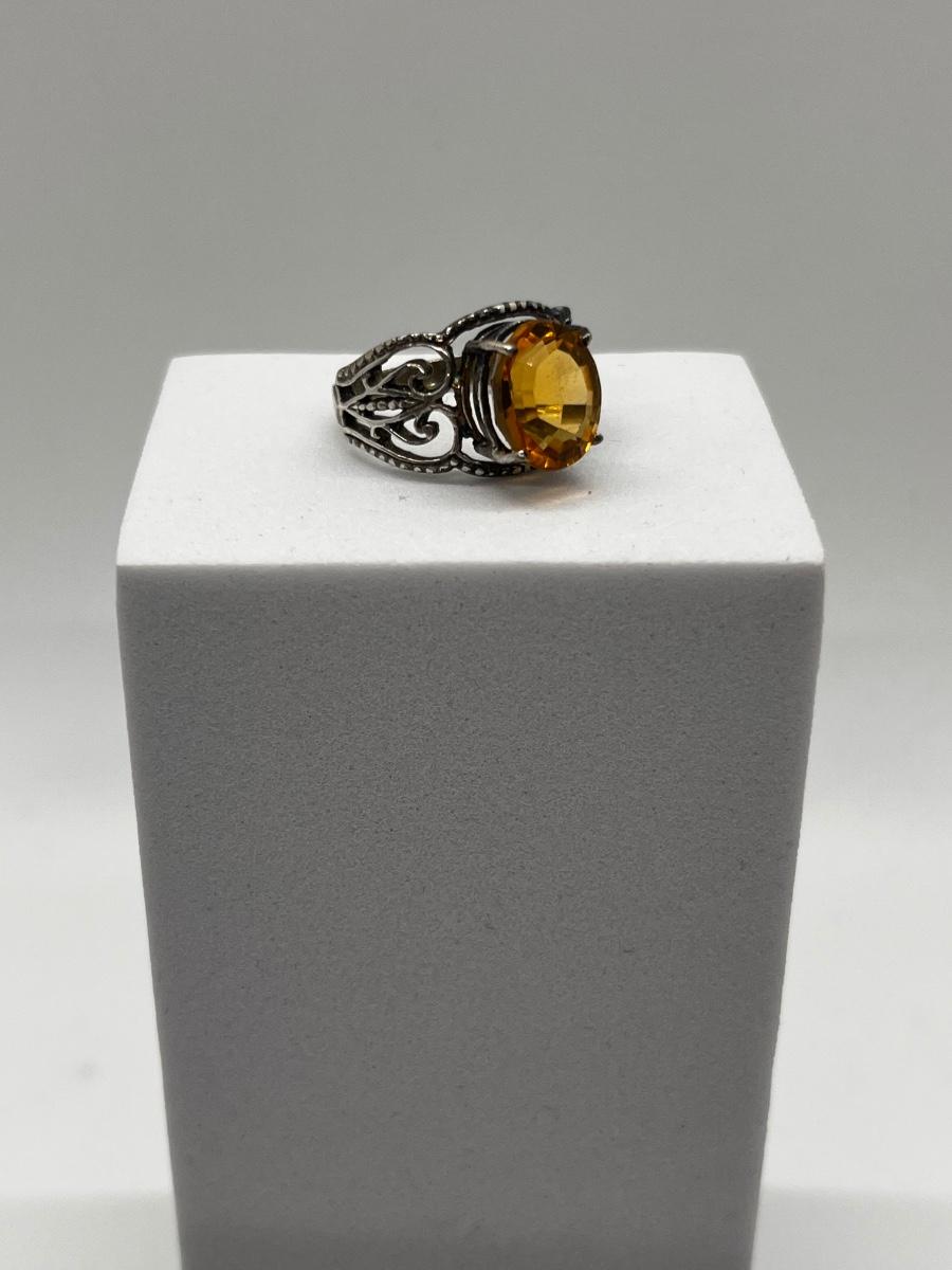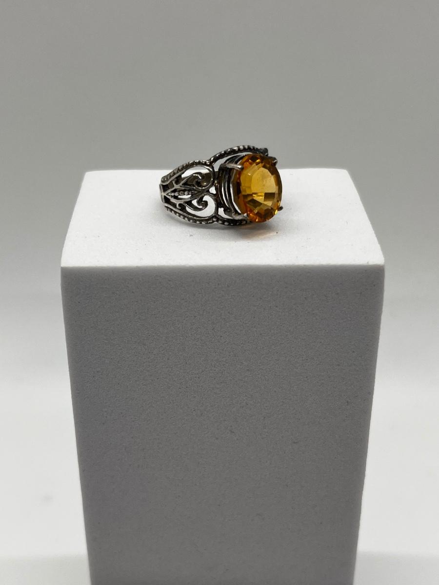 LOT 198J: Sterling Silver Vintage Oval Citrine Size 6 Ring